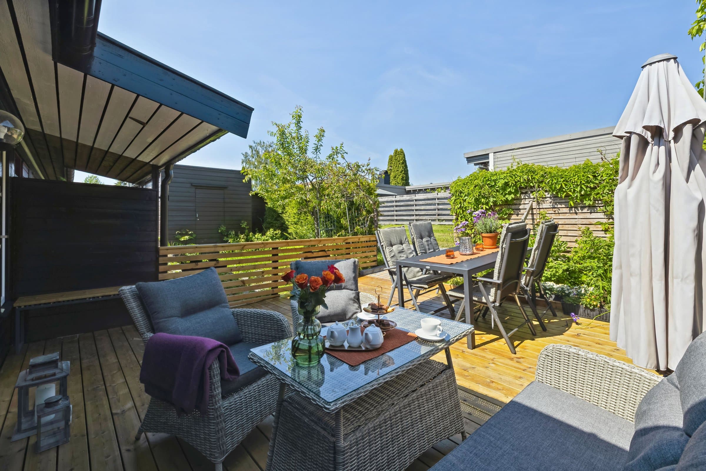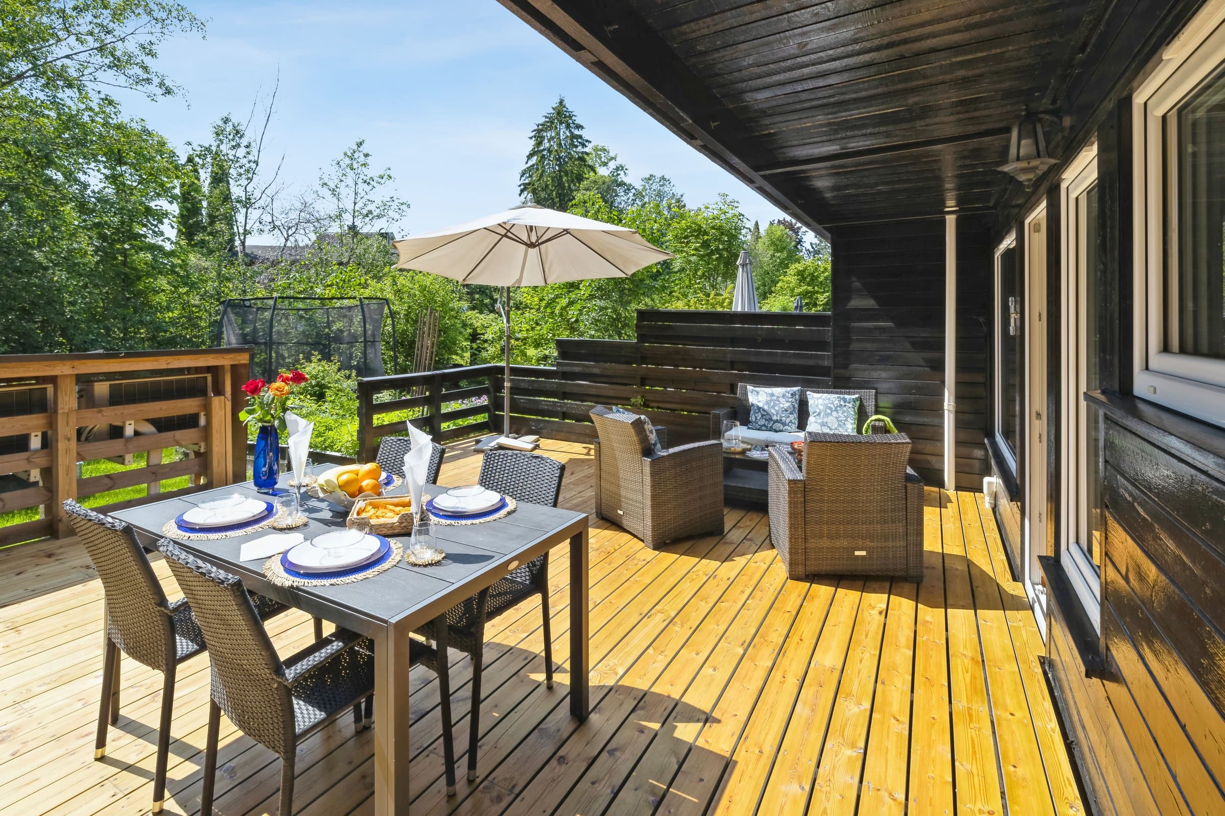 Klassisk og tiltalende 6-roms rekkehus i barnevennlig område, hage, balkong, 2 terrasser på 75 km2 og garasjeplass