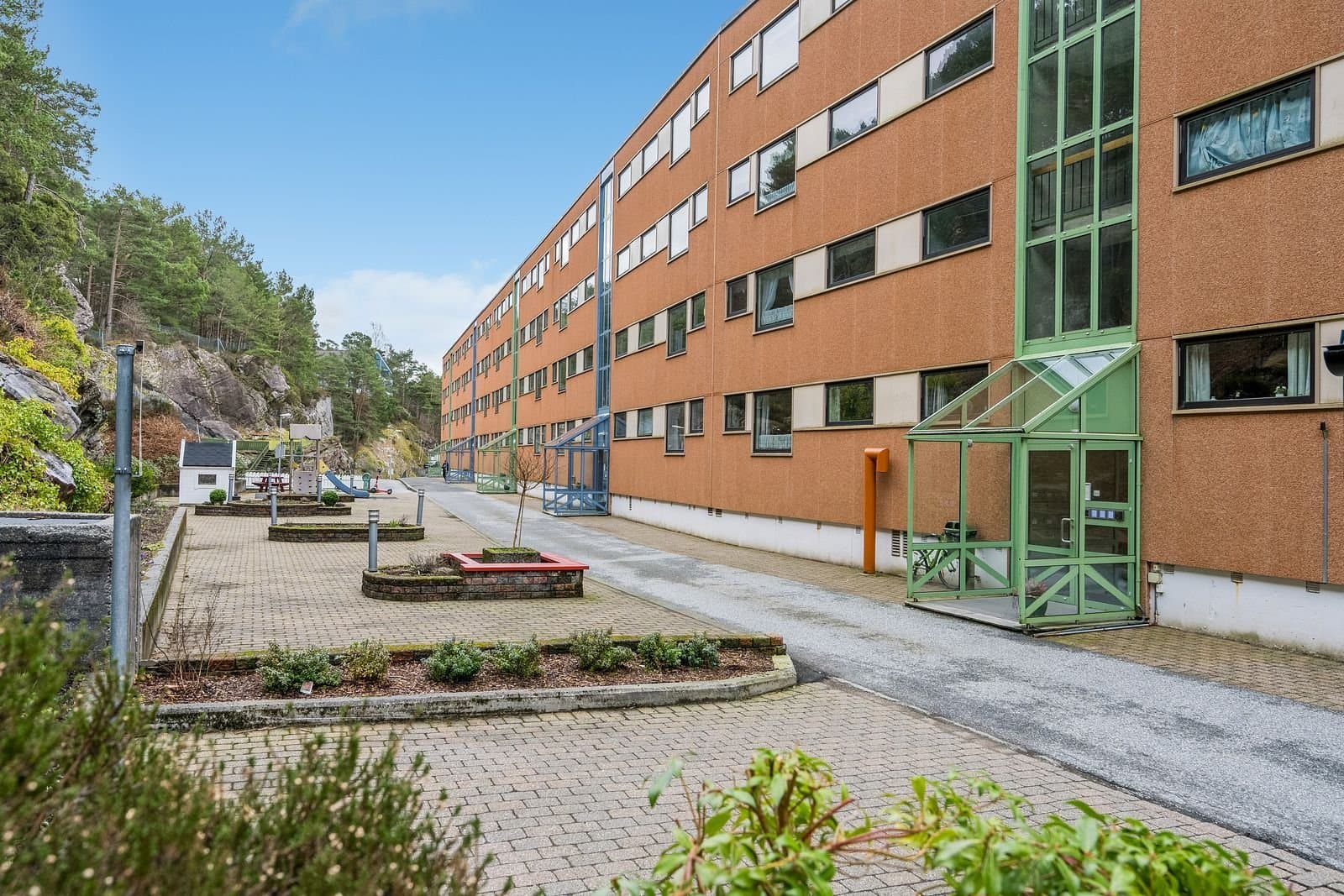 Kvernevikstema 12 har en rolig, tilbaketrukket og attraktiv beliggenhet på Tertnes i Åsane: - Barnevennlig område uten gjennomgangstrafikk - Flotte, store grøntarealer - Området byr på mange fine turmuligheter - perfekt for de som trives ute i naturen - Kort vei til det grønne friluftsområde Grønskjeret, som byr på både strand og vann på flotte soldager - Det er kort avstand til gode bussforbindelser, butikk, skole og barnehage - Det er kort kjøreavstand til Horisont, Åsane Storsenter, Arken, Ikea og Plantasjen med alle servicetilbud - Det er ca 16 minutter med bil til Bergen Sentrum Fordeler med leilighet 1) Enkel adkomst men skjermet fra innsyn 2) God planløsning - romslig 3) God ventilasjon 4) Stor moderne terrasse med utebelysning og fin utsikt 5) Lave felleskostnader/strømutgifter 6) Tre boder - god plass til oppbevaring 7) Parkering i lukket garasjeanlegg 8) Rolig barnevennlig området 9) Veldrevet borettslag 10) Fantastiske turmuligheter