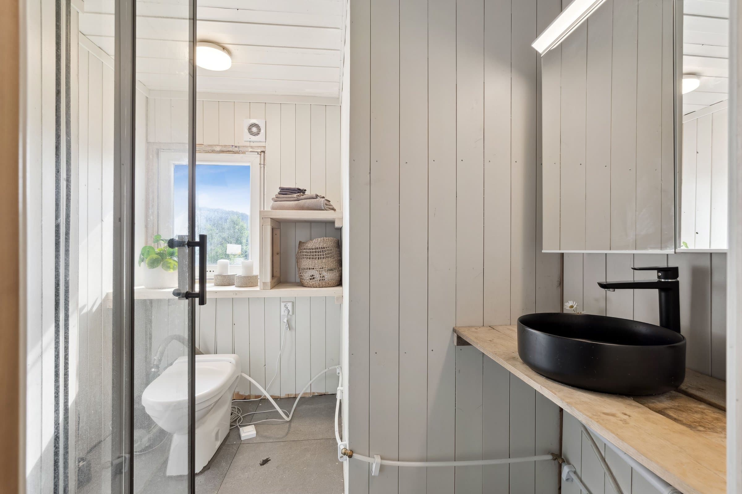 Hytte med to soverom, nytt kjøkken, og romslig stue. Varmepumpe fra 2024, som matcher interiøret på en enestående måte. Stilig kjøkken fra Ikea, som er romslig trass sin kompakte utførelse. Stuen er lys og bekvem, med store vinduer hvor solen står på store deler av dagen. Ute har du god plass til å slappe av på terassen. Elbillader er også montert, så ingen problem å kjøre miljøvennlig opp hit.