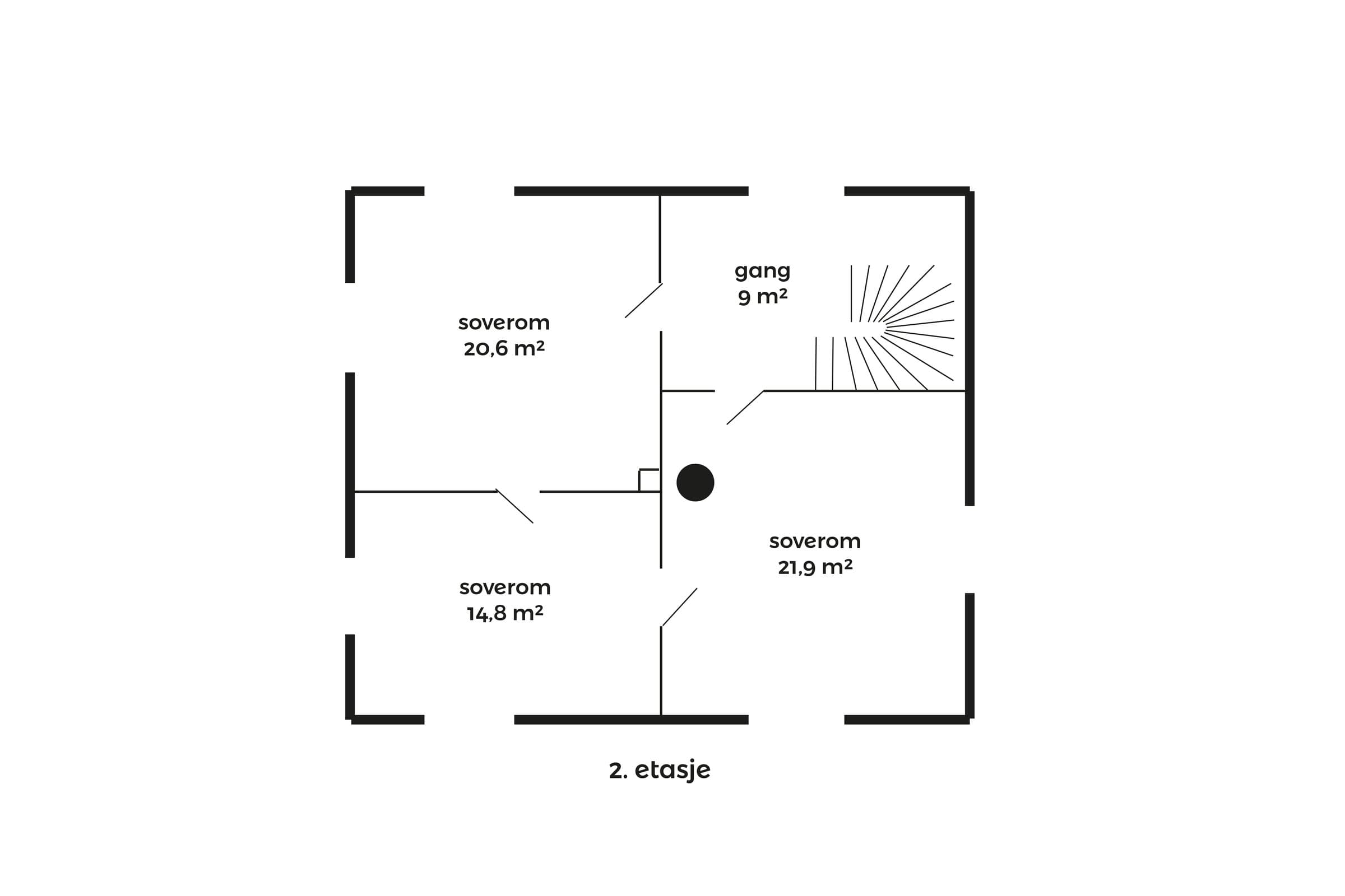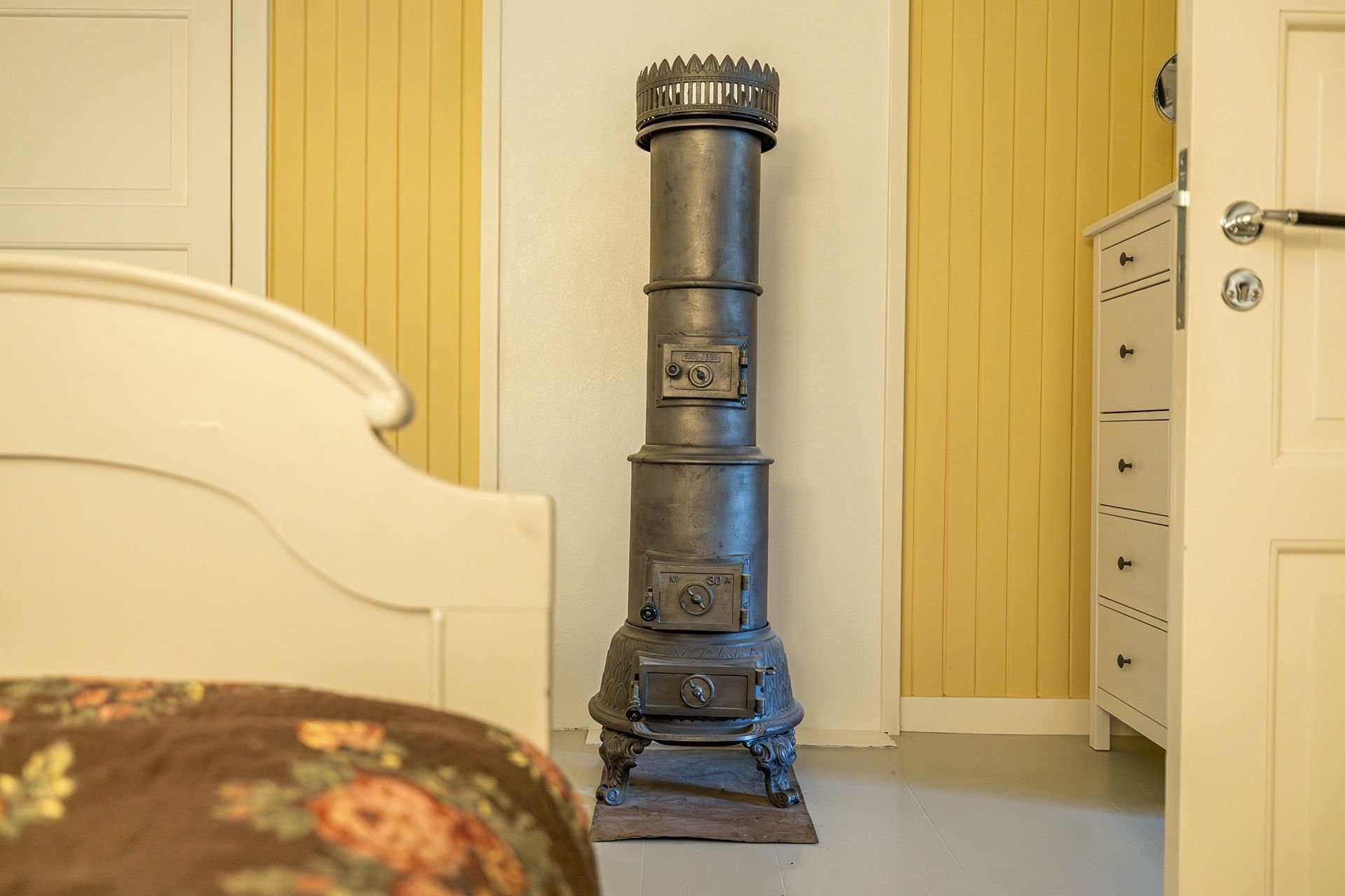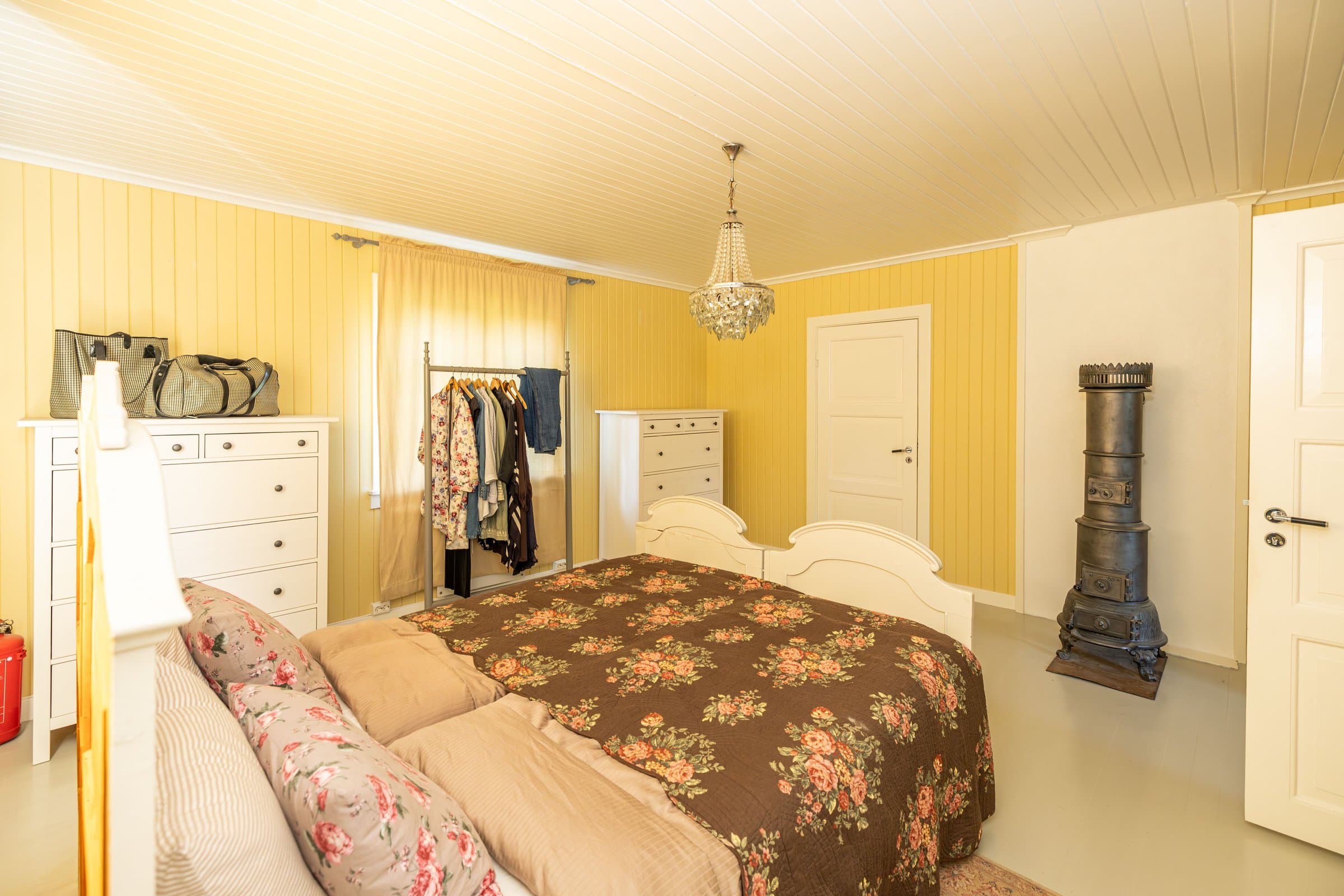Gang: Gangen i andre etasje leder inn til soverom og opp til loft. Soverom: Det er tre soverom. "Master bedroom" har restaurert krone-søyleovn fra HamJern samt dobbeltseng fra samme epoke som huset. Disse har nye madrasser sydd hos Brumunddal ullvarefabrikk. Derfra kan man også bestille overmadrass. Dobbeltsengen, samt tilhørende skap i neste soverom følger salget. Alle soverommene har restaurert opprinnelig panel i gulv og tak og restaurerte gulvbord. Alle soveromsdørene er opprinnelige og restaurerte. Loft: Loftet er kaldloft med strøbord til gulv og synlige bjelker og undertak. Eneste oppgradering er isolering med rockwool (ca 1980) på hele gulvflaten, tre lyskilder (2015) og ny trapp. Her er det muligheter for å lage en etasje til med flere rom og boder istedet for åpent loft. Loftet er i dag brukt til oppbevaring og har to garderobeskap og lagerhyller i metall. Kjeller: Det er fire rom i kjelleren. Opprinnelig var det baksterom, potet- og rotfruktlager og boder. Nå er et rom brukt til matlagring, et rom er teknisk, et rom har vindusrestaureringsverksted og et rom er brukt til spireoppal og lagring av dyrkingsutstyr og potter - med utgang rett inn i drivhus, så man slipper å måke snø for tilgang vinter og vår.