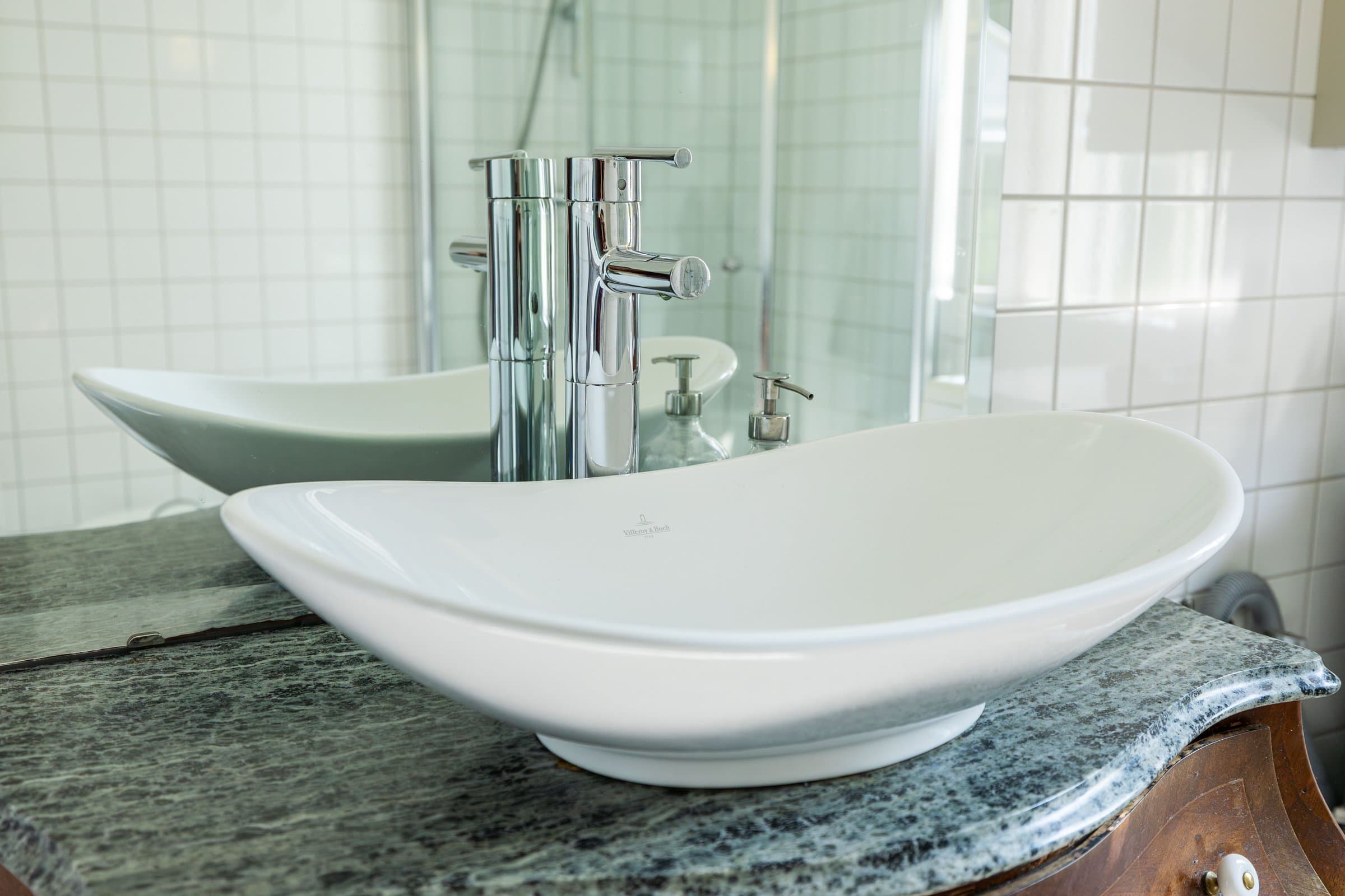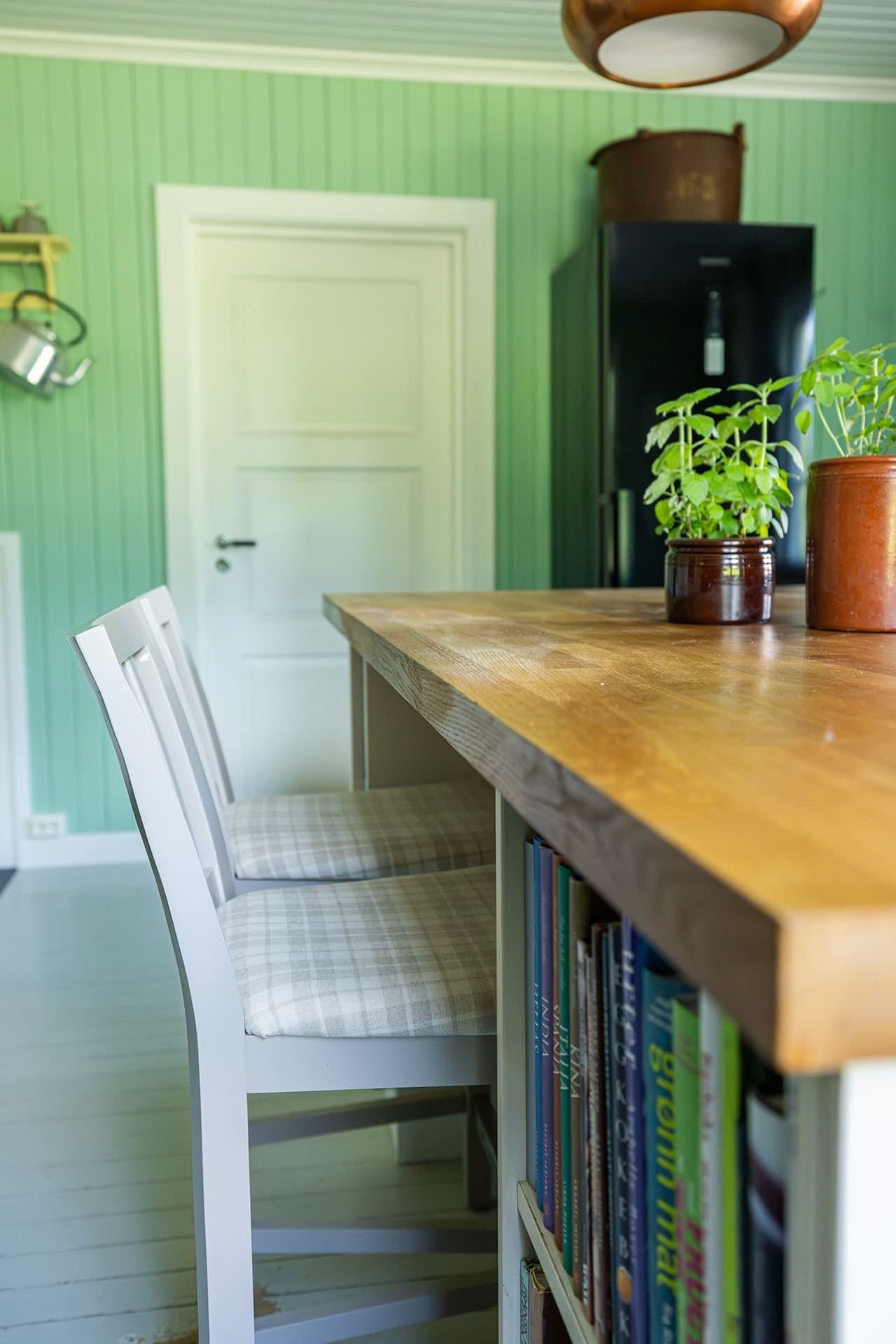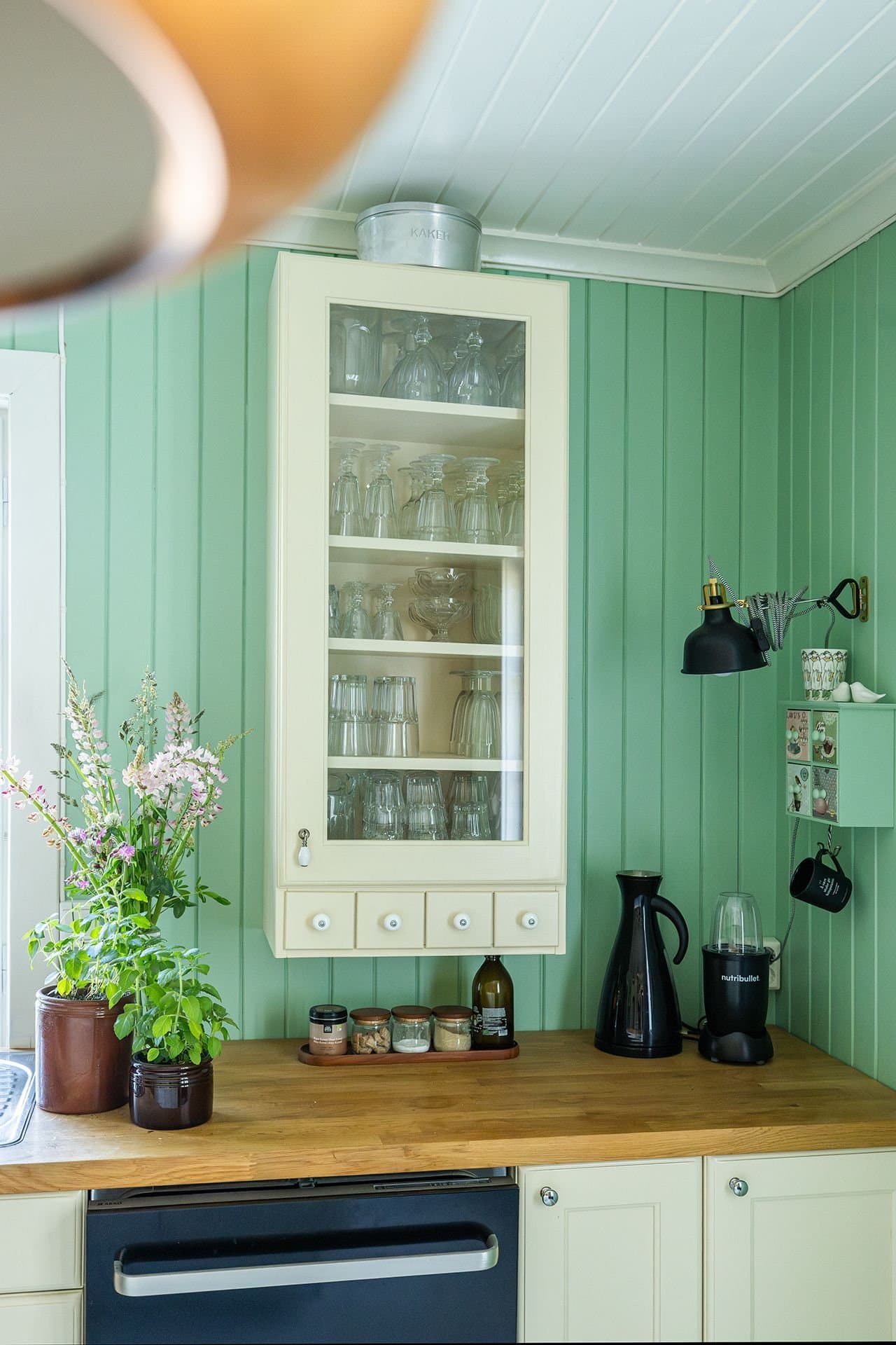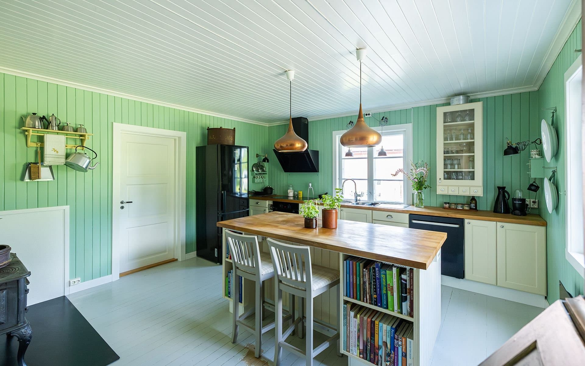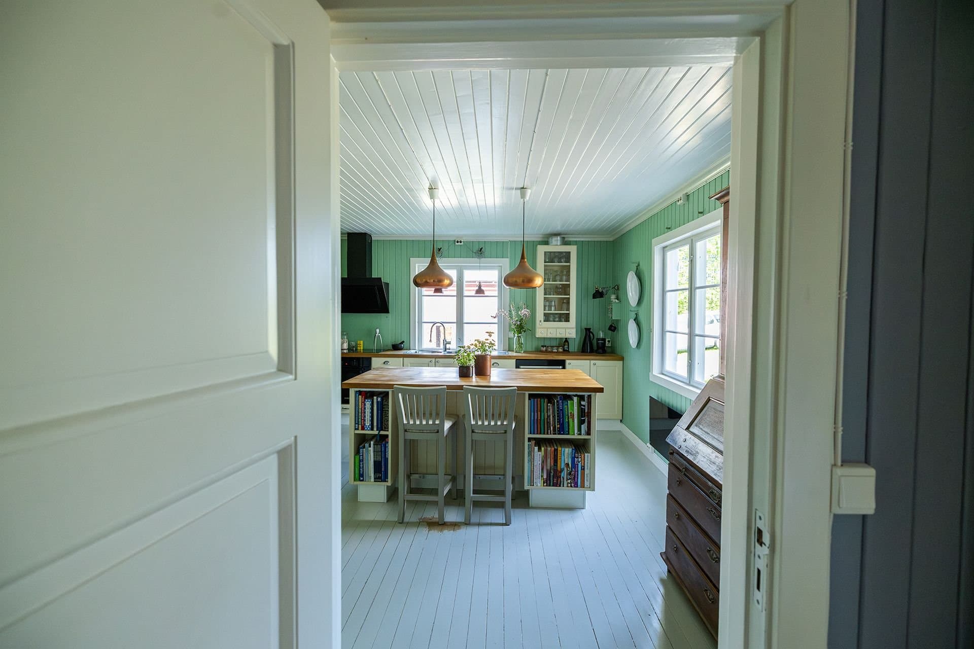 Entré og bad: Både bad og entré har flislagte gulv med varmekabler. Panel er produsert opp igjen i gammel stil hos Furnes almenning. Entreen har praktisk garderobe med skap og skuffer. Badet er flislagt og har panel i taket. Servant er montert på en klassisk gøteborgkommode med stenplate - denne kan enkelt byttes om man ønsker et mer familievennlig baderomsmøbel. Badet har dusjhjørne og gulvmontert toalett, samt to skap til toalettsaker. Hall: Hallen leder til kjeller, kjøkken, stue og har trapp til 2. etasje. Hallen har restaurert panel fra byggeåret, restaurert trapp og skyvedørsskap. Kjøkken: Kjøkkenet er i landlig stil med innredning fra Sivesind - lang benk, kjøkkenøy med frokostplass og to overskap i glass. Fronter er heltre eik lakkert av Løten maleverksted. Benkeplatene er i 40 mm heltre eik. Oppvaskkum i stål og ettgrepsarmatur. Stekeovn, induksjonstopp (90 cm), ovnsvifte (90 cm) og oppvaskmaskin i sort utførelse følger salget. Kjøkkenovn fra HamJern ble fagmessig restaurert i 2014 og har vært i daglig bruk vinterstid til både oppvarming og matlaging. To lamper i kobber av typen Orient designet av Jo Hammerborg i 1963 for danske Fritz Hansen. Veggpanel er opprinnelig og restaurert. Det gamle tregulvet er hentet frem igjen og malt med antikkgrå gulvmaling. Stuer: Veggpanel er opprinnelig og restaurert. Det gamle tregulvet er hentet frem igjen og malt med antikkgrå gulvmaling. Spisestuen har to lysekroner og stuen har en. Stuen har rentbrennende klebersteins peisovn i dansk design fra Rais - vakkert å se på og varmer godt! Stuene har nye dører i eksakt kopi av de opprinnelige, samt nye tofløysdører. Alle nye dører er spesiallaget av snekkerverksted. (To store vinduer fra en herskaplig 1920-tallsvilla i Hamar sentrum er kjøpt inn med tanke på mulighet for panorama i stuen. Disse kan følge salget.)
