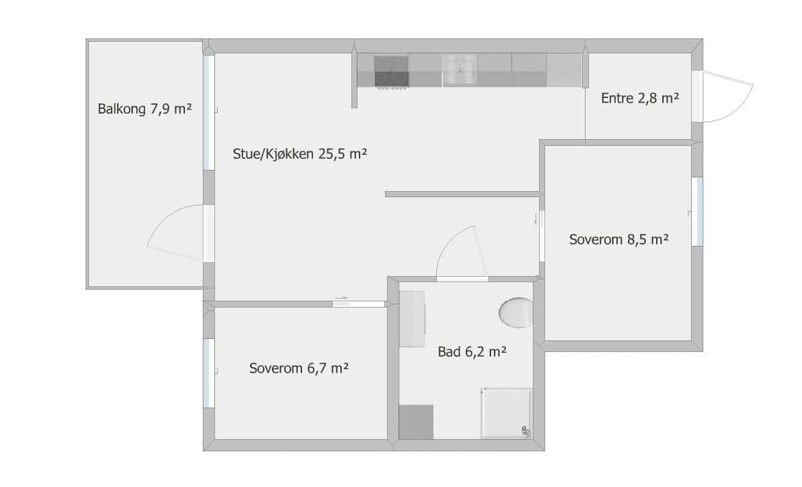 3-roms leilighet med vannbåren varme, fast garasjeplass, heis og felles takterrasse.