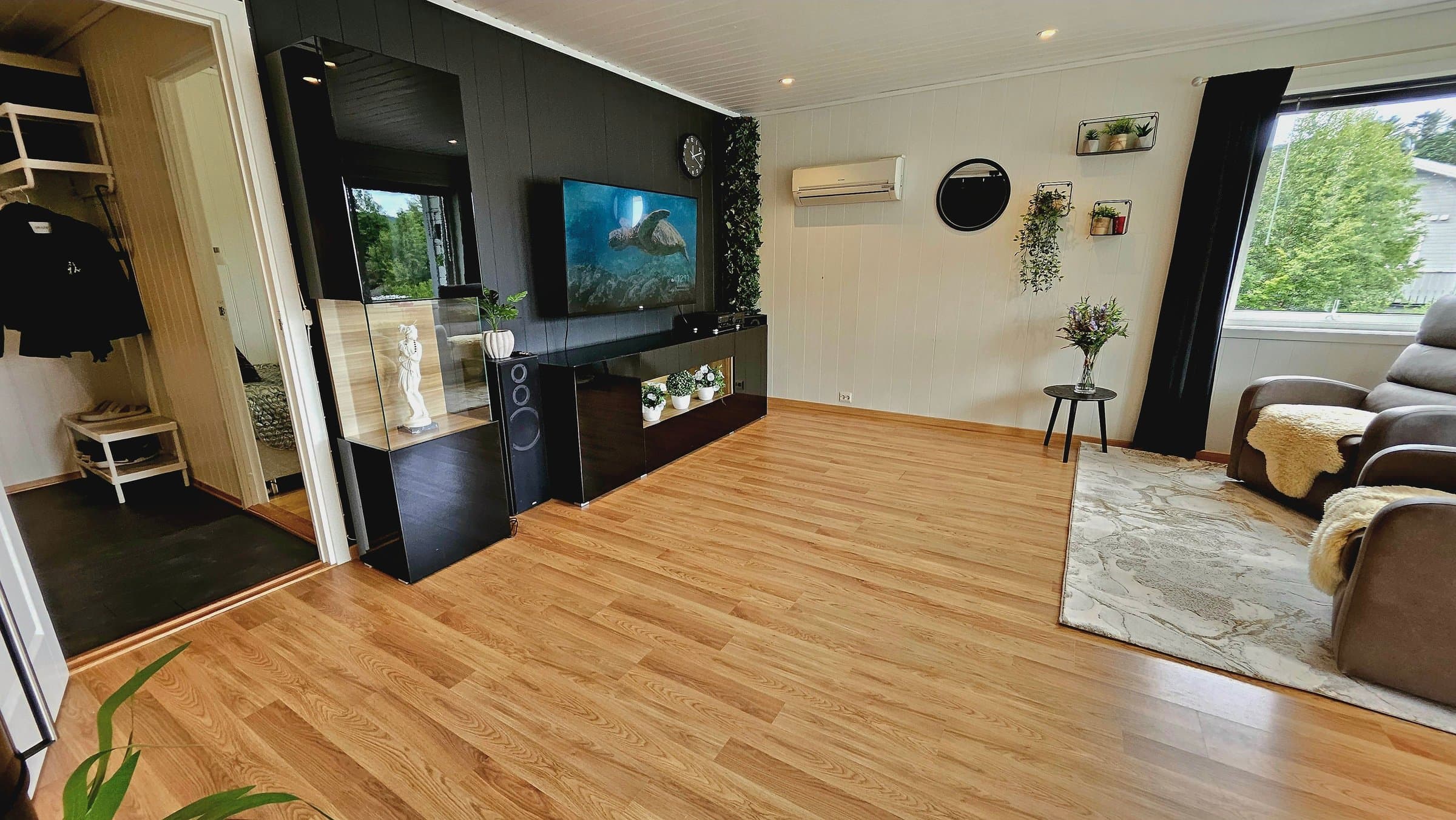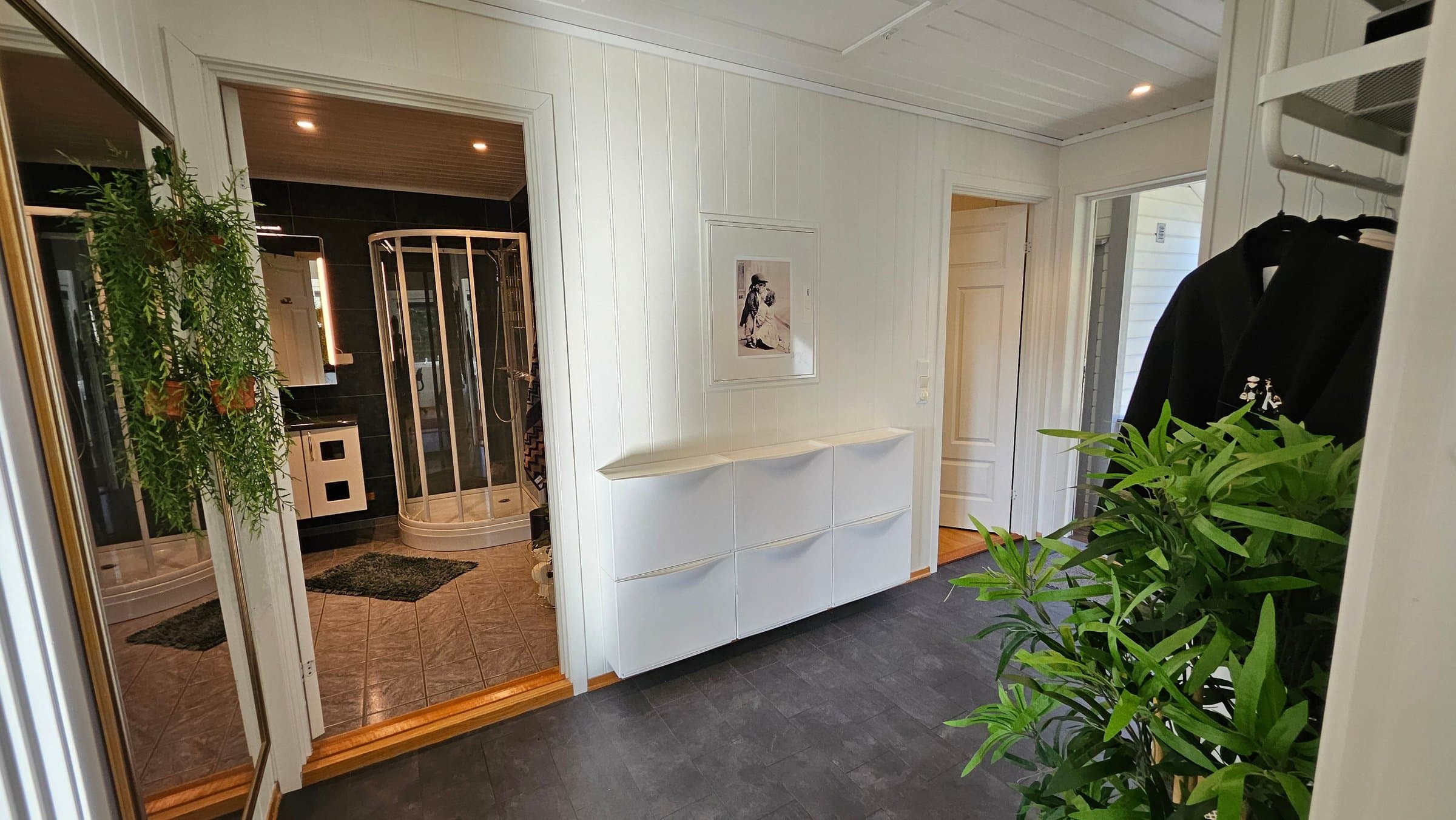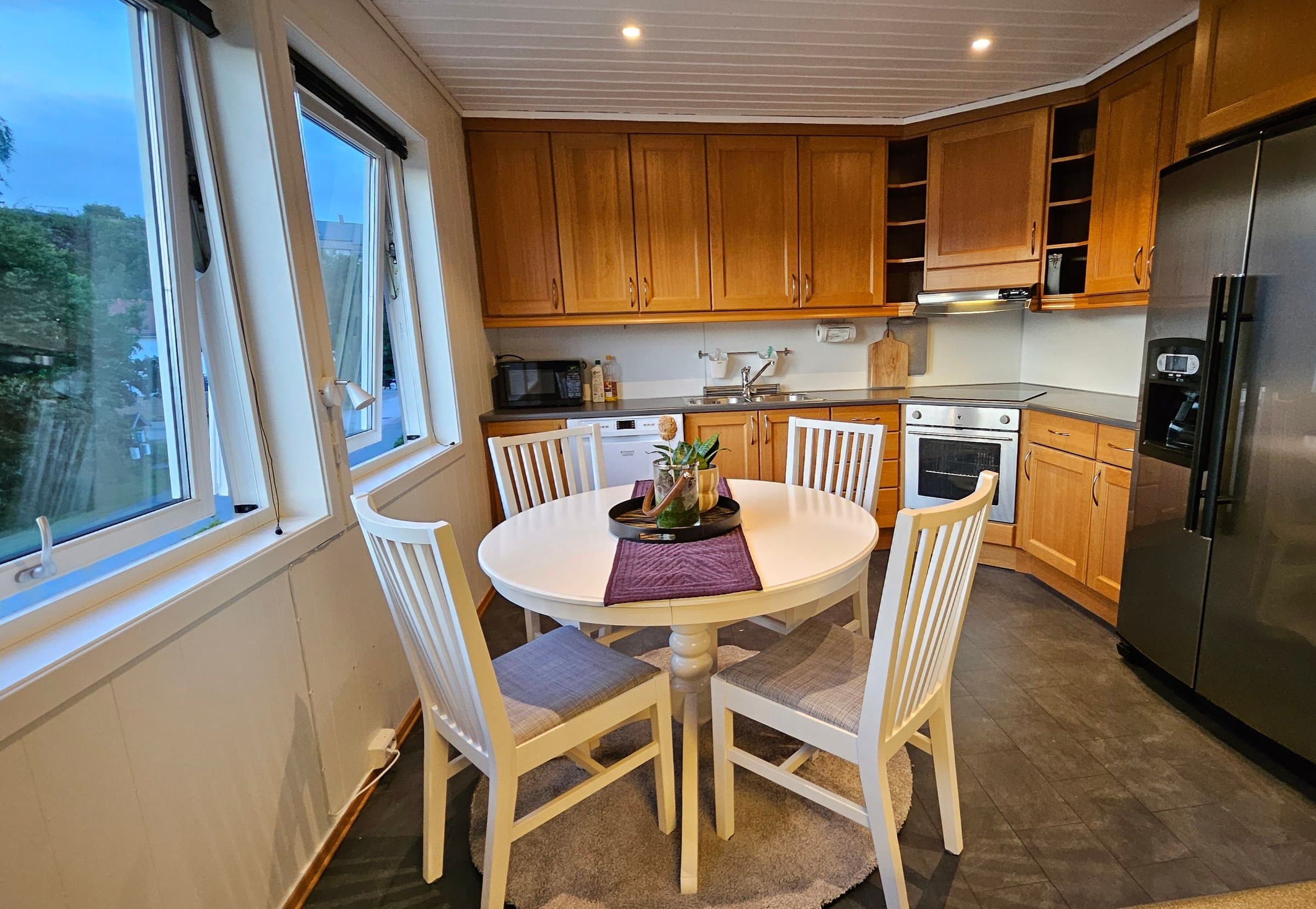 Vi har gleden av å presentere en innbydende og romslig del av en firemannsbolig med attraktiv beliggenhet på populære Hamran. Her bor du sentralt og trygt, med kort vei til både barnehager, skoler, butikker og sentrum. Boligen har en smart og funksjonell planløsning med gjennomtenkte løsninger: 🔹 Stor og lys stue med gode møbleringsmuligheter og store vindusflater som slipper inn rikelig med naturlig lys. Her finner du også en koselig peis, perfekt for å nyte naturlig varme og stemning på kalde vinterdager. 🔹 Utgang til solrik balkong – et ettertraktet oppholdssted hele sommerhalvåret, hvor du kan nyte solfylte ettermiddager og lange kvelder. 🔹 Stort kjøkken med praktisk utforming, godt med skap- og benkeplass, samt en koselig spiseplass. 🔹 Moderne bad med stilrene detaljer og praktiske skyvedører med speil som skjuler vaskeromsdelen. 🔹 Tre soverom, hvorav ett er innredet som walk-in closet – ideelt for deg som ønsker ekstra oppbevaringsplass. 🔹 Stort uisolert loft med svært gode lagringsmuligheter. Dette er en bolig med mye sjel og en hjemmekoselig atmosfære – perfekt for både små familier, par eller førstegangskjøpere. Her kan du flytte rett inn – velkommen til visning!
