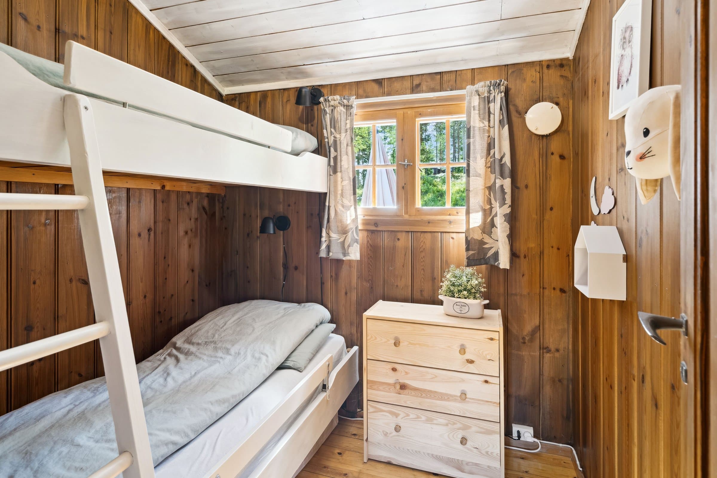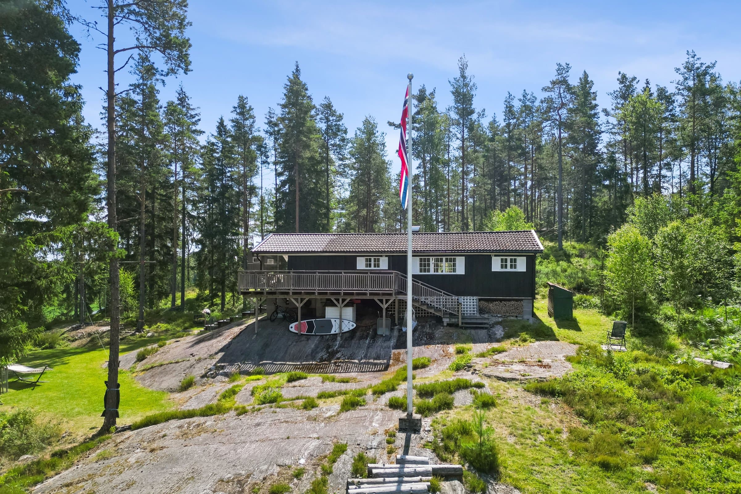 5-roms helårshytte med båtplass i Haldenvassdraget. Innlagt strøm, vann og avløp.