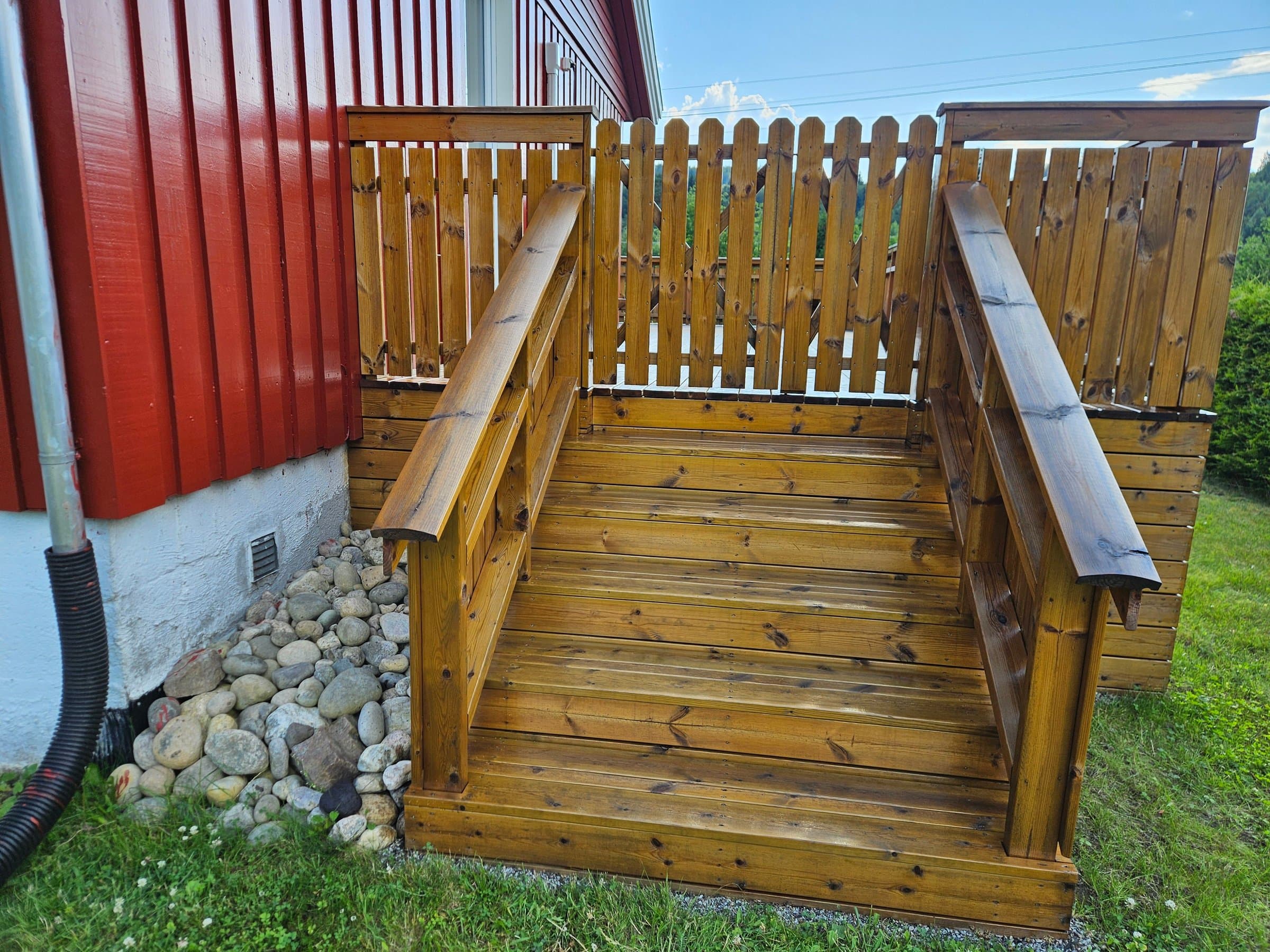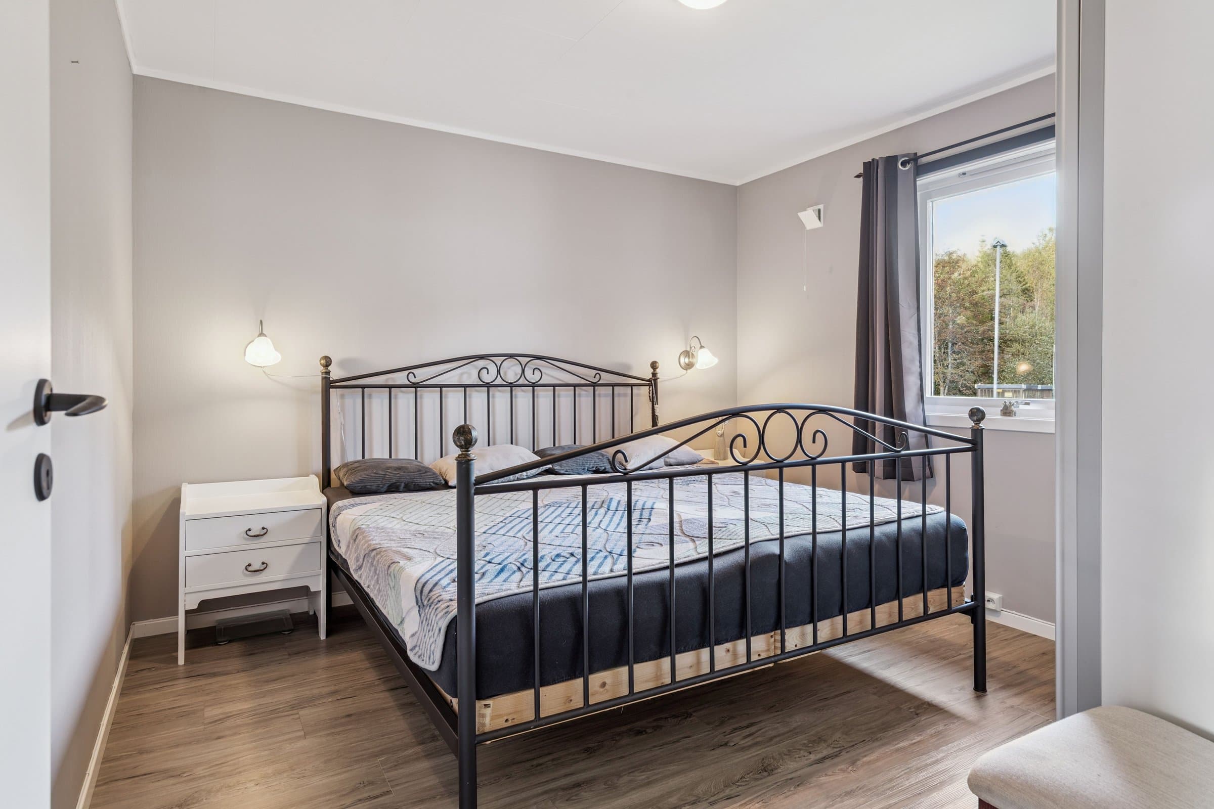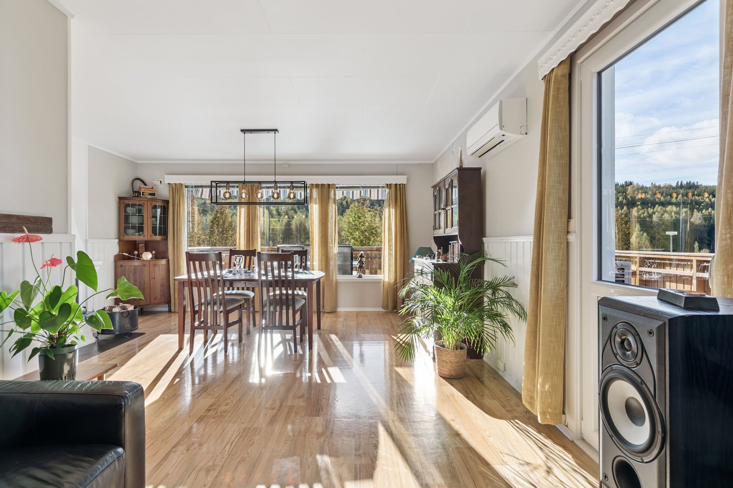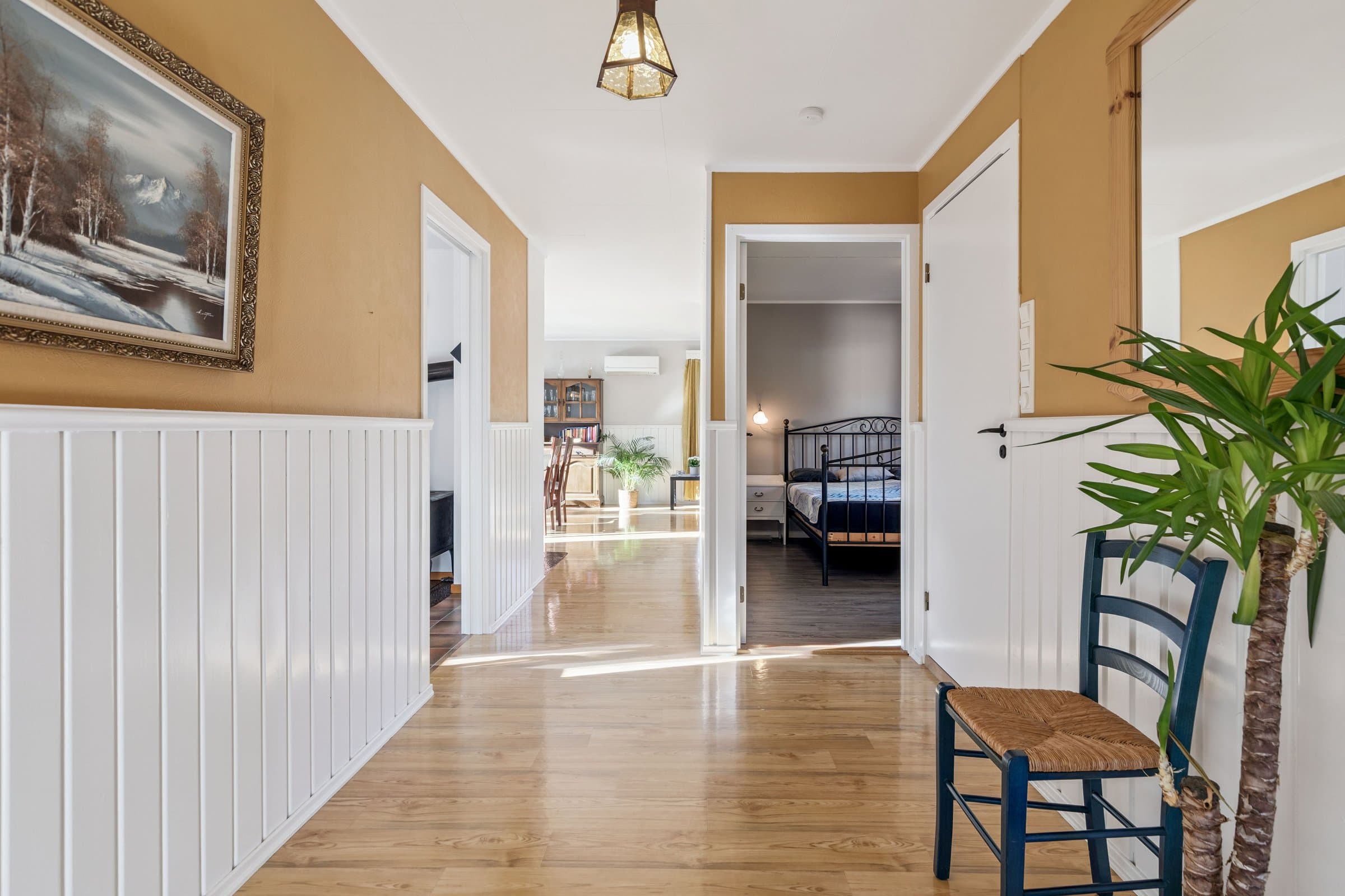 Eneboligen er på 1 etg og delvis innredet kjeller. Med isolert dobbelgarasje på 40 m² inntil huset og en liten ute bod på 7 m². I garasjen er det 3 fase strømuttak og fin plass til 2 biler og fortsatt plass til litt hobby. Blir raskt varmt i garasjen når man setter på litt varme om vinteren! Gårdsplassen er romslig og belagt med beleggningsstein! Ellers en flat tomt med gressplen og hekk. Boligen er i generell god stand og har en fin og praktisk rominndeling med god plass for en familie! Dem fleste flater innvendig er nymalt. 1 etg består av inngangsterrasse med delvis takoverbygg, entré med fliser og varme i gulv med stor skyvedørsgarderobe, gang, soverom 1, trapperom, soverom 2, bad med varme i gulv, soverom 3, kjøkken og stue med utgang til stor solrik terrasse med 2 trapper ned til hagen! Terrassen er bygget I 2023. Badet er nyoppusset våren 2025! Har praktiske porter ved inngangsterrassen og ved begge trappene på hovedterrassen! Som oppvarming/nedkjøling er det varmepumpe i stuen som fungerer veldig godt!, ellers er det vedfyring med peis i stuen og en gammel svartovn på kjøkkenet. Også panelovn på soverom 1. Kjelleren består av trapperom, vaskerom/bad med varme i gulv og en panelovn opplegg til vaskemaskin, stort delvis panelert gråkjellerrom, lite panelert bodrom, 2 gråkjeller/bodrom med tilkoblet vedovn i innerste rom. Innerste 3 kjellerrom er uinnredet men med masse muligheter! Er ny varmtvannsbereder i vaskerom på 282 liter som ble montert i august 2025!