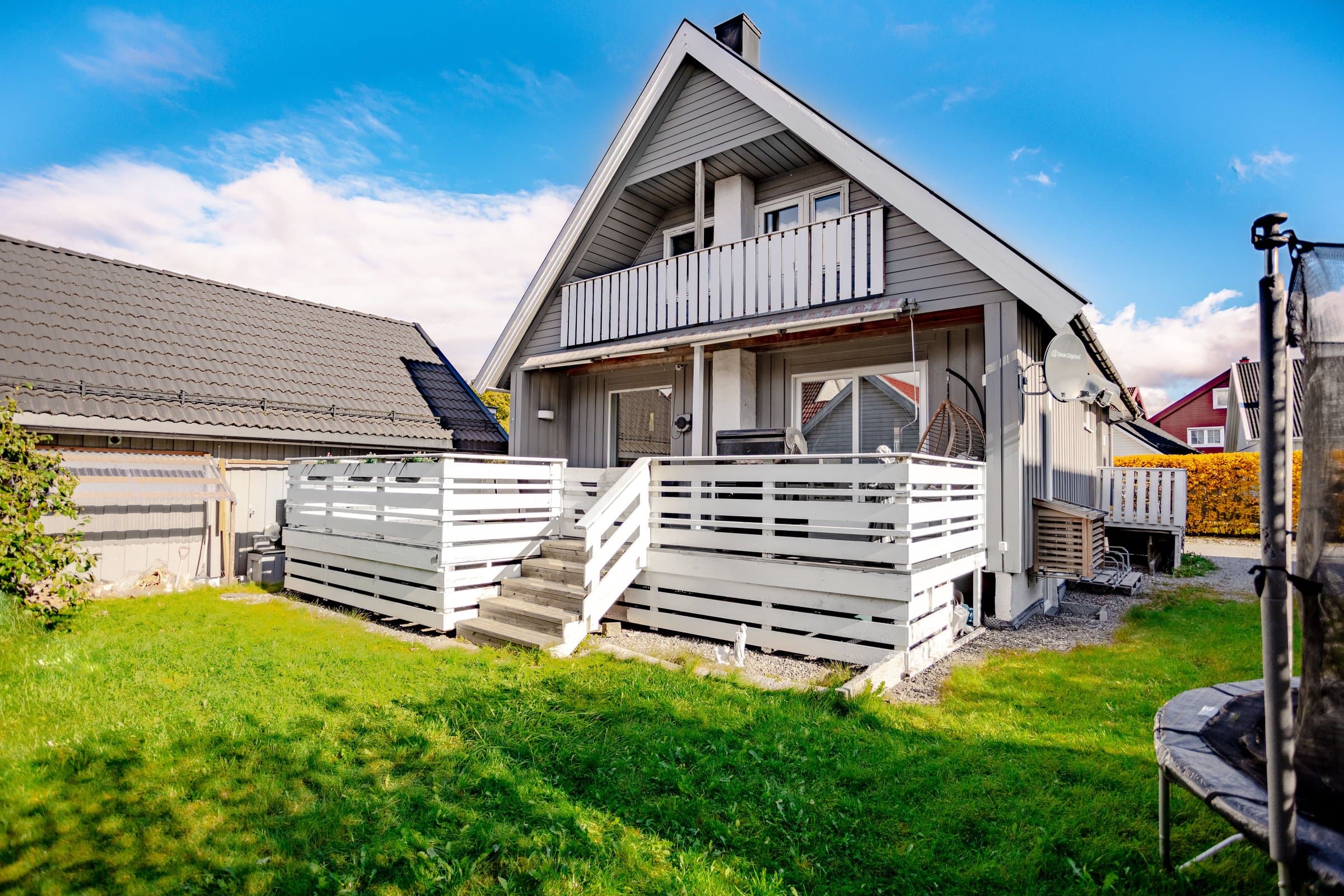 Lys og romslig enebolig over tre plan | Solrik terrasse | Dobbelgarasje m/lader | Gangavstand til tog og skole