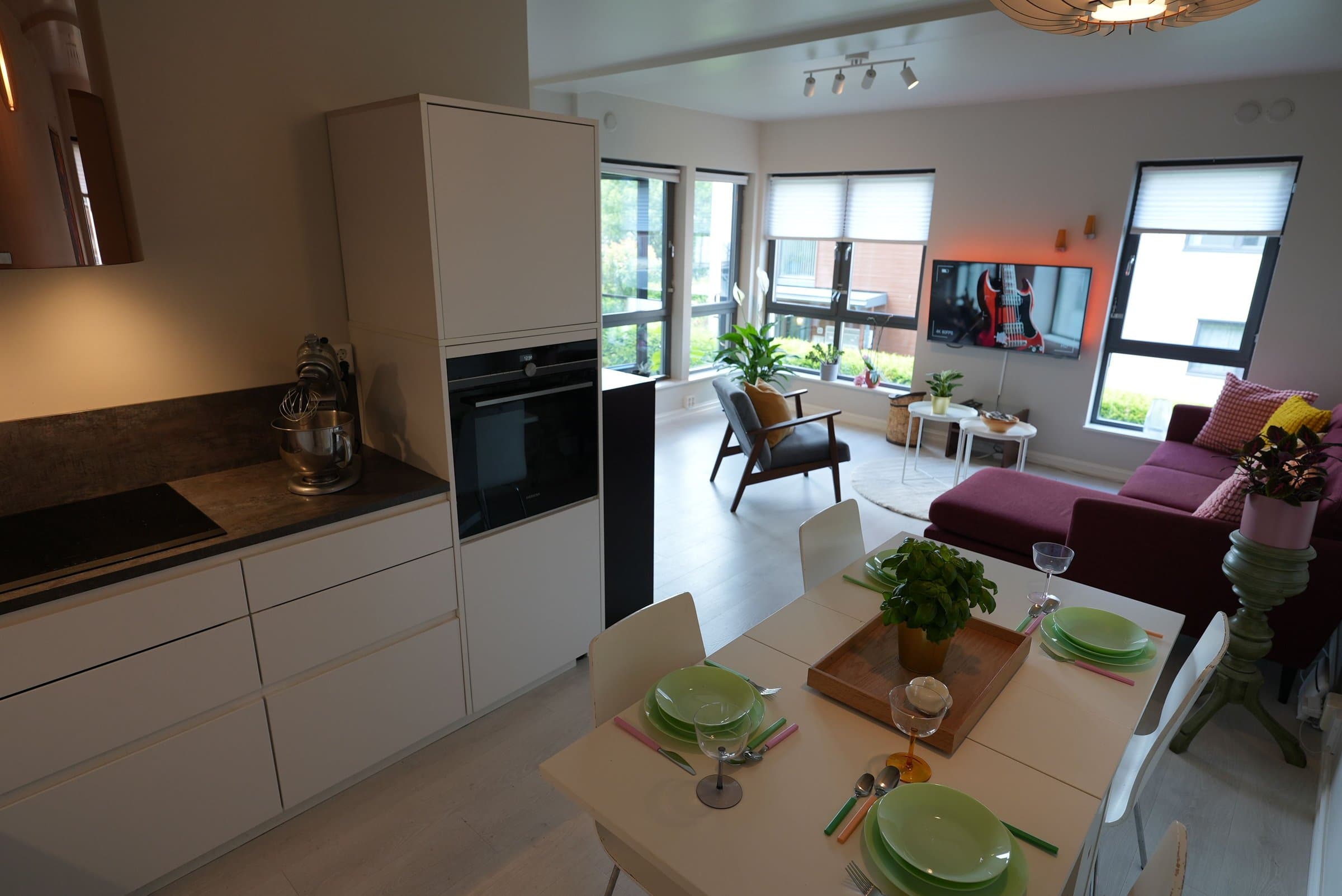 Ta kontakt før visning på tlf 96237250, så slipper jeg deg inn. Avtal gjerne tidspunkt på forhånd. Lys og trivelig leilighet. Store vindusflater. Stort soverom med walk in closet. Høy standard på kjøkken med induksjonsovn. En del av inventaret som TV, elektrisk peis ovn, vaskemaskin, lamper og pyntegjenstander kan medfølge med nærmere avtale. Store og velholdte fellesarealer. Svømmehall og treningsfasiliteter i umiddelbar nærhet.