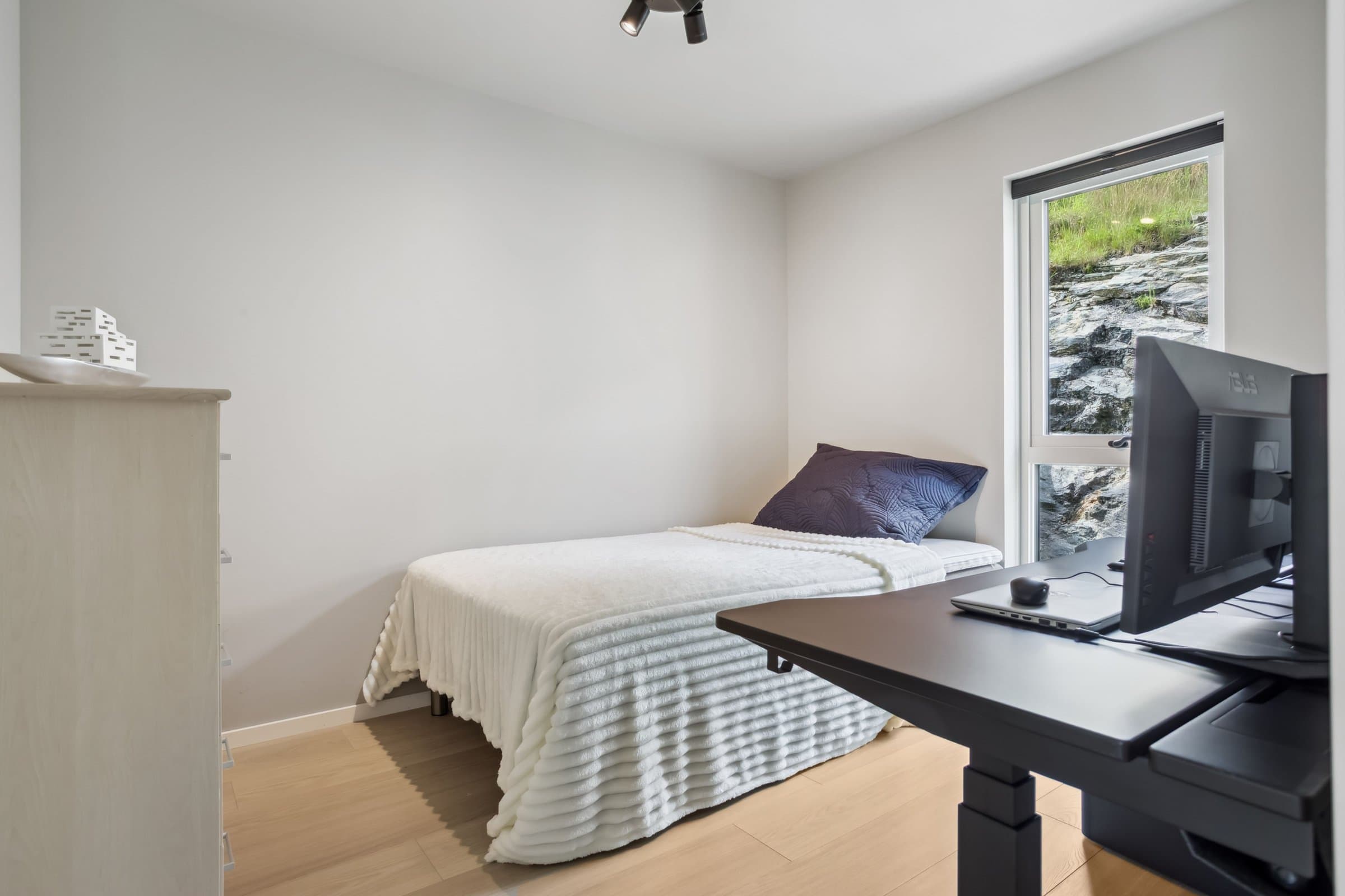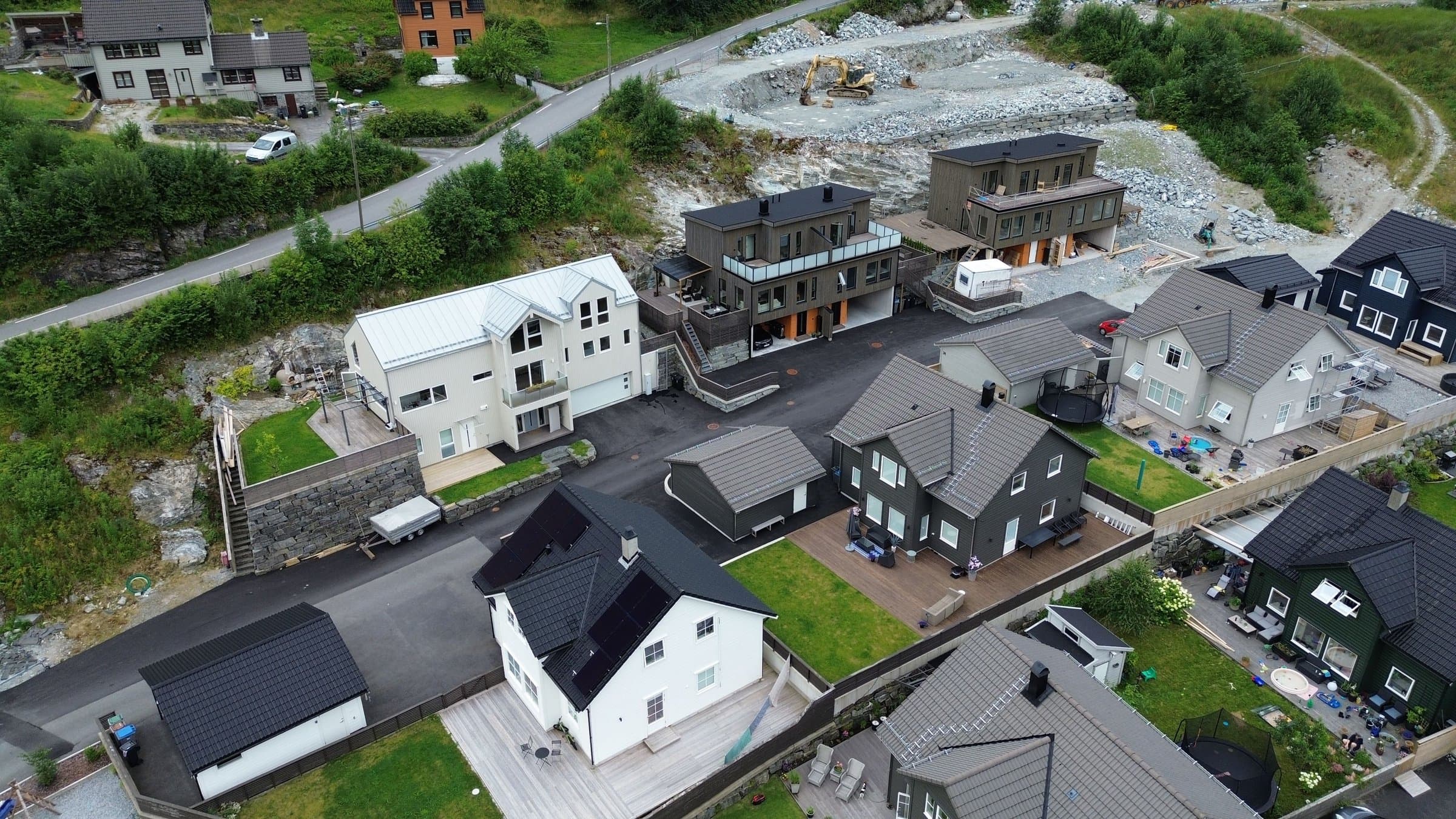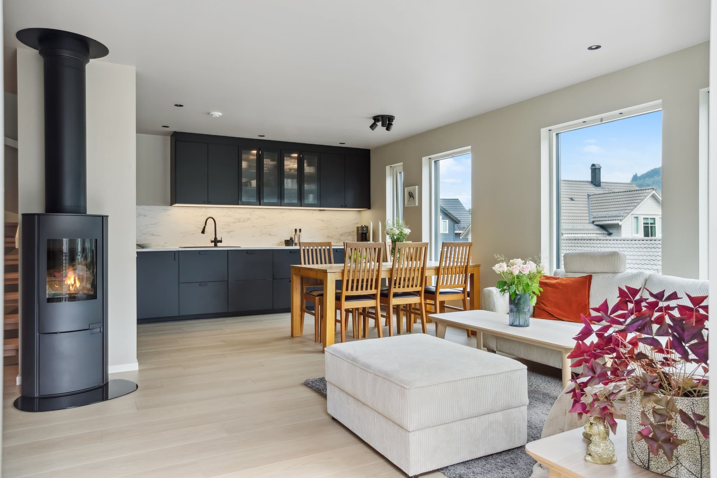 Denne flotte tomanns boligen fra 2024 er en romslig og moderne funkis bolig på 3 etasjer og totalt 109,6 kvadratmeter boareal. Boligen har en rekke attraktive fasiliteter som takterrasse, carport/p-plass, stor markterrasse med pergola, peis/ildsted, balansert ventilasjon samt lader for elbil. Den generelle standarden på boligen er høy, med moderne fasiliteter og god kvalitet på materialer og utførelse. Med alle disse flotte egenskapene vil denne boligen være et ideelt hjem for de som søker en komfortabel og funksjonell bolig i vakre omgivelser. Beliggenheten er barnevennlig og sentral, med vakker utsikt. Om boligen Areal: P rom ca. 109kvm + BRA e (bod 5,2m) Arealbeskrivelse Bolig Primærrom Kjeller: 24,5 kvm 1. etasje: 52,2 kvm 2. etasje: 32,9 kvm Arealene er hentet fra byggetegninger og avvik kan forekomme. Eventuelle mindre avvik vil ikke ha innvirkning på avtalen. Tomtetype Eiet (andel 1/2) Tomtestørrelse 695.4 m² Tomtebeskrivelse Tomten er asfaltert foran huset og opparbeidet med markterrasse, trappe og parkeringsplasser. Innhold Boligen inneholder: U.etasje: Carport, sportsbod, vaskerom/ wc og hall med trapp. 1. etasje: Hall, 2 soverom samt stue og kjøkken. Markterrasse. Loft: Soverom, hall og bad/wc. takterrasse med glass rekkverk. Standard Boligen er levert med høy standard etter dagens krav. Ventilasjon. Malte gipsede overflater. Innsparklede vindu. Ikea kjøkken med oppgraderte hvitevarer (kjøleskap og fryseskap). Megaflis baderoms innredning og dusj dører. Helfliset baderom. 1 stavs Pergo Laminat. Royal grå kledning. Fliser gang. Glass rekkverk på takterrasse. Harmoni spon fylte innerdører. Vinduer er svart utvendig og hvit inne; 3 lags glass. Parkering på egen tomt + gjeste parkeringer. Carport
