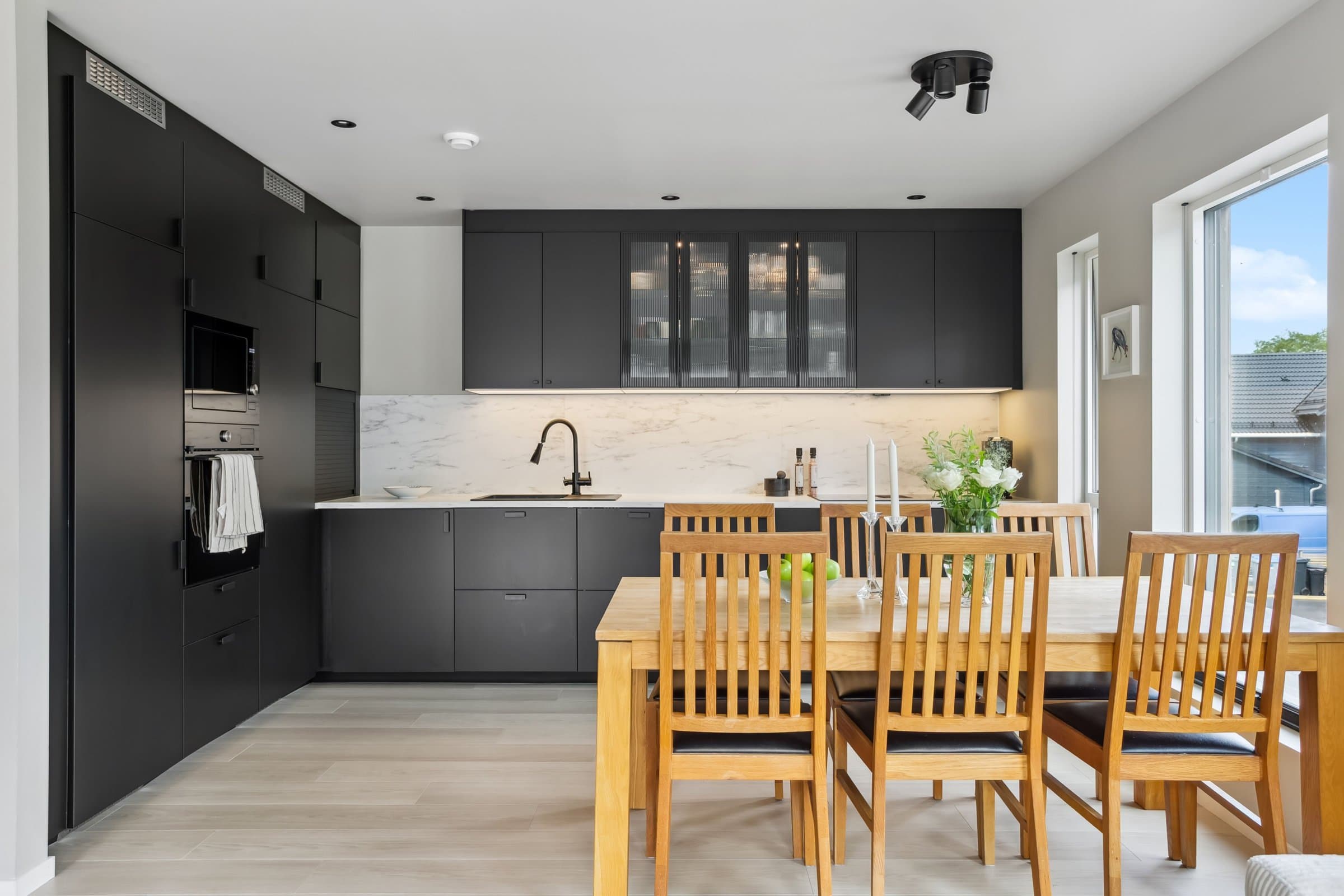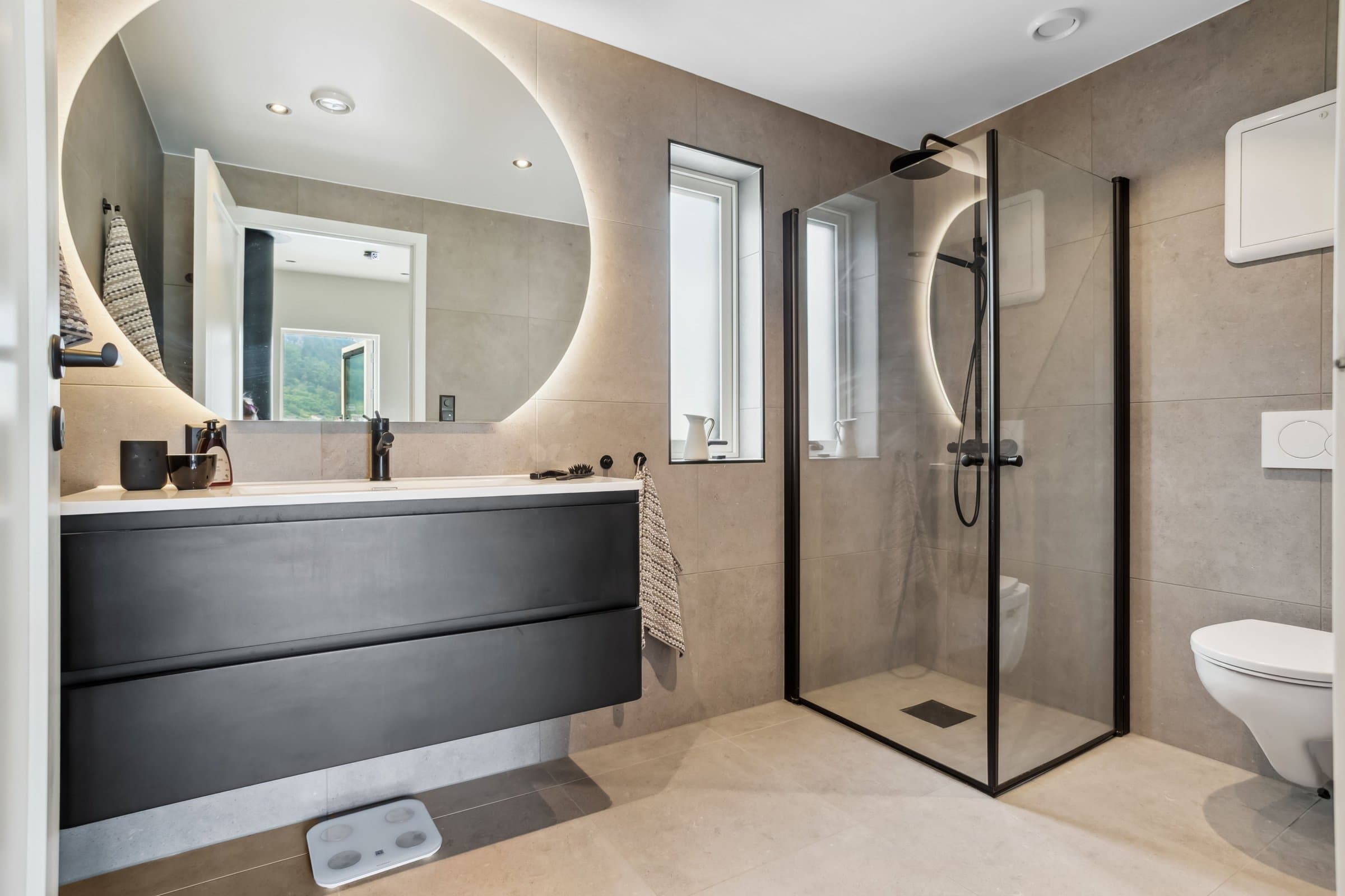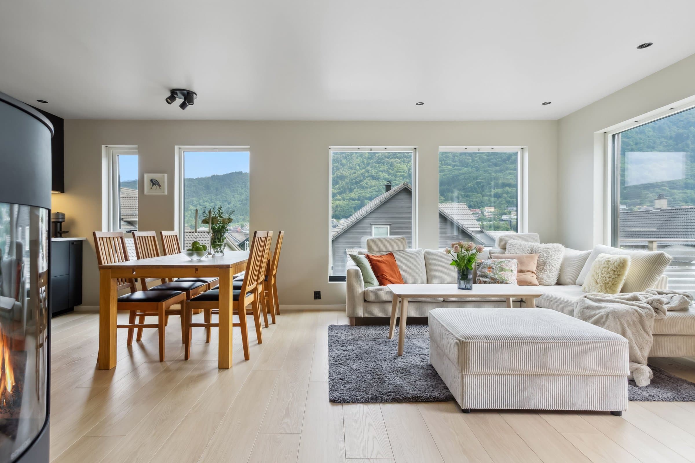 Denne flotte tomanns boligen fra 2024 er en romslig og moderne funkis bolig på 3 etasjer og totalt 109,6 kvadratmeter boareal. Boligen har en rekke attraktive fasiliteter som takterrasse, carport/p-plass, stor markterrasse med pergola, peis/ildsted, balansert ventilasjon samt lader for elbil. Den generelle standarden på boligen er høy, med moderne fasiliteter og god kvalitet på materialer og utførelse. Med alle disse flotte egenskapene vil denne boligen være et ideelt hjem for de som søker en komfortabel og funksjonell bolig i vakre omgivelser. Beliggenheten er barnevennlig og sentral, med vakker utsikt. Om boligen Areal: P rom ca. 109kvm + BRA e (bod 5,2m) Arealbeskrivelse Bolig Primærrom Kjeller: 24,5 kvm 1. etasje: 52,2 kvm 2. etasje: 32,9 kvm Arealene er hentet fra byggetegninger og avvik kan forekomme. Eventuelle mindre avvik vil ikke ha innvirkning på avtalen. Tomtetype Eiet (andel 1/2) Tomtestørrelse 695.4 m² Tomtebeskrivelse Tomten er asfaltert foran huset og opparbeidet med markterrasse, trappe og parkeringsplasser. Innhold Boligen inneholder: U.etasje: Carport, sportsbod, vaskerom/ wc og hall med trapp. 1. etasje: Hall, 2 soverom samt stue og kjøkken. Markterrasse. Loft: Soverom, hall og bad/wc. takterrasse med glass rekkverk. Standard Boligen er levert med høy standard etter dagens krav. Ventilasjon. Malte gipsede overflater. Innsparklede vindu. Ikea kjøkken med oppgraderte hvitevarer (kjøleskap og fryseskap). Megaflis baderoms innredning og dusj dører. Helfliset baderom. 1 stavs Pergo Laminat. Royal grå kledning. Fliser gang. Glass rekkverk på takterrasse. Harmoni spon fylte innerdører. Vinduer er svart utvendig og hvit inne; 3 lags glass. Parkering på egen tomt + gjeste parkeringer. Carport
