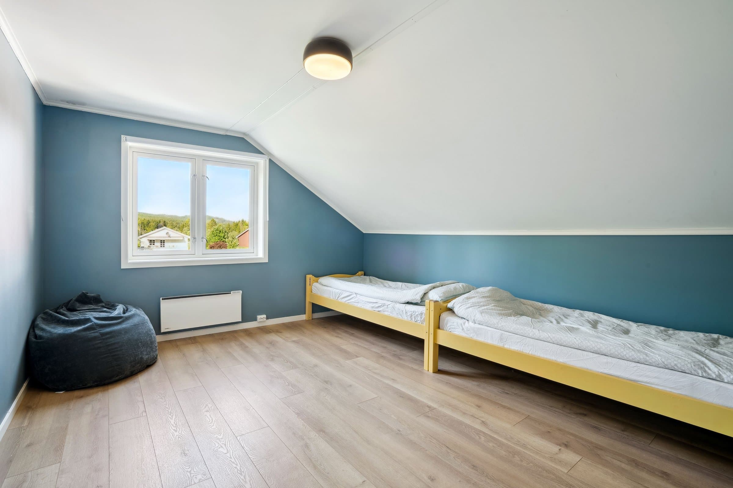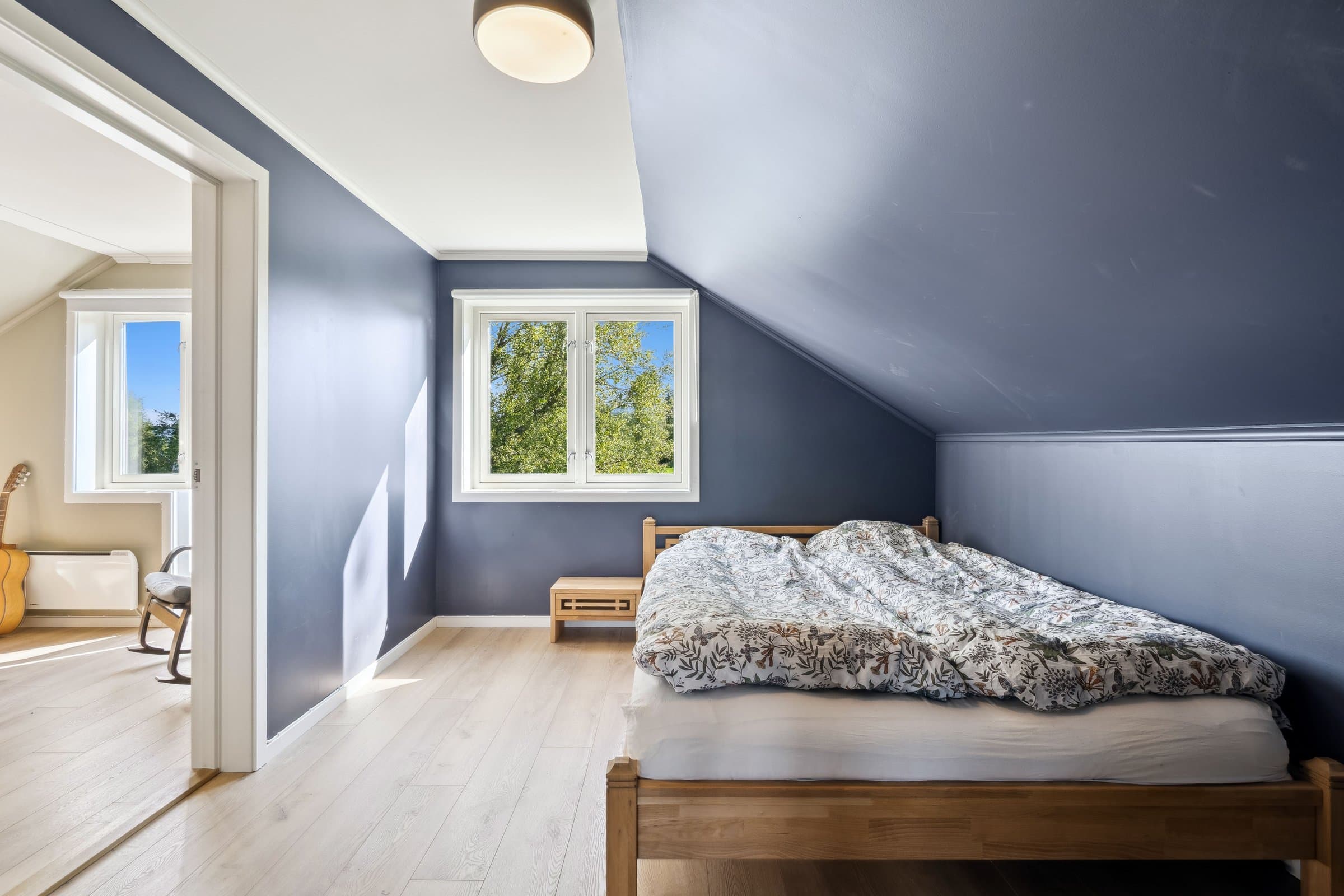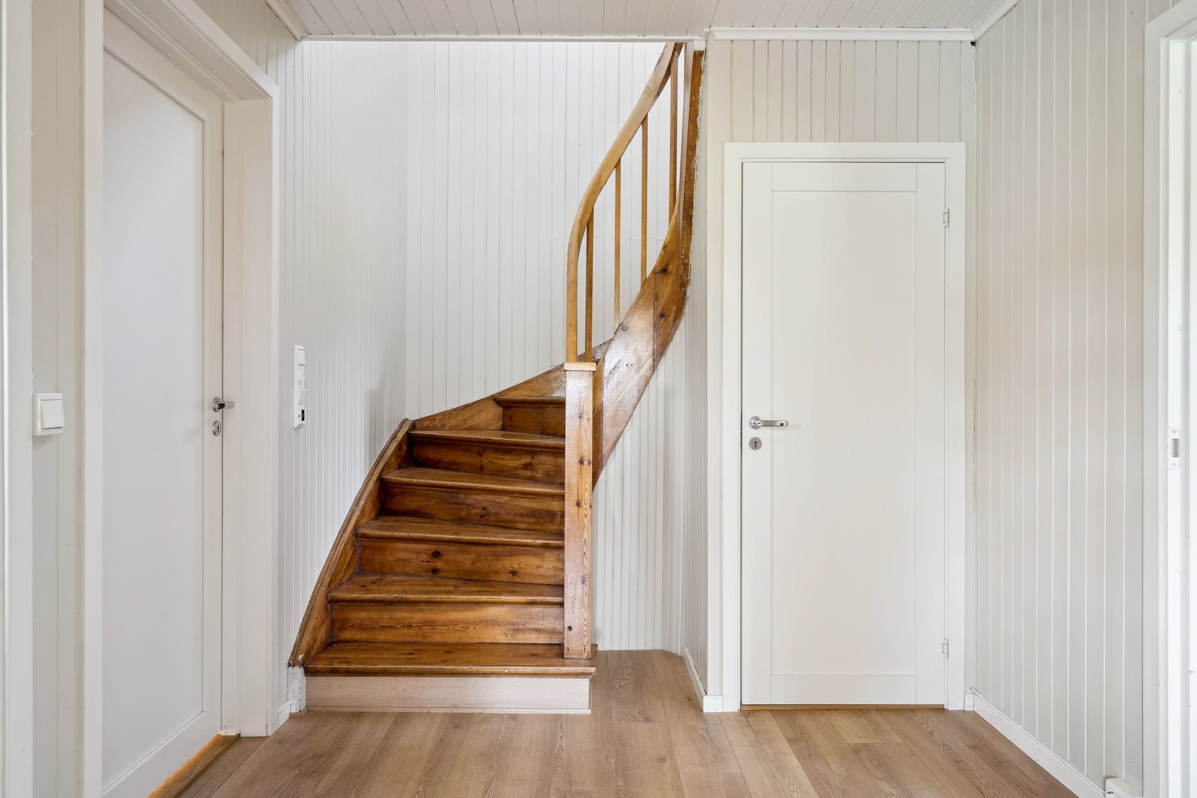 Huset er en klassisk 50-talls enebolig som er bygd ut i to omganger og totalrenovert i 2021-25. Nytt er blant annet tak, pipe, elektrisk anlegg, vinduer, dører, bad og kjøkken, samt overflater. Stuen er lys og romslig, med mange muligheter for møblering. Utgang til terrasse og hage. Ny vedovn og pipe gir trygg og effektiv fyring, sammen med panelovner. Strømforbruket er lavt. Store vinduer med 180 graders utsikt til jorder, trær og dyreliv. Kjøkkenet er nytt av 2021, med gode arbeidsforhold og sittekrok i hjørnet. Innredningen er fra Huseby, og hvitevarene fra AEG og Gorenje. Tre store soverom i harmoniske farger, med gulv i samme solide eikelaminat som nede. To av soverommene har integrerte klesskap, og ett har utgang til egen veranda. Badet nede er lyst og delikat, med fliser på vegger og gulv, innredning i eik fra Linn bad, dusjhjørne, vegghengt toalett og plass til stort badekar. Gulvet er nylig lagt på nytt slik at avviket i tilstandsrapporten er rettet opp. Badet oppe er eldre, men med nytt toalett. Kjelleren gir lagringsplass i tre rom, hvorav ett med spiskammers. Det er satt inn nye vinduer, og ventiler som gir god lufting.