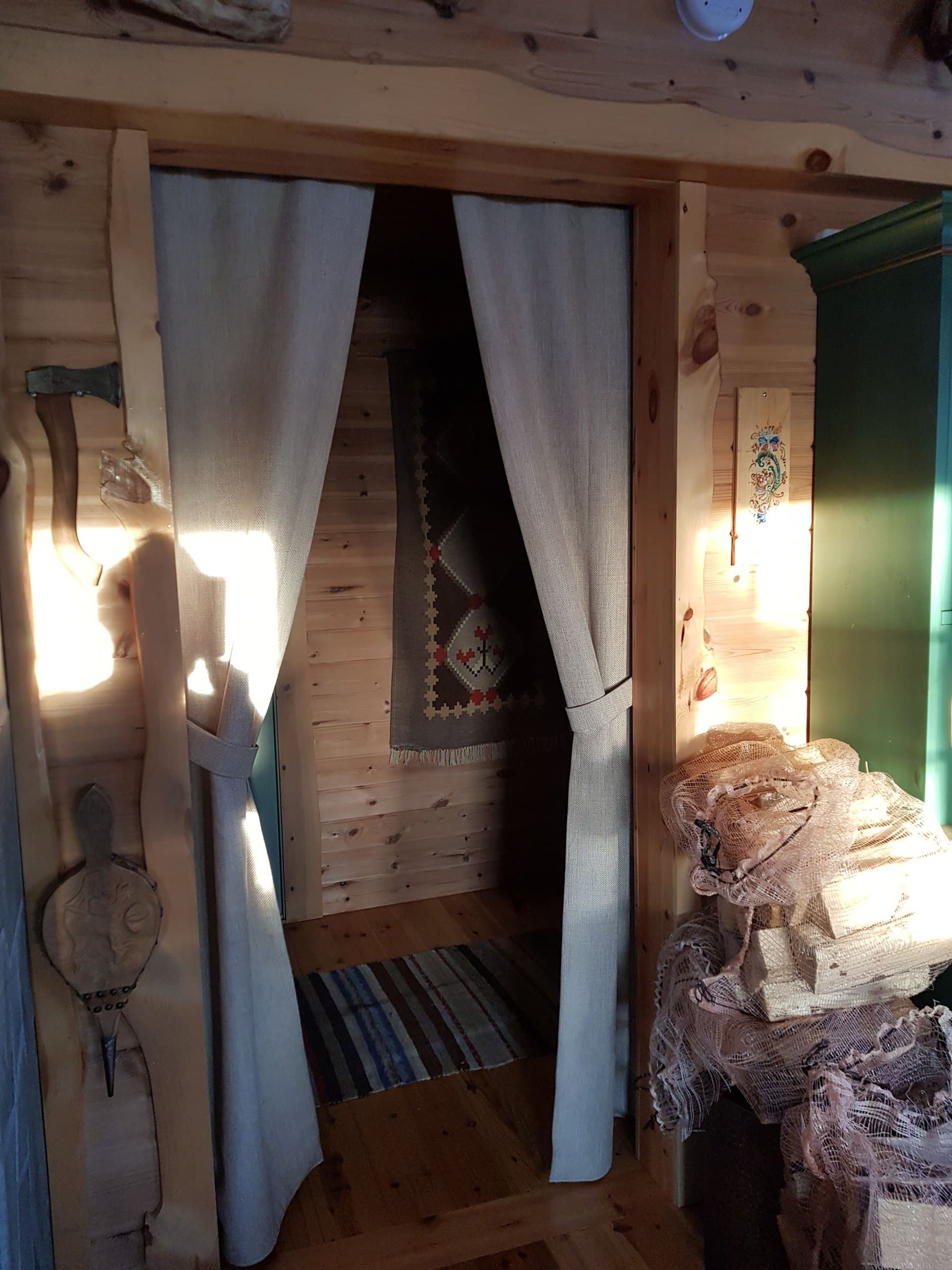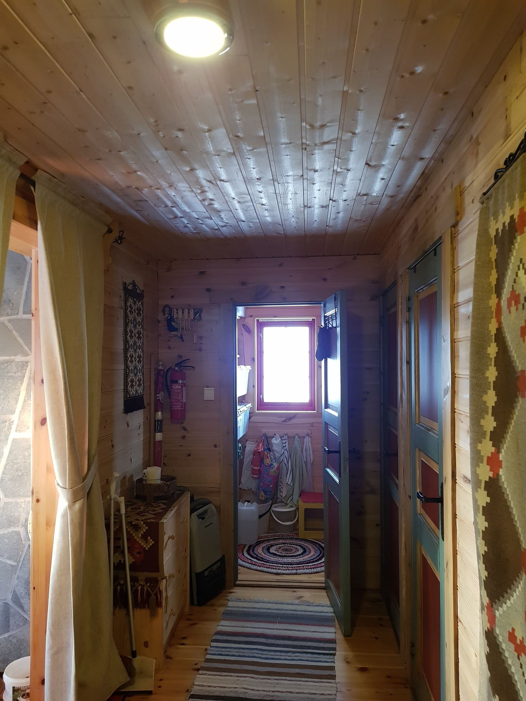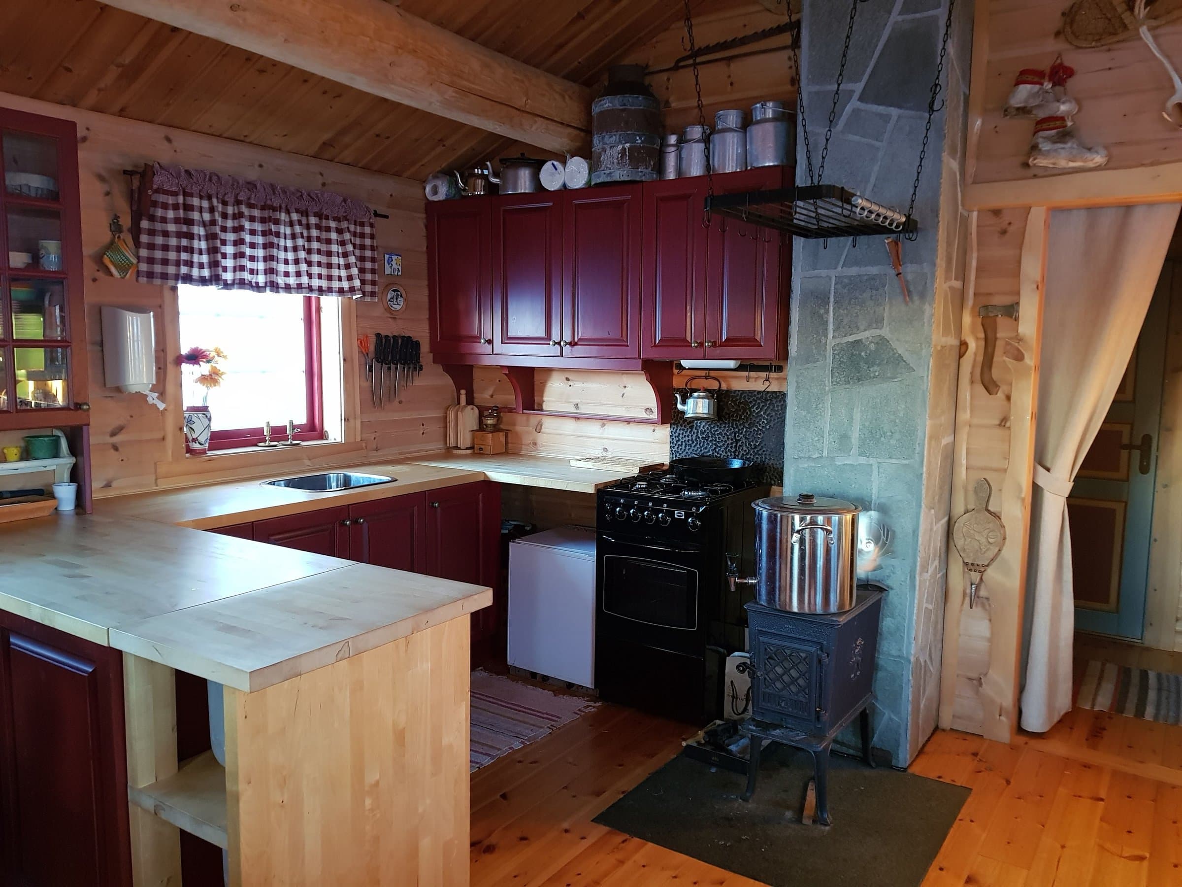 Byggemåte: Rundstokker i tak, isolerte vegger med villmarkspanel på utsiden. Listverk er 12mm villmarkspanel tilpasset vinduer og dørrammer. God lagringsplass på hems med tilgang via loftstrapp, mulldo, solcellepanel 80W med batterier. Lagringsplass under hytten. Gasskomfyr m/koketopp, gasskjøleskap. Oppvarming - vedfyring, ikke innlagt vann. Stor veranda.