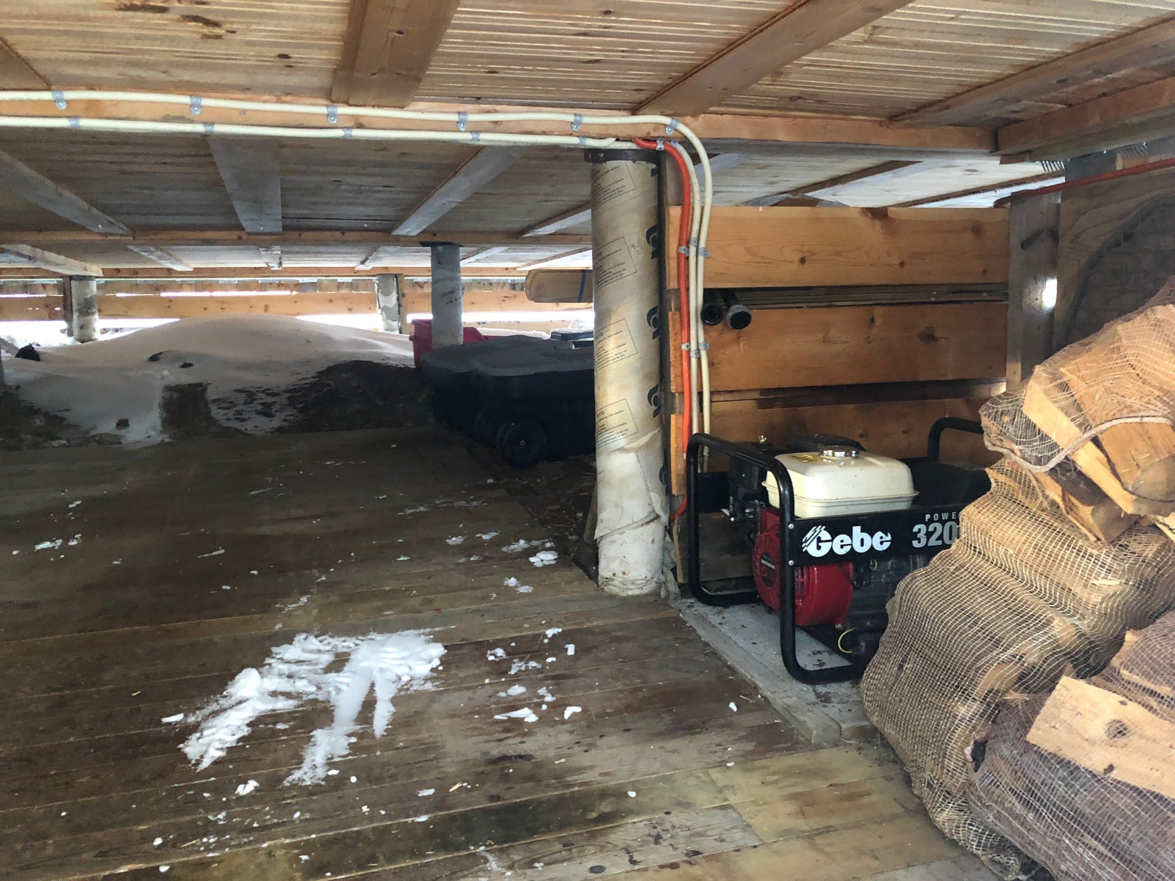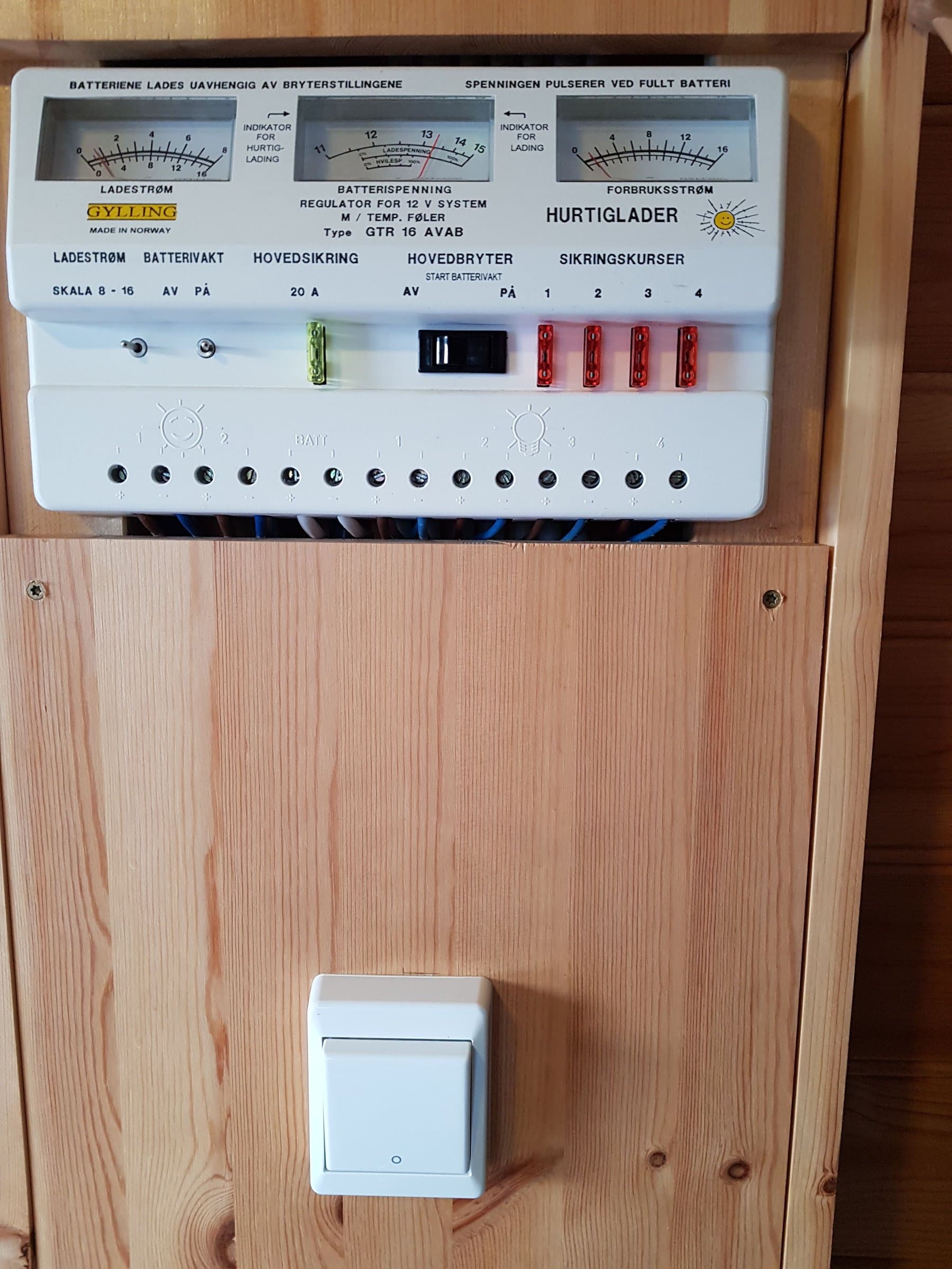 Alt av solcellekabling er byttet til PFXP på brytere og stikkontakter. Hvis E-verket blir å tilby strøm i området i fremtiden, er oppgradering enkelt å gjøre. ROFLEX-kabel til solcellepanel har stor temperaturområde og sprekker ikke i kulde. Det er plass til et ekstra solcellepanel og det er gjort klart til kabling for det. Invertere er plassert i fordelingsskap yttergang og under kjøkkenbenk. Det er lagt opp stikkontakter både ute og inne slik at aggregatet lett forsyner støvsuger eller elverktøy.
