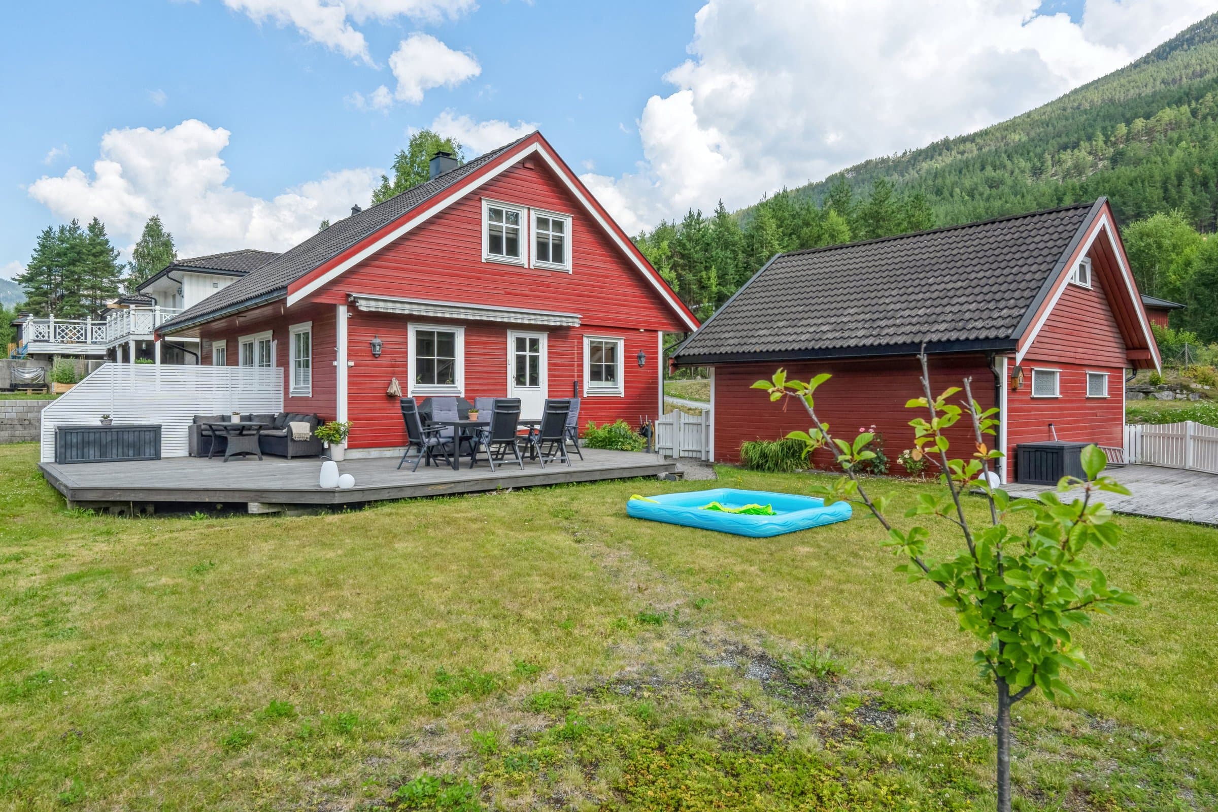 Denne flotte eneboligen i Nesbyen til salgs er en romslig bolig med en størrelse på 118 kvm fordelt på to etasjer. Boligen har alt man kan ønske seg med garasje med lader til el-bil, terrasse, peis, og aircondition som skaper ekstra komfort. Den er sentralt beliggende og barnevennlig. I tillegg har boligen en fin hage og tilgang til offentlig vann/kloakk. Det er også god tilgang til turterreng i nærheten. Den generelle standarden på denne eneboligen er høy, da det er utført ulike oppgraderinger de siste årene.