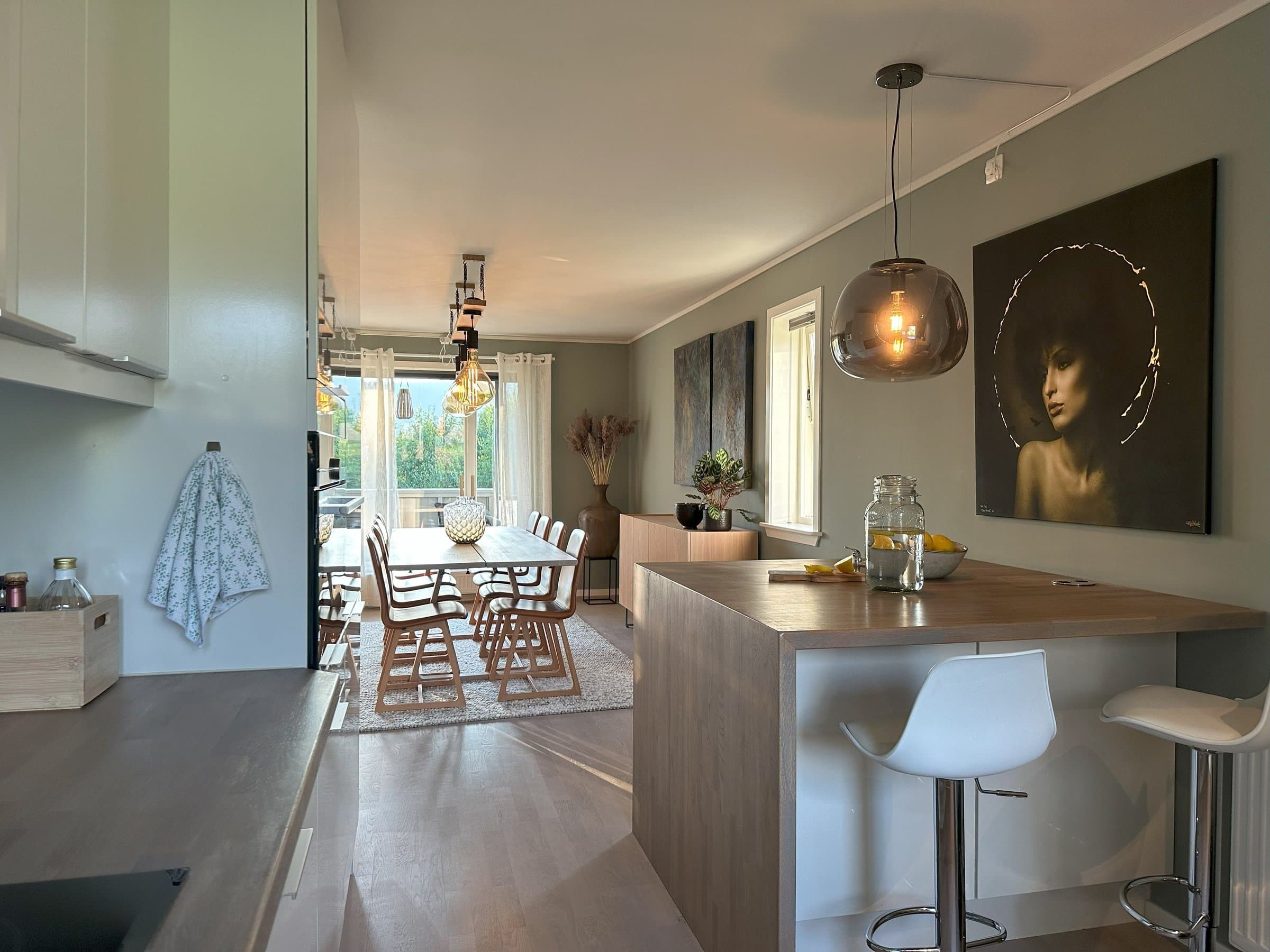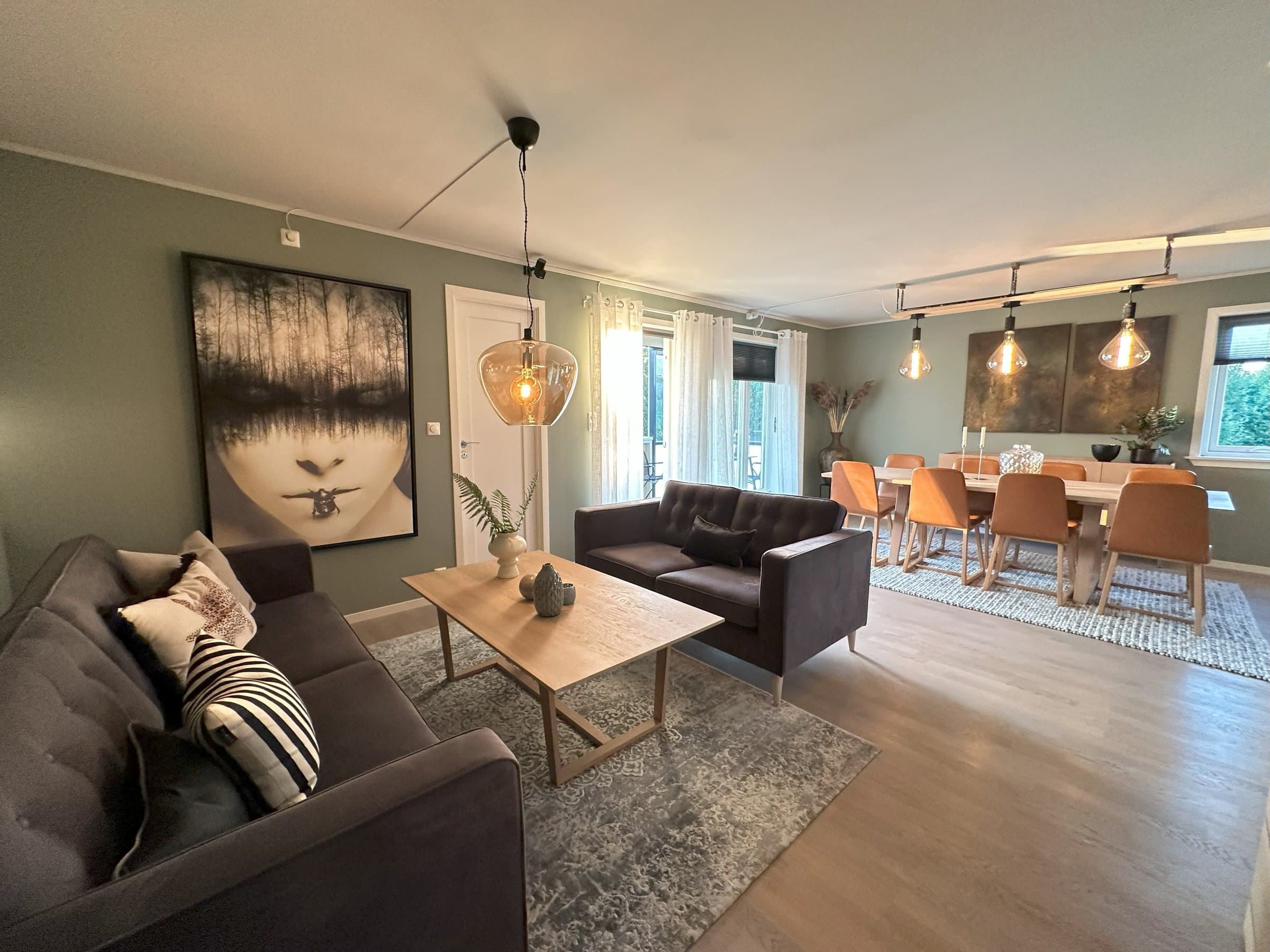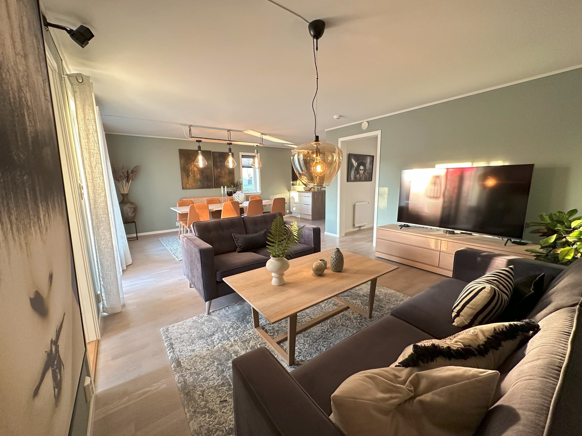 Denne romslige leiligheten ved Kniveåsen i Drammen tilbyr en flott planløsning, komfortabel og moderne boopplevelse. Med 132 kvm over to etasjer, vil du finne fasiliteter som balkong, terrasse, carport (1-bil)/+ åpen stor p-plass, kabel-tv, bredbåndstilknytning og ladestasjon for elektriske kjøretøy. Leiligheten er barnevennlig med stort felles uteområde/hage, perfekt for å nyte utendørsområdet. Parkettgulv i alle oppholdsrom, flisbelagte bad og vaskerom. I tillegg har du tilgang til et flott turterreng, sommer som vinter, rett utenfor døren. Med en generell høy standard og en rekke praktiske fasiliteter, vil denne leiligheten kunne være et ideelt hjem for deg og familien din.