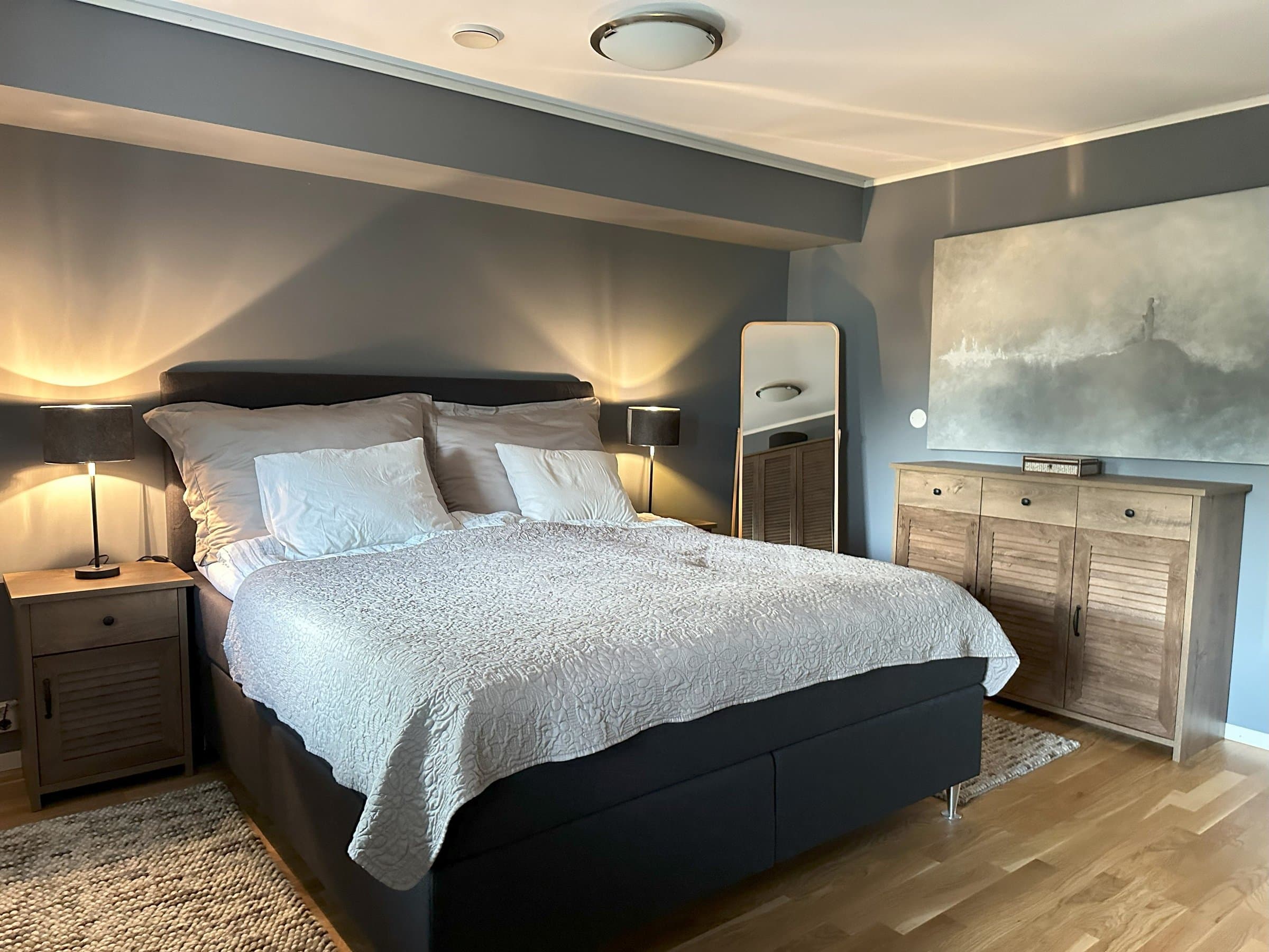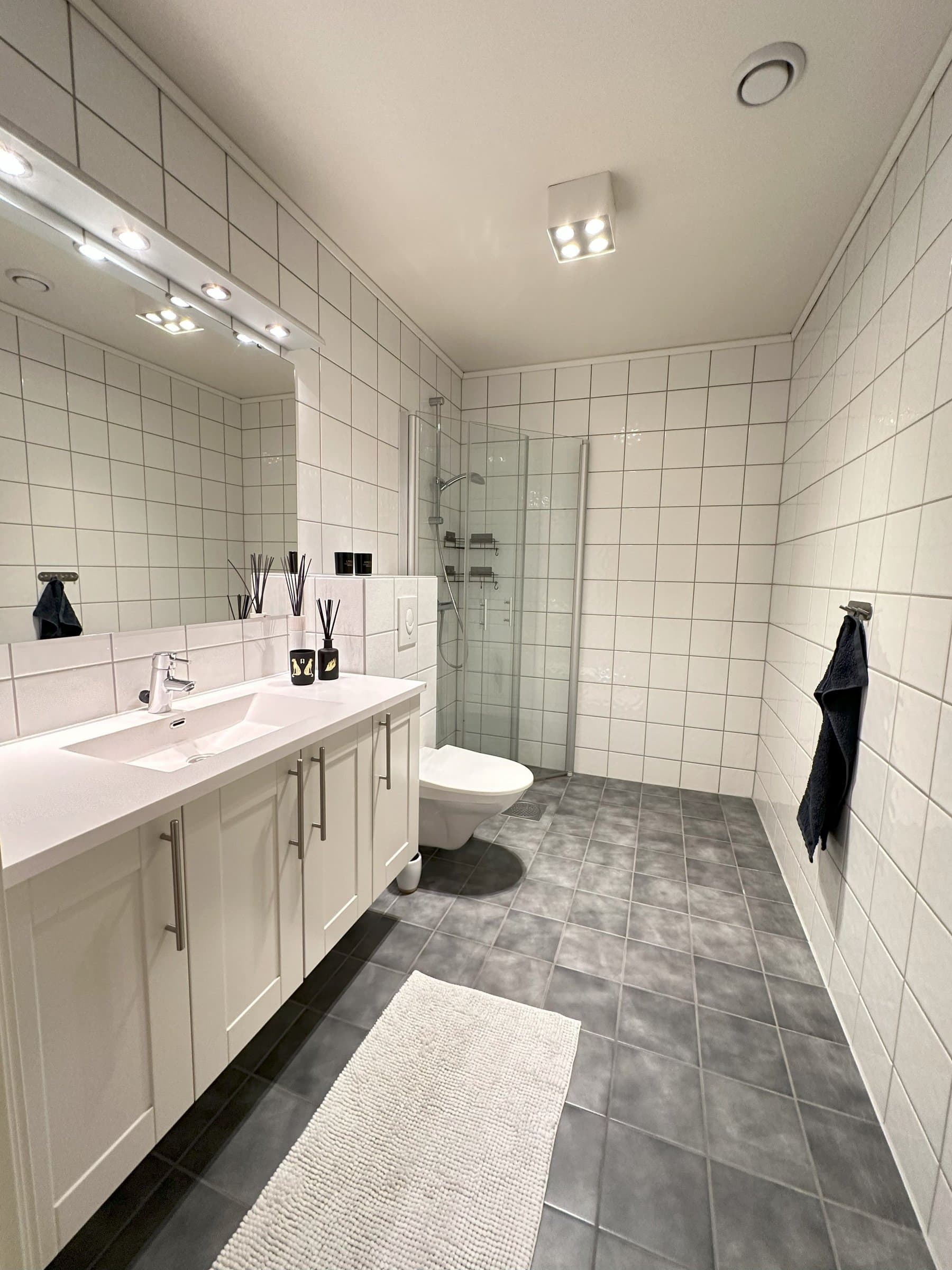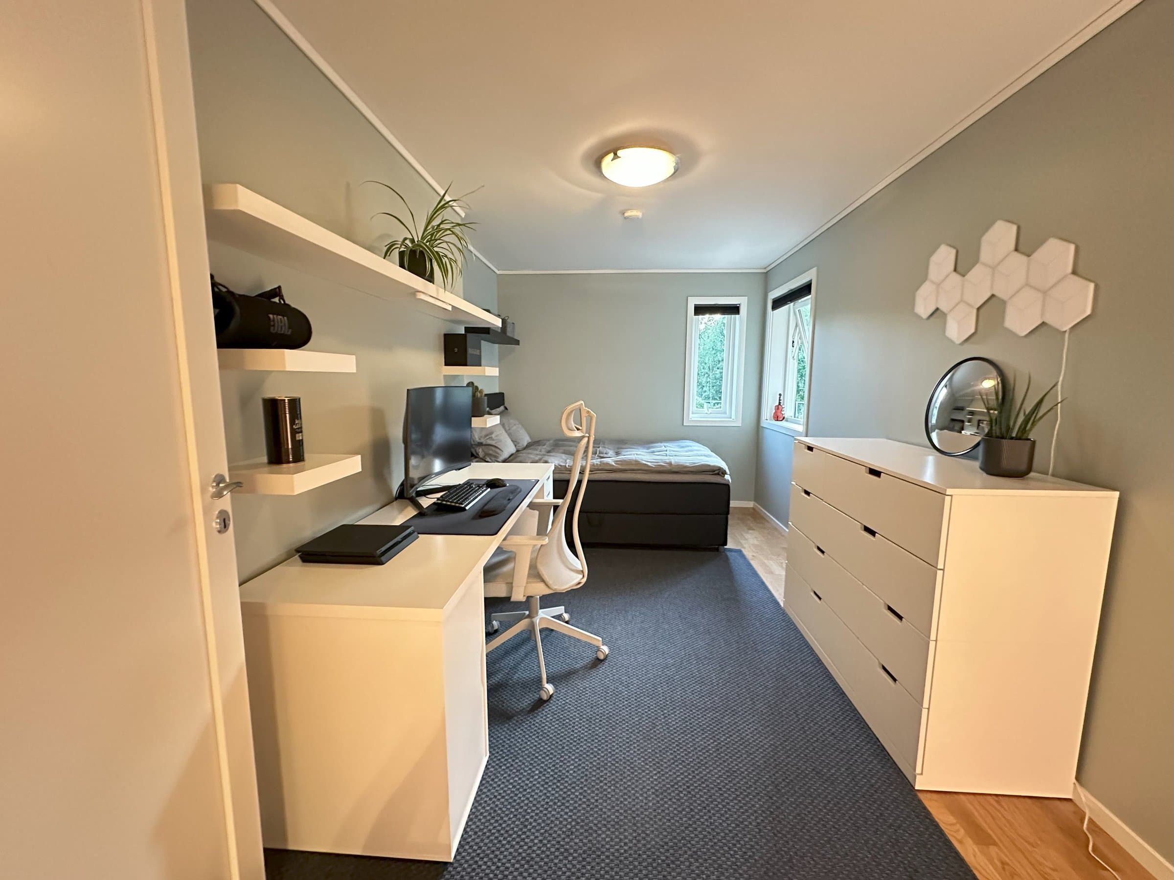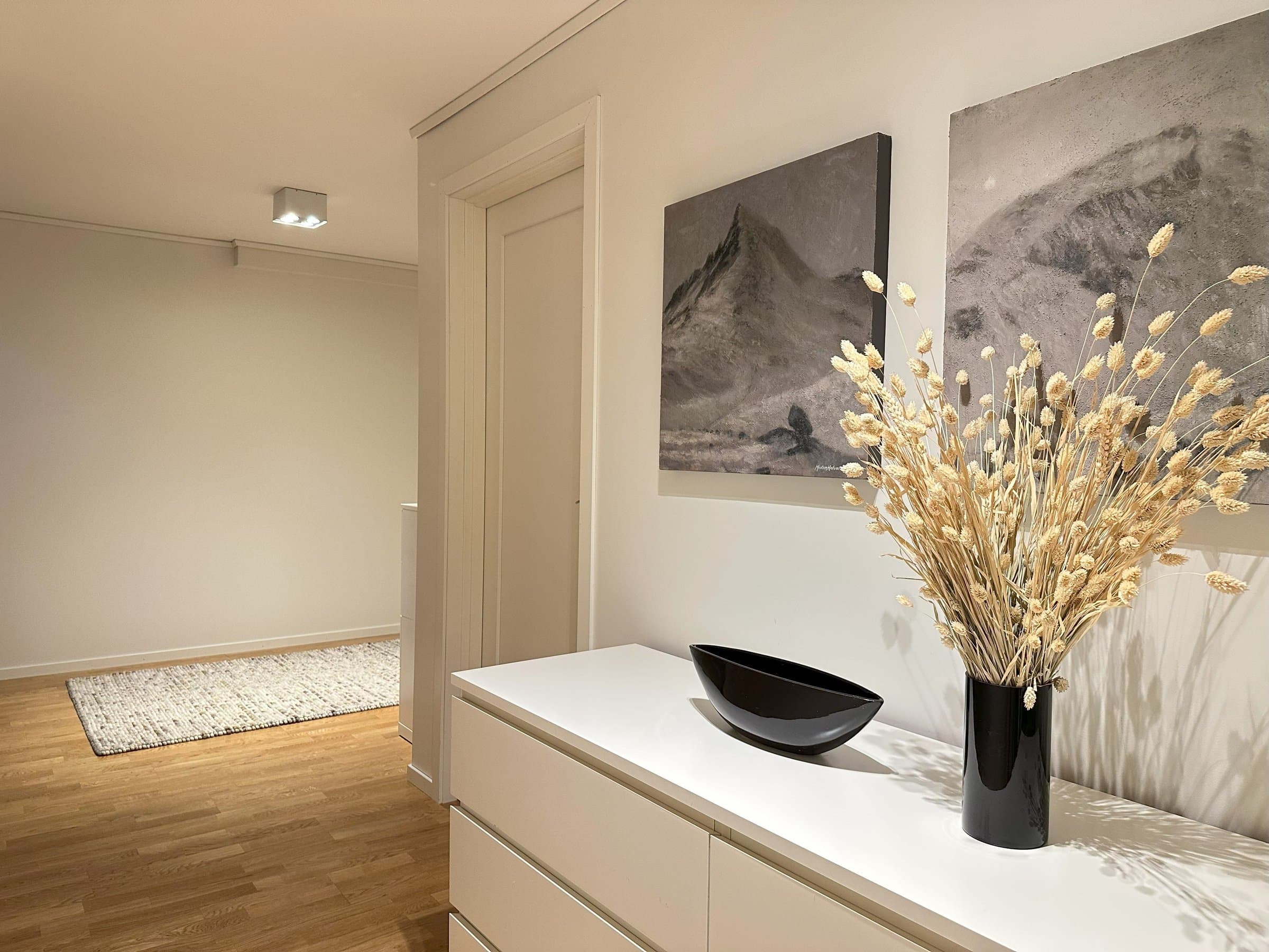 Denne romslige leiligheten ved Kniveåsen i Drammen tilbyr en flott planløsning, komfortabel og moderne boopplevelse. Med 132 kvm over to etasjer, vil du finne fasiliteter som balkong, terrasse, carport (1-bil)/+ åpen stor p-plass, kabel-tv, bredbåndstilknytning og ladestasjon for elektriske kjøretøy. Leiligheten er barnevennlig med stort felles uteområde/hage, perfekt for å nyte utendørsområdet. Parkettgulv i alle oppholdsrom, flisbelagte bad og vaskerom. I tillegg har du tilgang til et flott turterreng, sommer som vinter, rett utenfor døren. Med en generell høy standard og en rekke praktiske fasiliteter, vil denne leiligheten kunne være et ideelt hjem for deg og familien din.