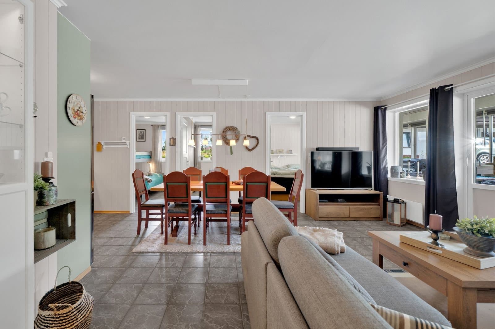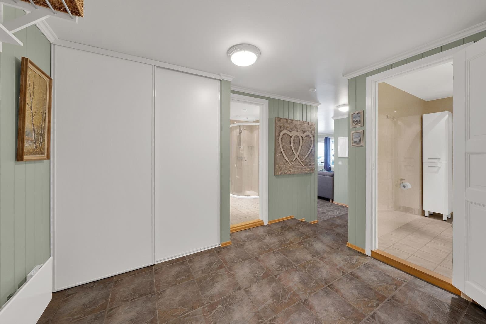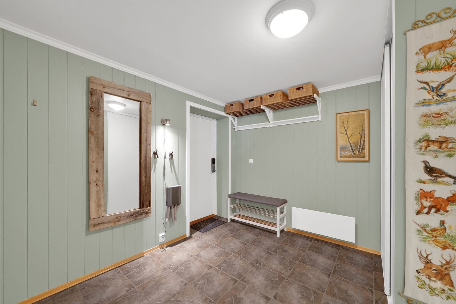 Din nye fritidsbolig - rom for rom: Romslig entre/Hall. Leiligheten har et hyggelig inngangsparti som gir et godt første inntrykk. Entreen er malt i en dempet, gyllen grønntone og har pene mørke fliser på gulv. Her har du god plass til å henge fra deg yttertøyet og sko i skyvedørs-garderoben. Stue: Stuen er boligens sosiale samlingspunkt. Stuen ligger i delvis åpen løsning mot kjøkkenet som gir en god romfølelse og er også malt i en dempet, gyllen grønntone. Du kan enkelt dele inn stuen i flere soner etter eget ønske. Det er god plass til sofa og spisebord, slik at hele familien kan samles til hyggelige sammenkomster. Vindusflatene gir godt med lysinnslipp. Fra stuen er det direkte utgang til innglasset terasse på ca. 24 kvm og en overbygget terasse på ca 21 kvm. Kjøkken: Kjøkkenet er lyst og pent med naturlig spiseplass mot stuen. Innredningen består laminerte plater malt i en dempet, gyllen grønntone med skufferekke og over- og underskap. Benkeplate i laminat med nedfelt oppvaskkum. Vegg over kjøkkenbenk er flisbelagt. Hvitevarene som medfølger med salg består av stekeovn med platetopp/induksjon, oppvaskmaskin samt kjøl/frys skap. Baderom: Leiligheten har to baderom, som er flisebelagt i lyse farger. Begge bad har klosett, dusjhjørne med høyskap og over og underskap med tilhørende speiler. På begge bad er det også nedfelte downlights som gir et moderne uttrykk. Soverom: Det er totalt tre gode soverom med vindu i leiligheten. 2 av soverommene har familiekøyer, mens et soverom har mulighet til å sette inn king size seng. Soverommene med familiekøyer er skapene utstyrt med hyller og delvis trådkurver. På soverom med king size seng er det skyvedørs-garderobe med 24 trådkurver som går fra gulv til tak. Innvendige overflater: Gulv: Oppholdsrom, entre og bad har fliser. Vegger: Malte panelplater og badene har fliser. Himling: Malt overflate. Hva ellers gjelder det tekniske om boligen og eiendommen generelt, henvises til tilstandsrapport og egenerklæringsskjema som er vedlagt. Det forutsettes at kjøper gjør seg kjent med disse før budgivning/kjøp. Innhold: Planløsning: Første etasje: Entre, stue/kjøkken, to bad, 3 soverom og en innglasset terasse. Leiligheten disponerer egen bod i felles trappeoppgang, se plantegning og seksjonspapirer. Oppvarming: Varmekabler i badene og forøvrig app.styrte termostatstyrte panelovner. Energikarakter: C Energifarge: Rød