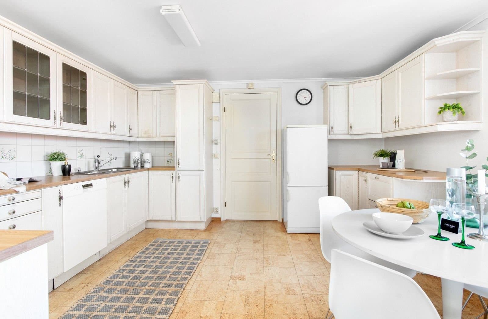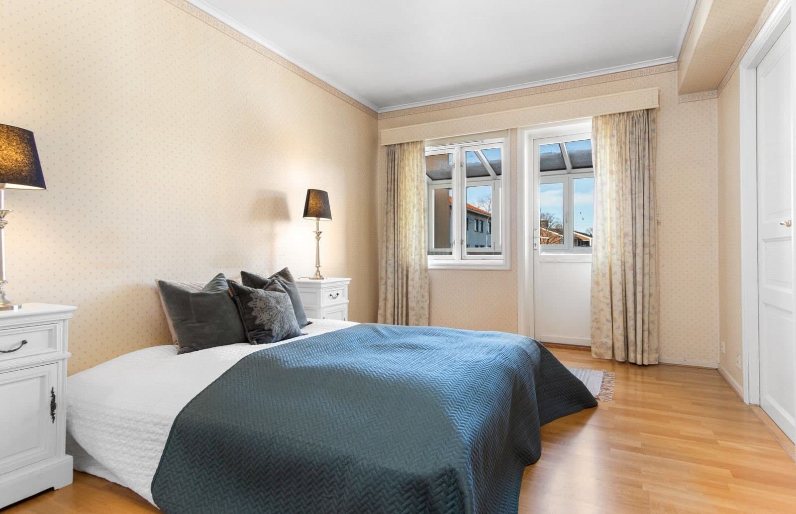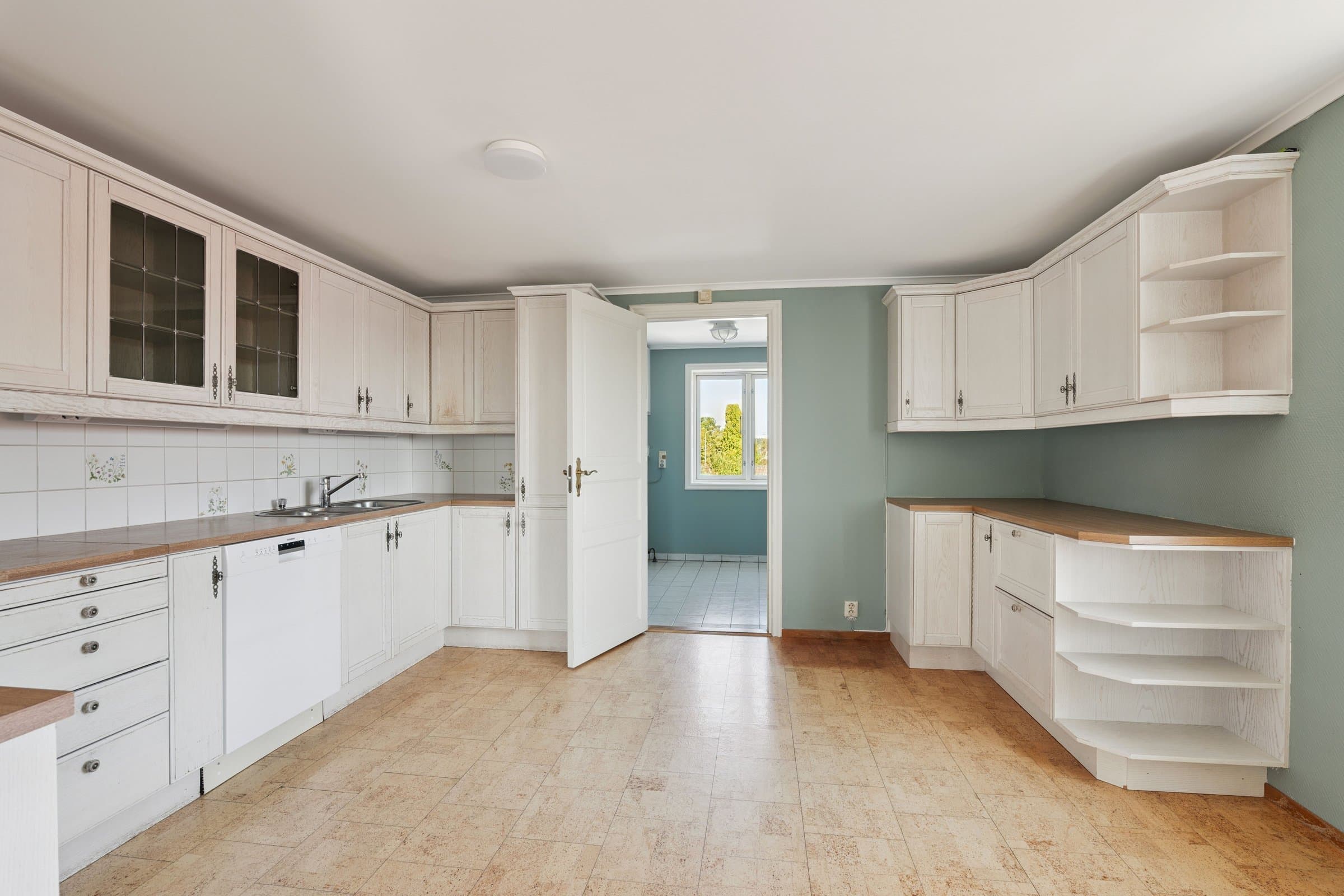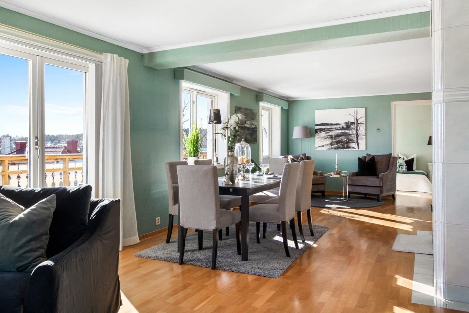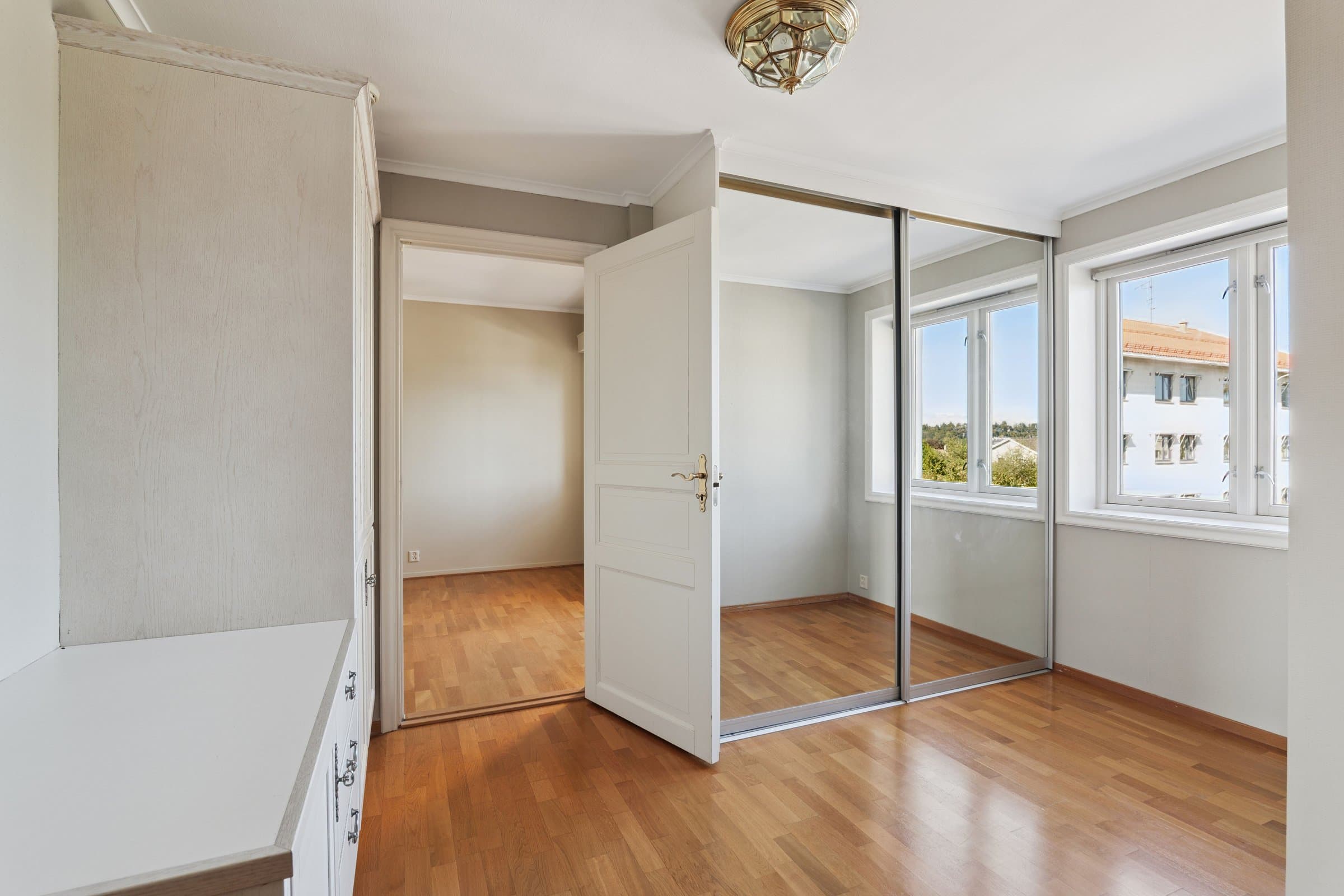 Stor og lys leilighet på Træleborg – 144 kvm med sjøutsikt, to garasjeplasser i egen garasje og med gode utviklingsmuligheter. Velkommen til en romslig og gjennomgående leilighet på hele 144 kvm, som ligger i 2. etasje i et veletablert og rolig villastrøk på attraktive Træleborg. Her bor du fredelig og tilbaketrukket, samtidig som du har gangavstand til Tønsberg sentrum og alt Norges eldste by har å by på. Leiligheten har en sjeldent stor, åpen og luftig planløsning med mange vindusflater som gir rikelig med dagslys og sol fra morgen til kveld. Det er ikke ofte man kommer over en bolig på denne størrelsen på ett plan, sentralt i Tønsberg. Stuen er svært romslig og med mange muligheter for møblering. Balkongen på 16 kvm er solrik fra tidlig morgen til ettermiddagen, med god plass for møbler og planter. Det er to garasjeplasser i egen frittstående garasje, og i tillegg mulighet for å parkere på fellesområde for bygningen. Både vaskerom og romslig kjølerom gjør hverdagen enklere. Leiligheten inneholder: • Tre romslige soverom • To bad • Eget vaskerom og kjølerom • Kjøkken med plass til spiseplass • Stor stue med plass til spisestue og stuemøblement • Stor peis • Gjennomgående lys og god romfølelse • Stor sørvendt balkong på 16kvm med sjøutsikt • To innglassede balkonger • To garasjeplasser i egen dobbelgarasje- 32m2 • Boder i kjeller – 20kvm • Eget lagringsloft i leiligheten