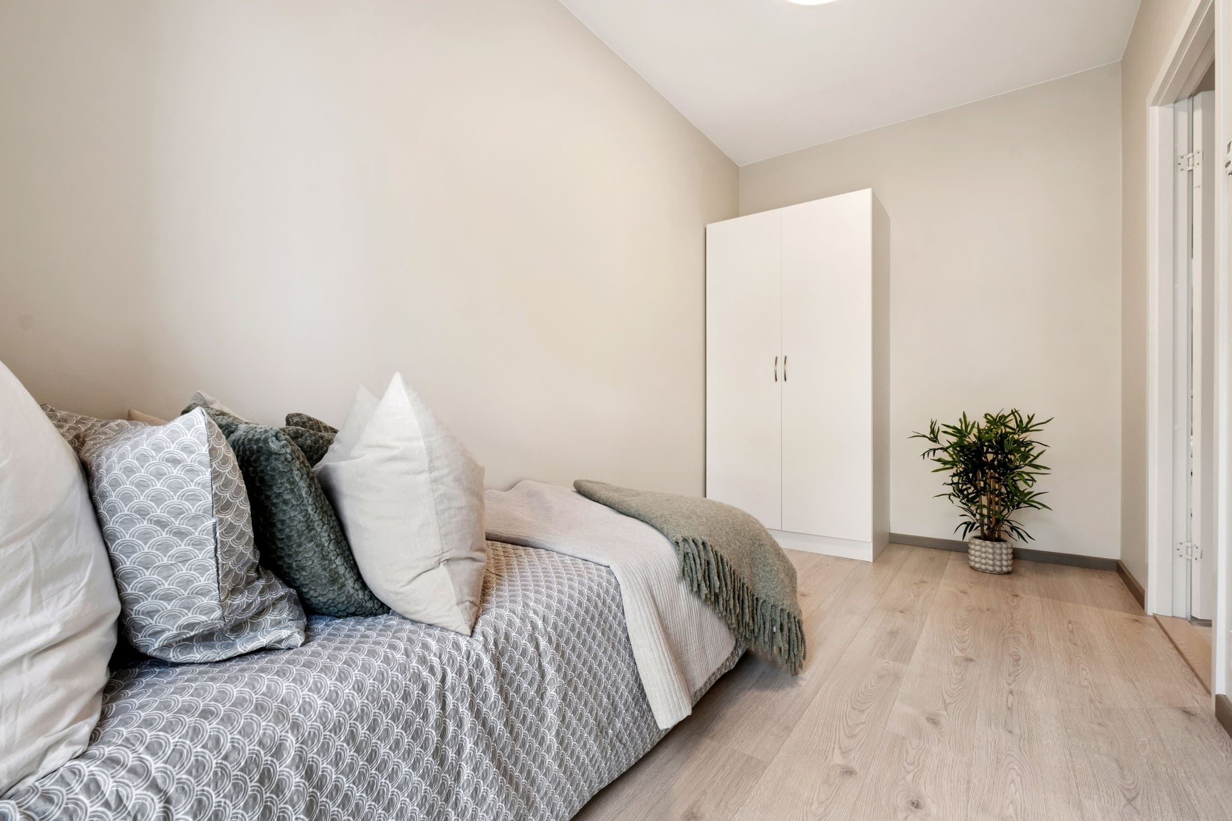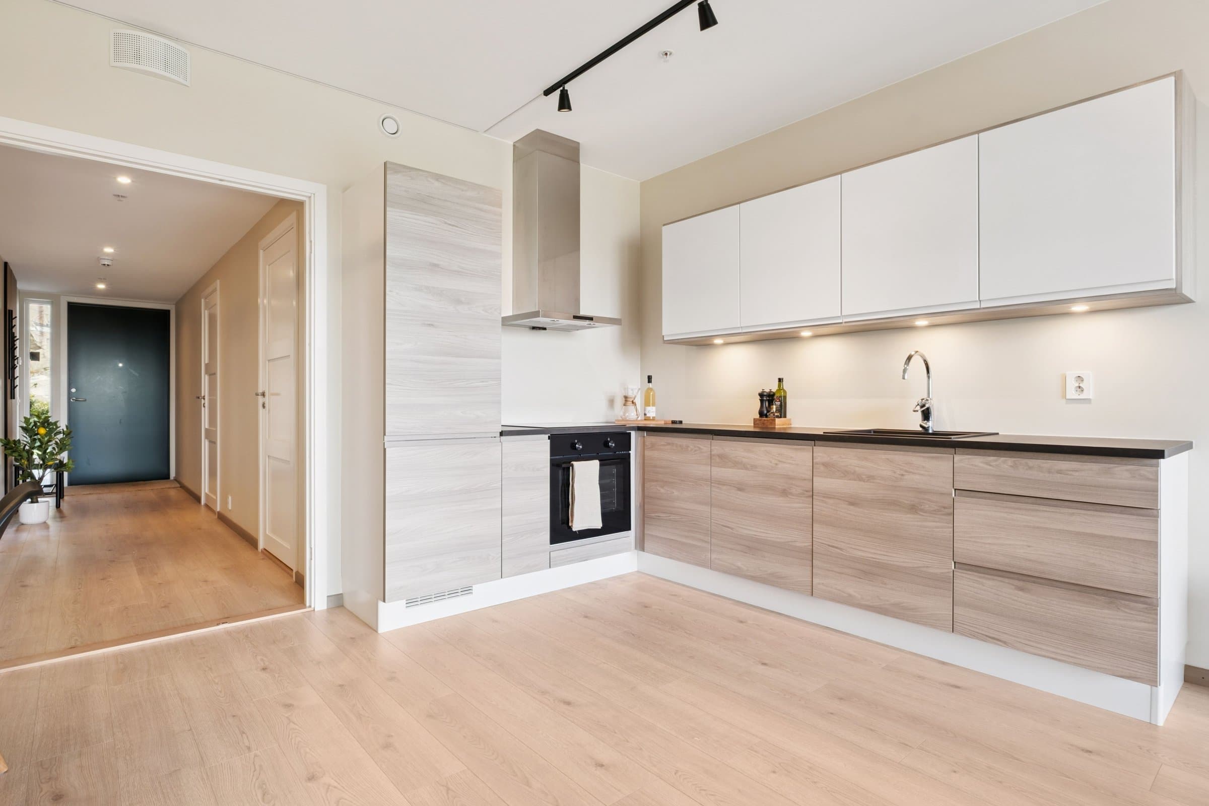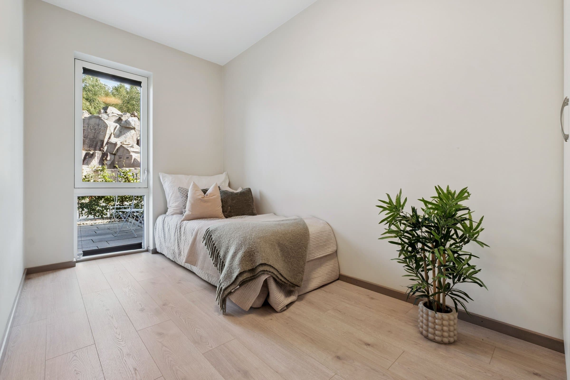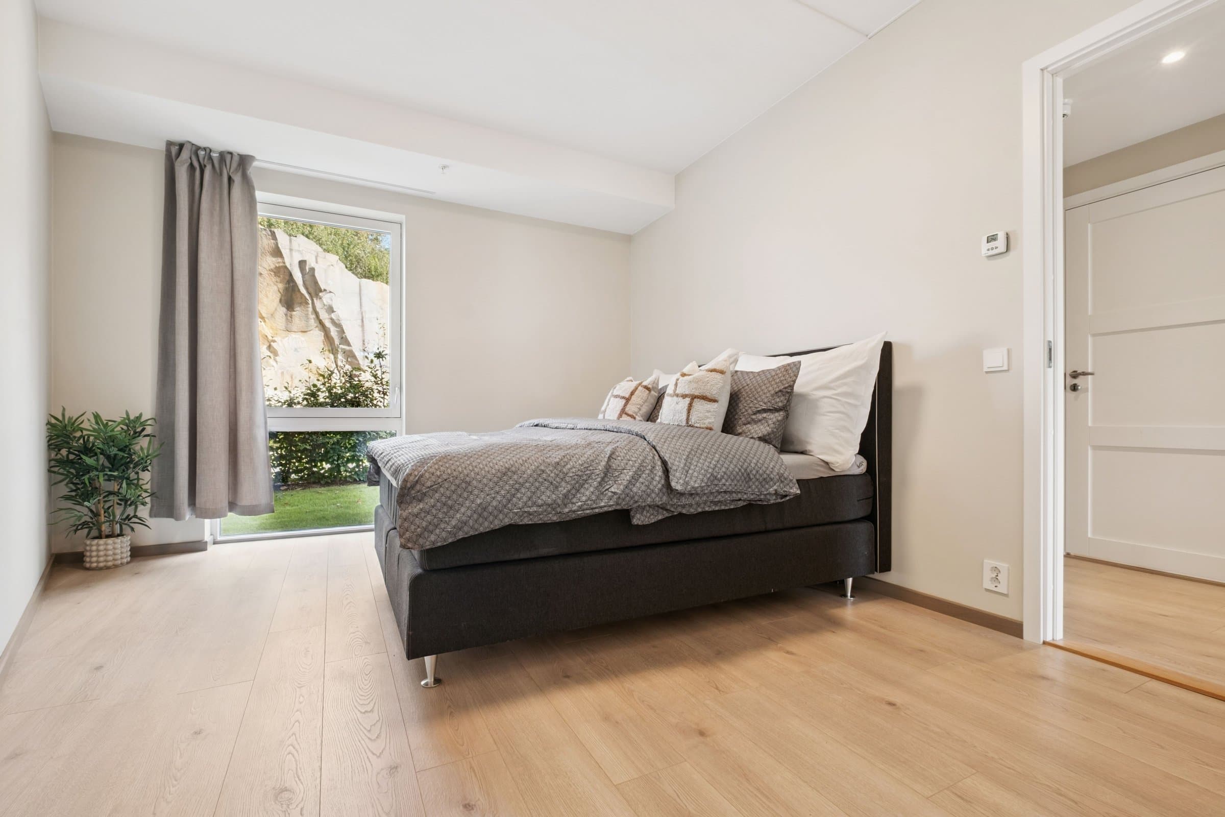 Leiligheten ble oppført i 2023 og fremstår som moderne, stilren og lettstelt. Med en god planløsning over 70 kvm får du en lys og luftig bolig med store vindusflater og behagelig takhøyde. Kjøkkenet fra Strai har integrerte hvitevarer og ligger i åpen løsning mot stuen, som har direkte utgang til en solrik terrasse. Leiligheten inneholder entré med garderobeplass, romslig bad med dusj og opplegg for vaskemaskin, soverom med garderobe, samt innvendig bod med praktisk lagringsplass. Gjennomgående moderne materialvalg og et lavt behov for vedlikehold gjør dette til en svært innbydende bolig. Det ble gravd etter bergvarme når prosjektet ble etablert, så leiligheten har vannbåren gulvvarme i alle rom.