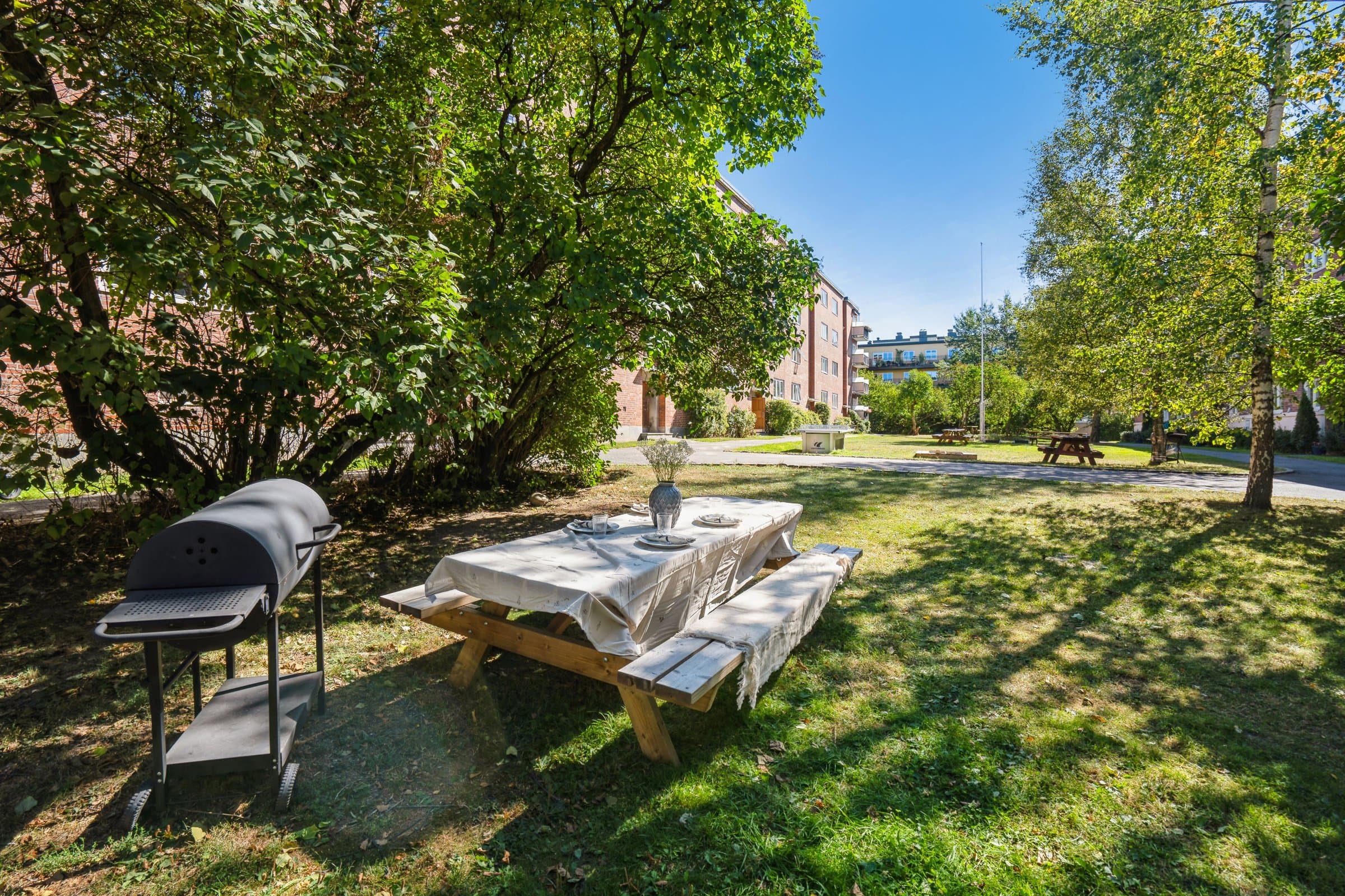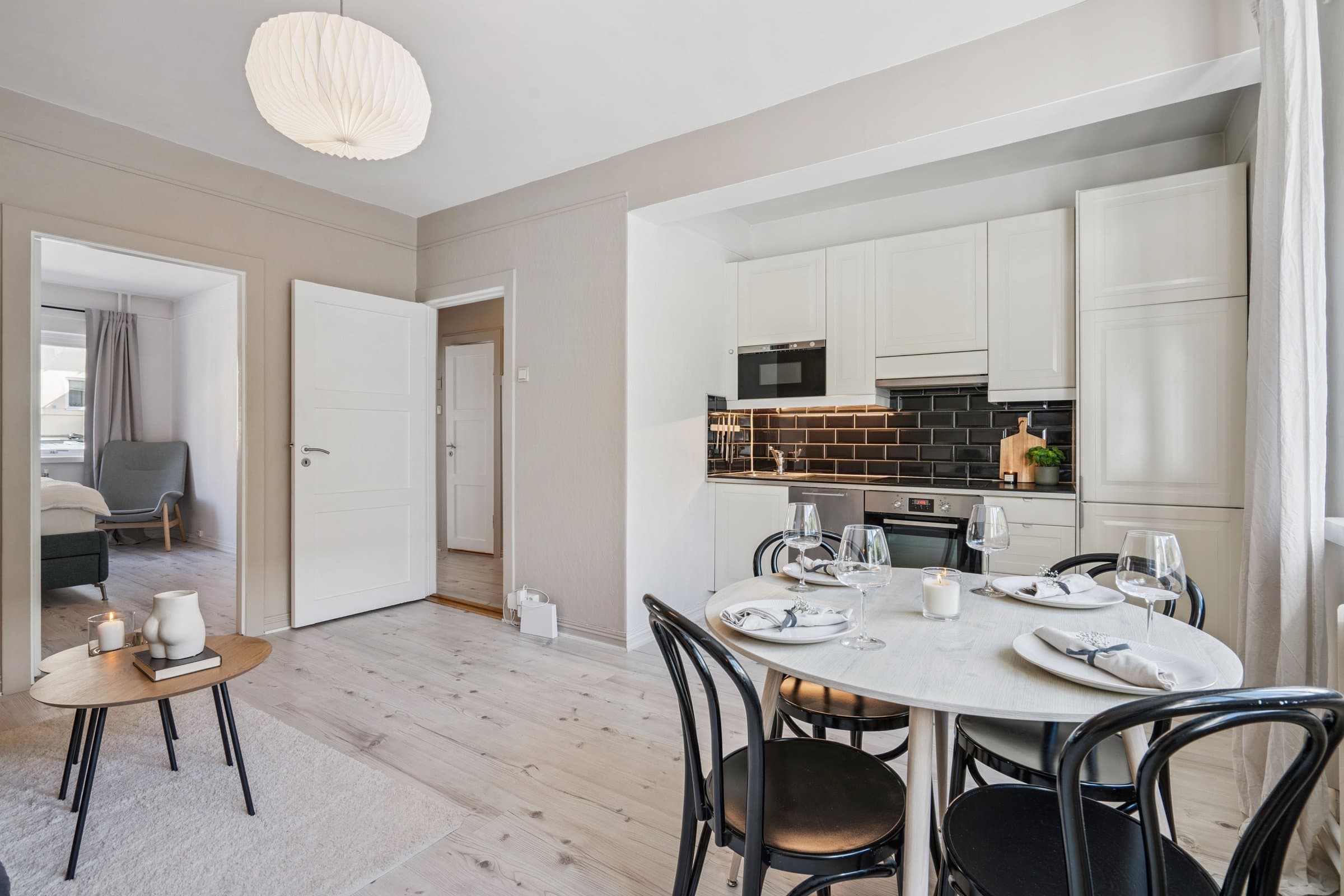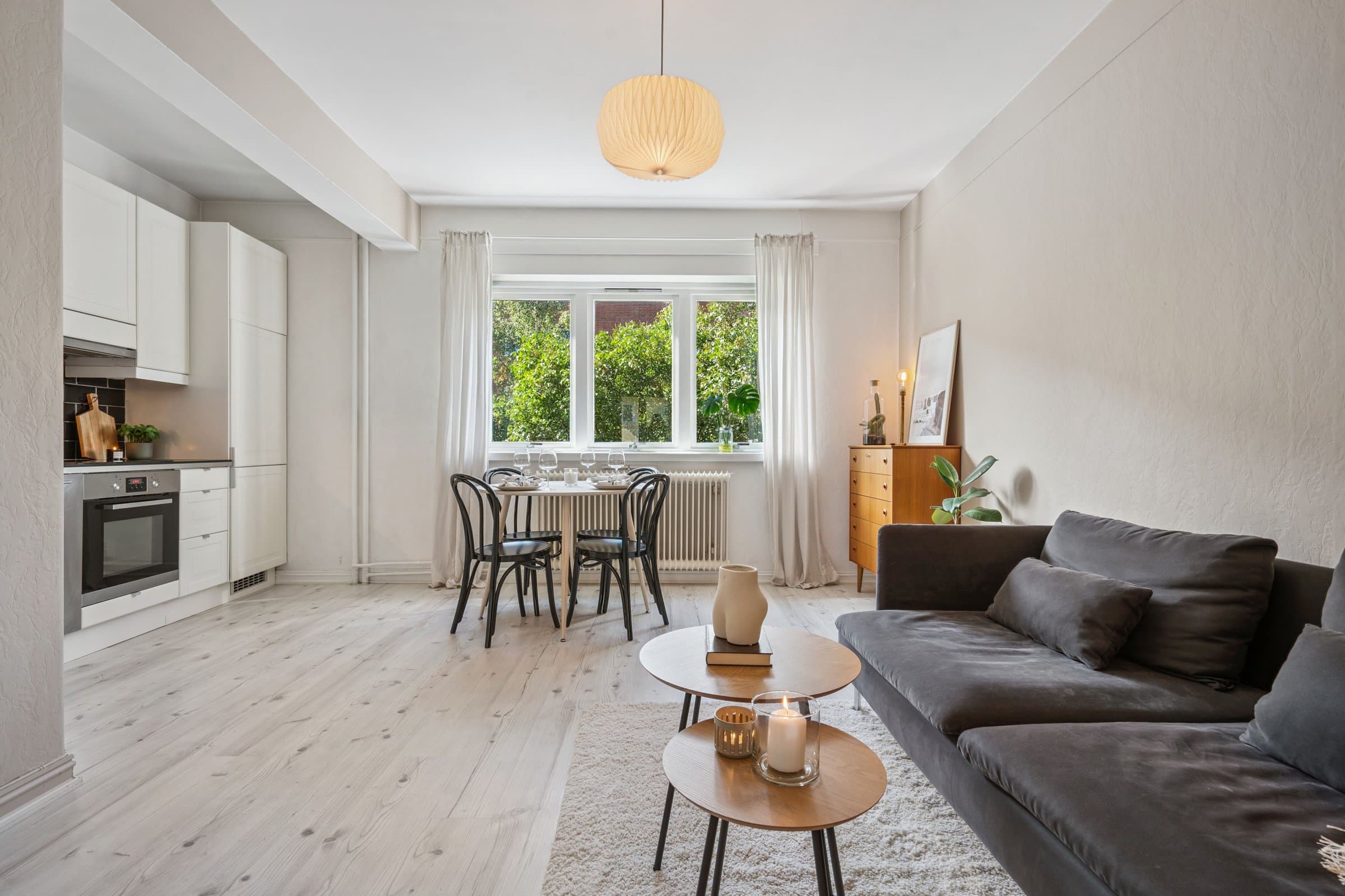Velkommen til en lys og sjarmerende leilighet med attraktiv beliggenhet på populære Sinsenterrassen – rett ved vakre Torshovdalen park. Dette er en gjennomgående 3-roms selveierleilighet på 51 kvm. Leiligheten ligger i en høy 1. etasje og har en god planløsning med entré, bad, stue, kjøkken og to soverom. Leiligheten er holdt i en lys og moderne stil med gjennomgående gode lysforhold takket være store vindusflater. Kjøkkenet er fullt utstyrt med integrerte hvitevarer og har både spiseplass og utsikt mot grønne fellesarealer. Badet er pent flislagt og har opplegg for vaskemaskin. Hovedsoverommet har god plass til dobbeltseng og garderobeskap, mens soverom nummer to egner seg perfekt som barnerom, kontor eller gjesterom. Leiligheten har også en tilhørende bod på 6 kvm i kjeller. Sameiet har et hyggelig og velholdt fellesområde med tilgang til flotte fellesarealer med fasiliteter som kullgrill, sandkasse og bordtennisbord – perfekt for både hverdag og sosiale sammenkomster. Det er også mulighet for leie av egen parkeringsplass til 600,- i måneden. Her bor du i et etablert og rolig nabolag med trygge fellesløsninger.