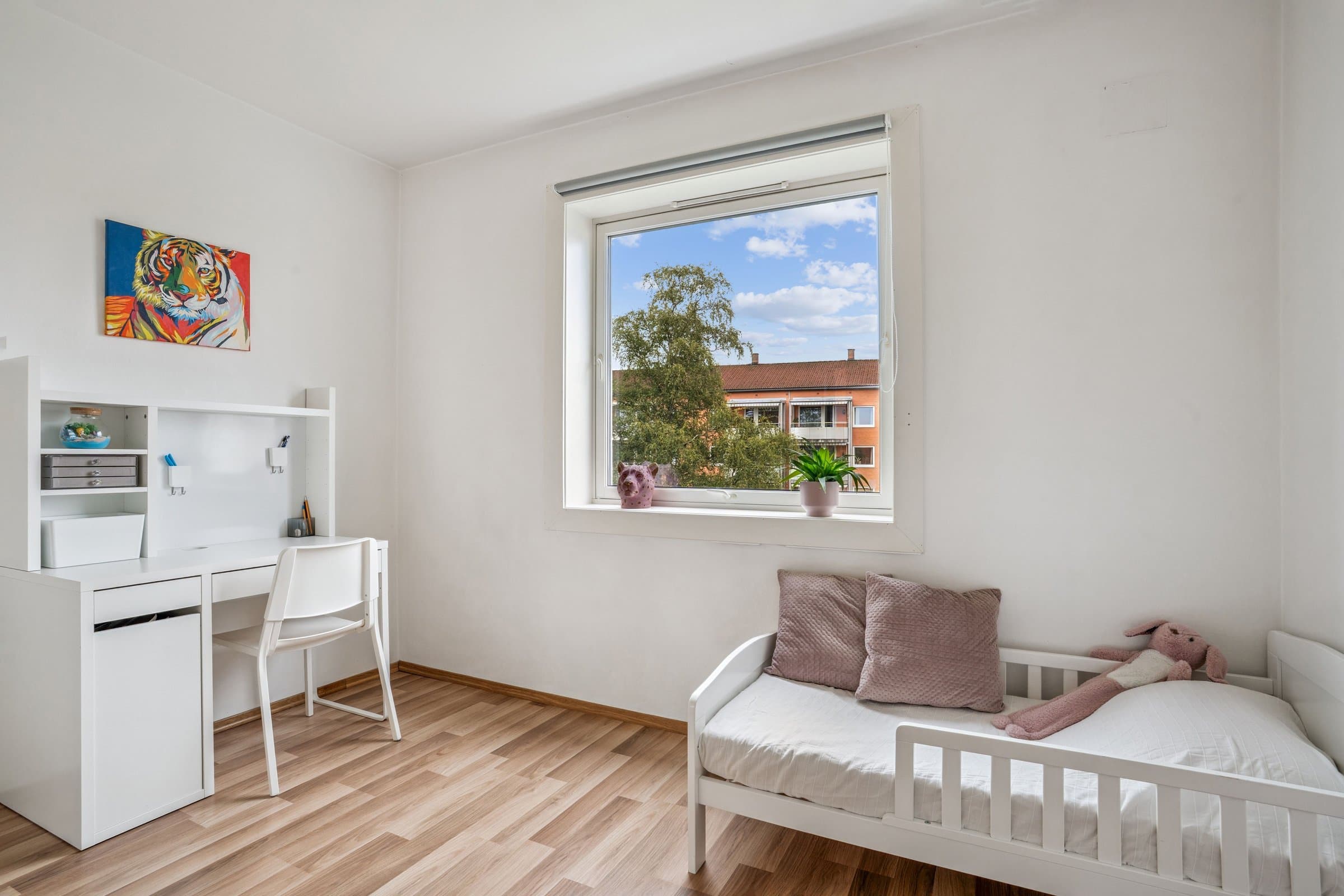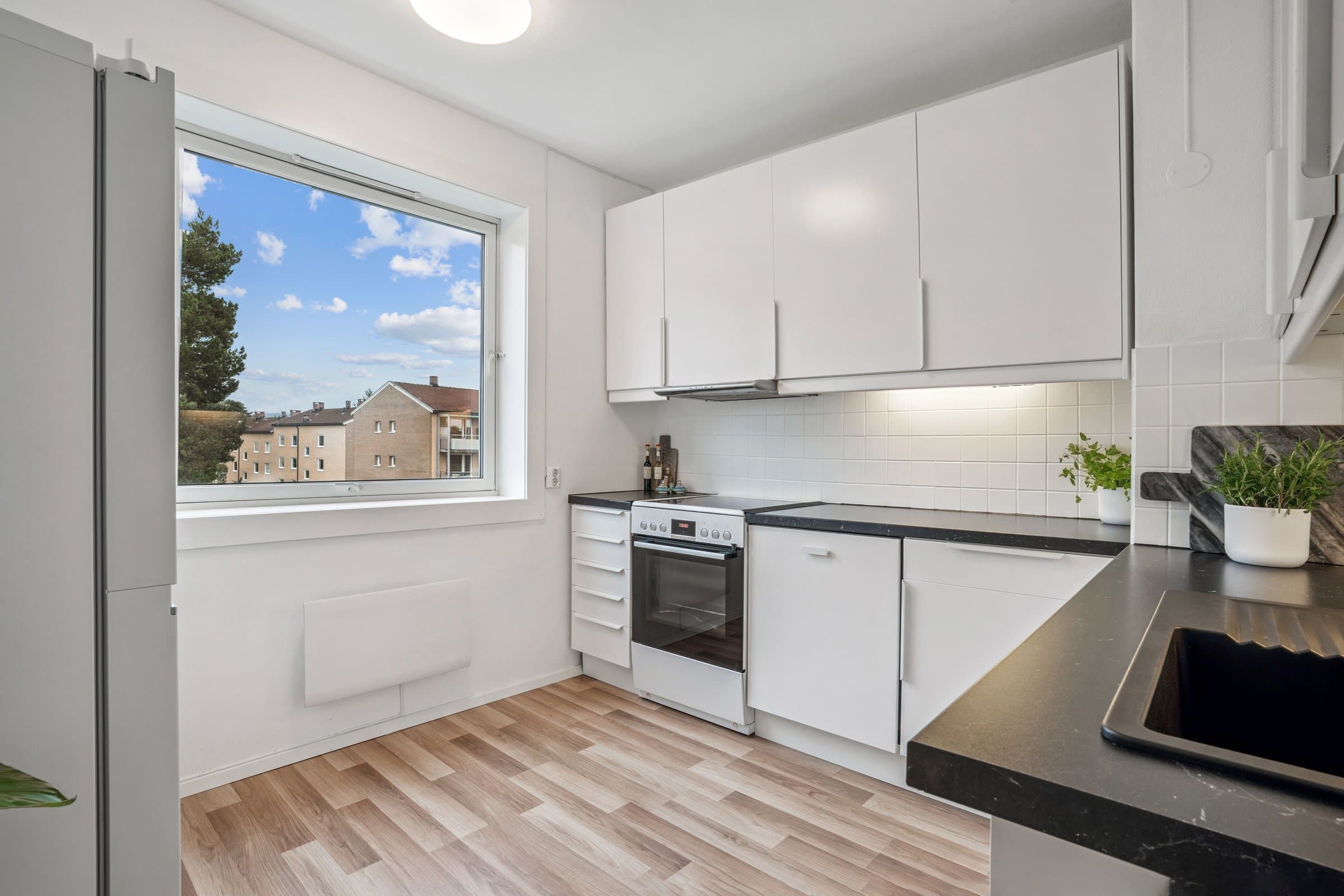 Gjennomgående 3-roms hjørneleilighet i 4. etasje. Kjøkken pusset opp i 2024 og leiligheten består av: entré, bad, stue og to soverom. Vestvendt balkong med ettermiddagssol. Hyggelig nabolag og kort vei til kollektivtransport, matbutikker, kafeer og annet. 3 boder, hvorav en bod ligger i 5. etasje med en størrelse på 14m²