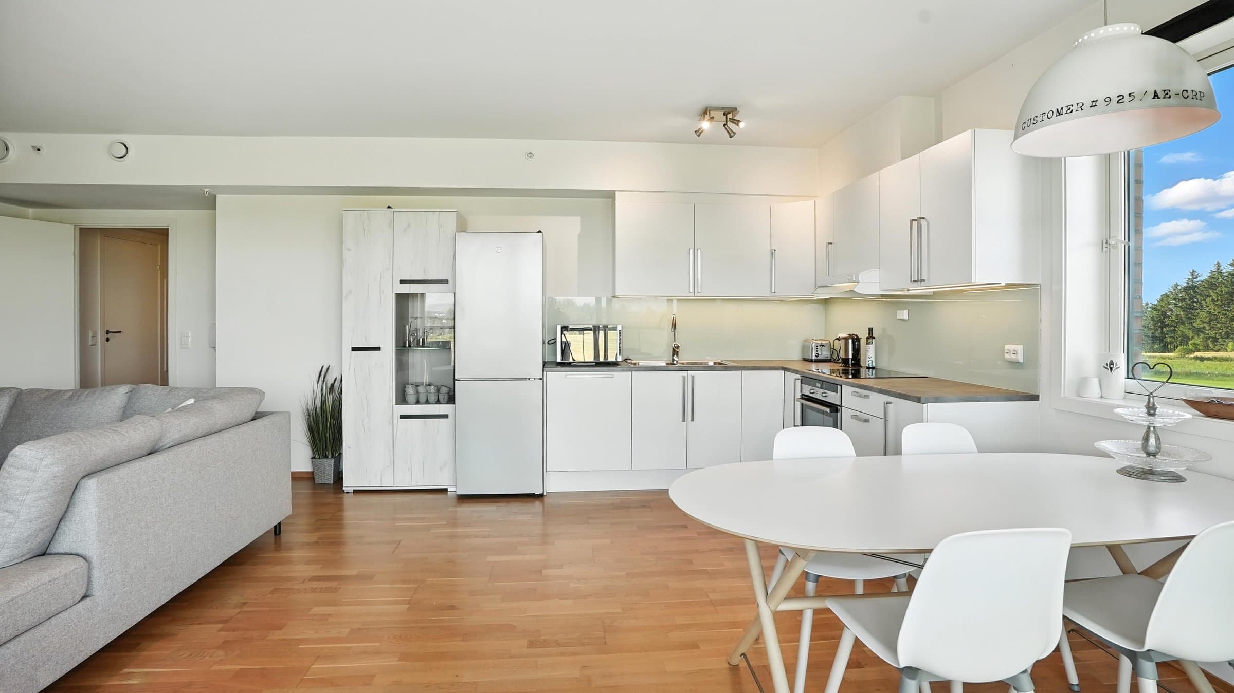 Moderne 2-roms endeleilighet uten gjenboere i 3. etasje. Flott utsikt over mark og skog. Felles parkering m/bod.