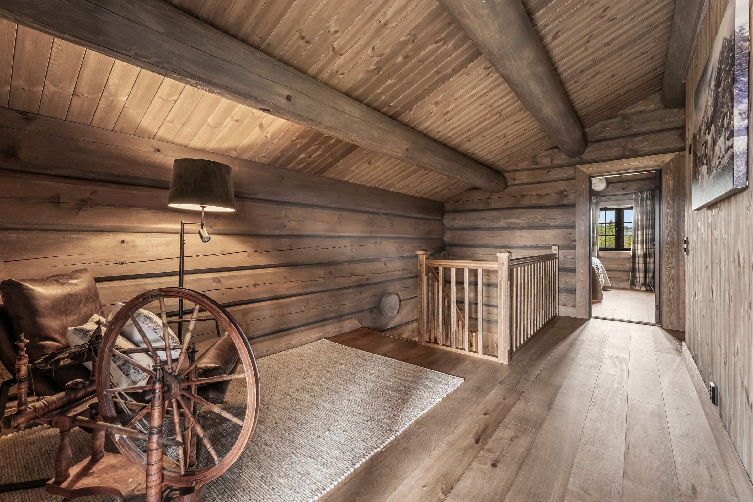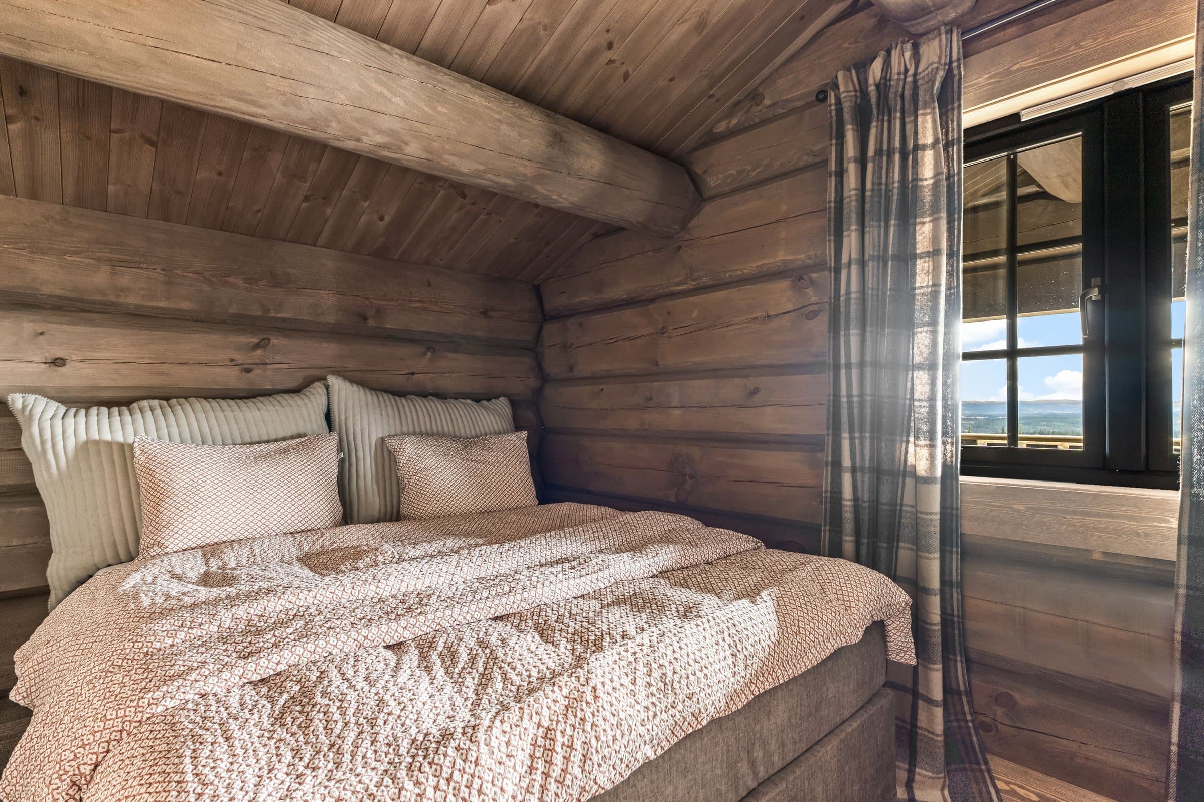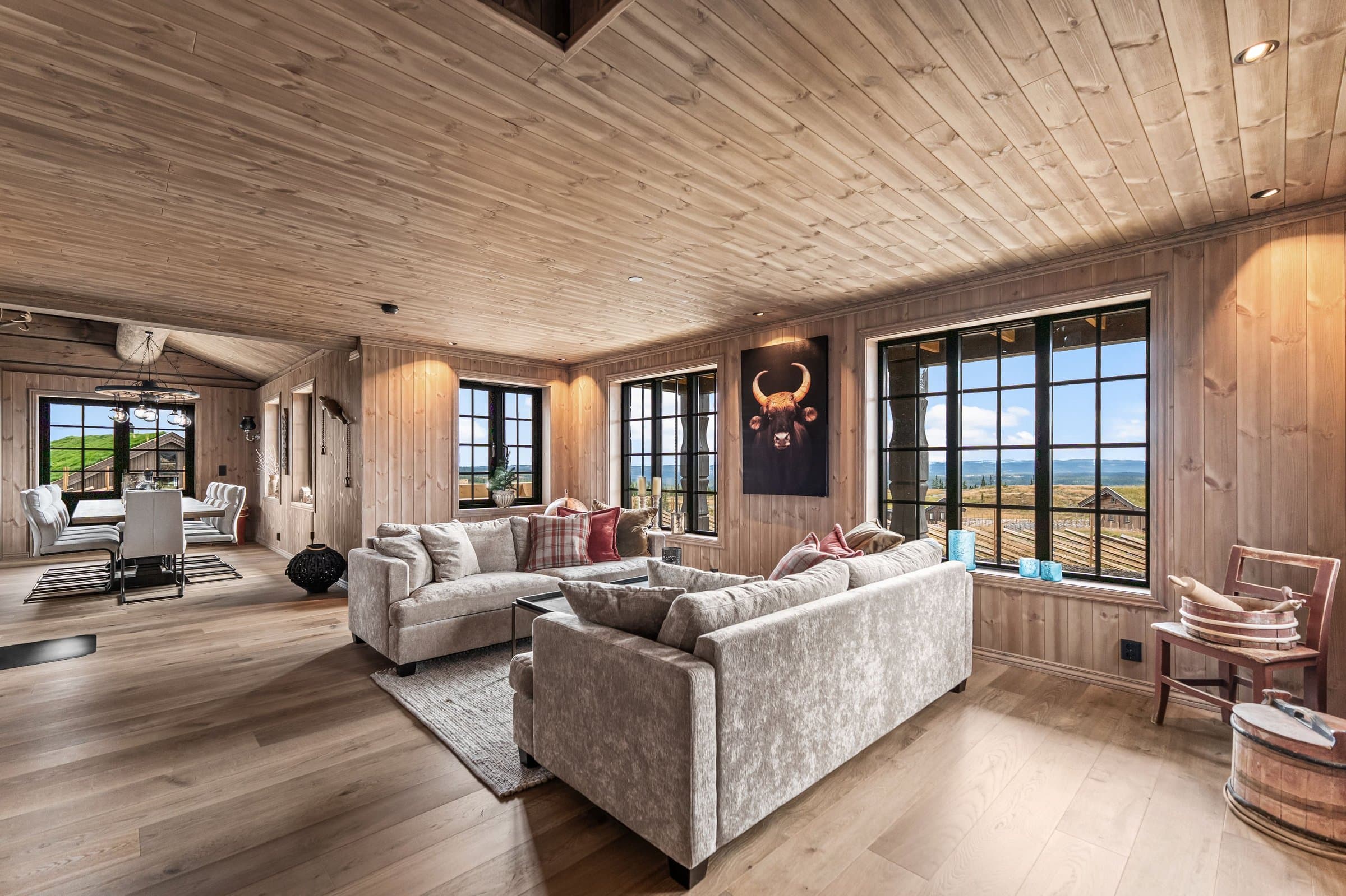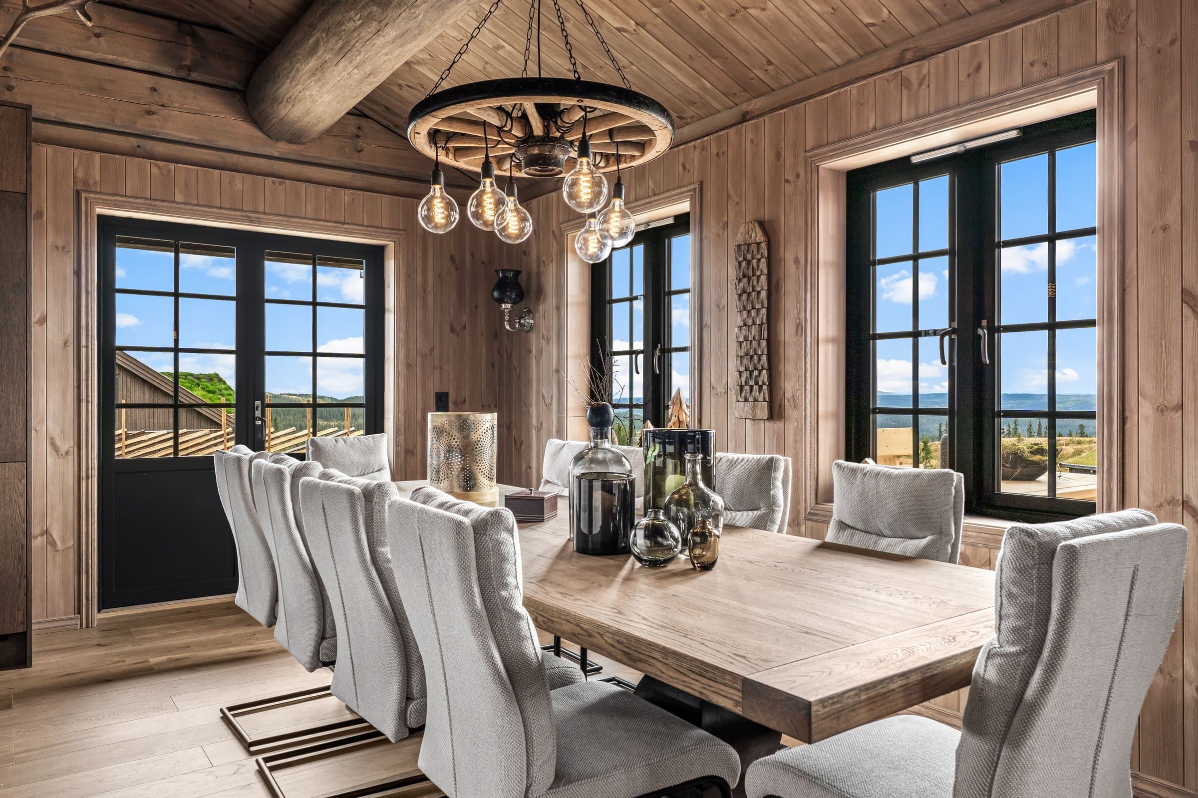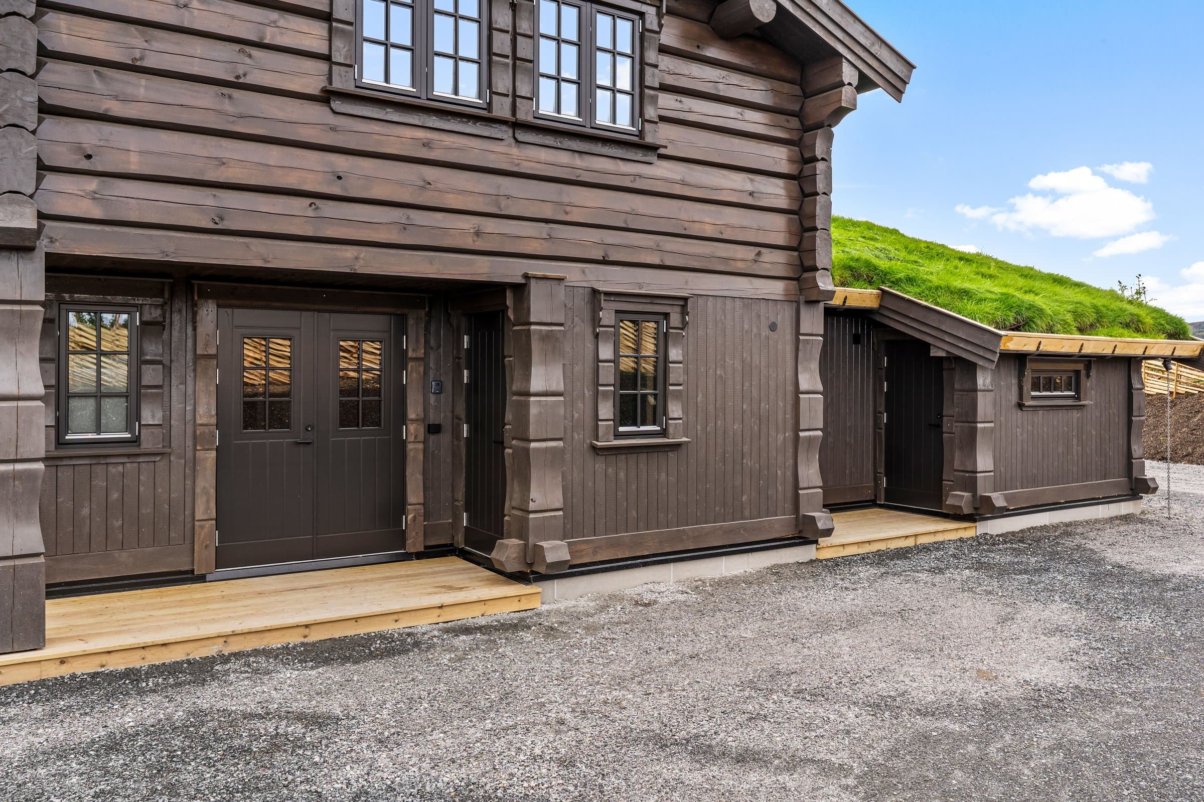 Eksklusiv hytte i håndlaftet stil med 8" tømmer i andre etasje og stavlaft i første etasje, som gir en unik blanding av tradisjon og moderne uttrykk. Hytta har 5 soverom og 3 bad, hvorav to soverom i første etasje har en-suite bad. Det er også et kombinert gjestetoalett og vaskerom. I andre etasje er det tre soverom og ett bad, samt bod og loftsstue med utgang til balkong. Det elegante kjøkkenet har eikefinerte fronter, integrerte hvitevarer og et 2-soners vinskap. Eksklusiv 1-stavs eikeparkett. Massiv eiketrapp til andre etasje. Hytta er utstyrt med energibrønn og vannbåren gulvvarme i hele første etasje, utvendig bod og teknisk rom samt bad i andre etasje, noe som gir god effektivitet og komfort året rundt. Lader for EL. bil, romslig parkeringsareal på egen tomt. Hytta ligger syd/vestvendt, og den store terrassen på 125 m2 inviterer til utendørsliv med solrike dager, grilling og avslapning i naturen. Oppkjørt skiløype 30–40 meter fra baksiden av hytta. Skigard og en stor solid port gir privatliv og trygghet. Hytta selges ferdig møblert, slik at du kan flytte rett inn og nyte en eksklusiv hytte av høy kvalitet og gjennomtenkte detaljer.