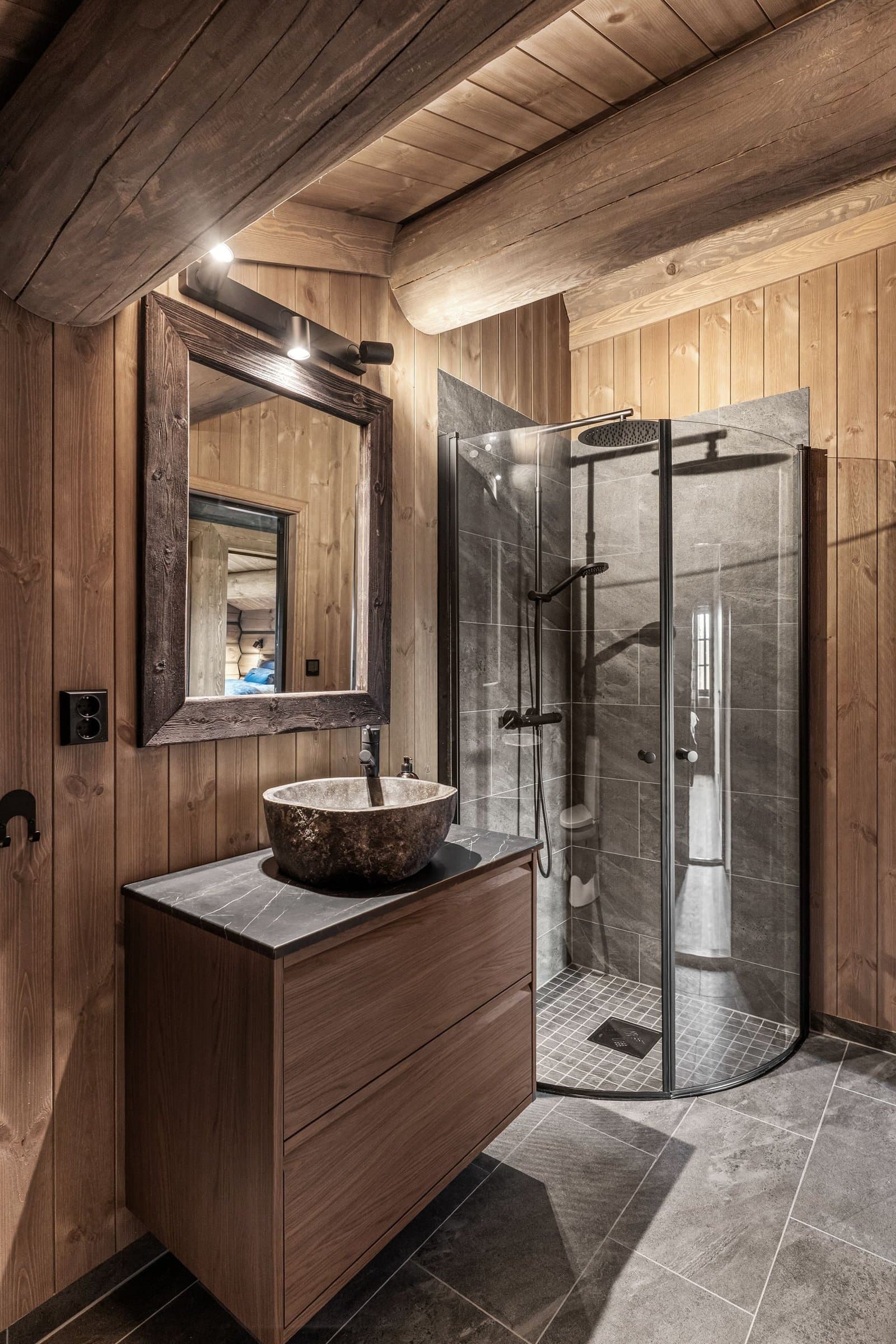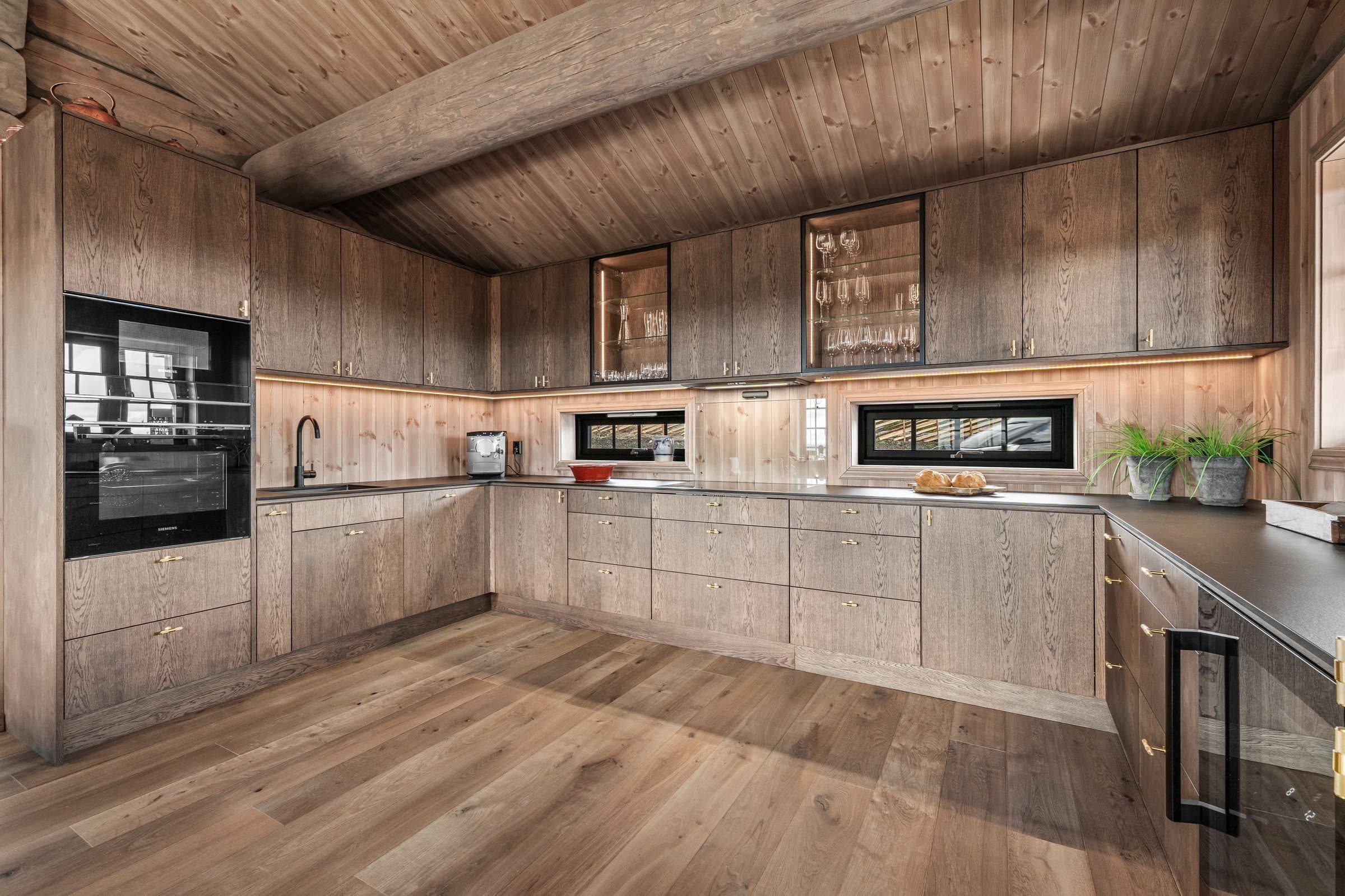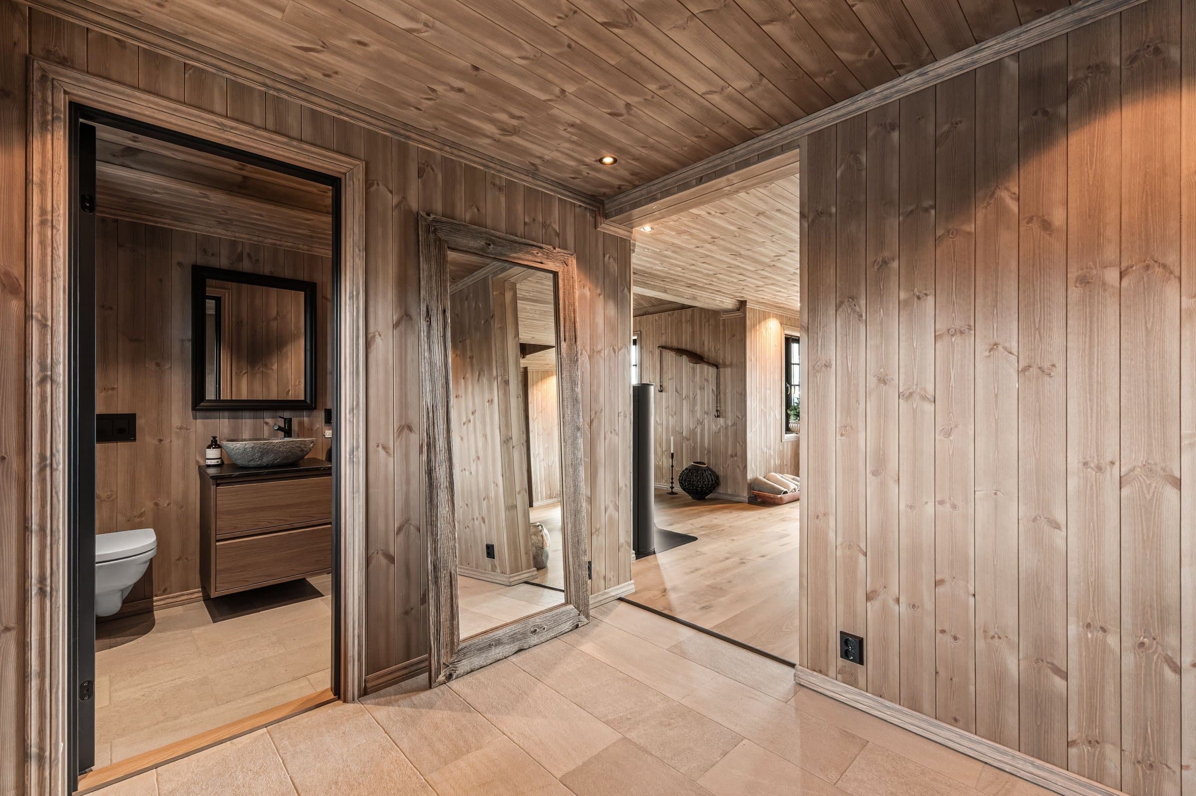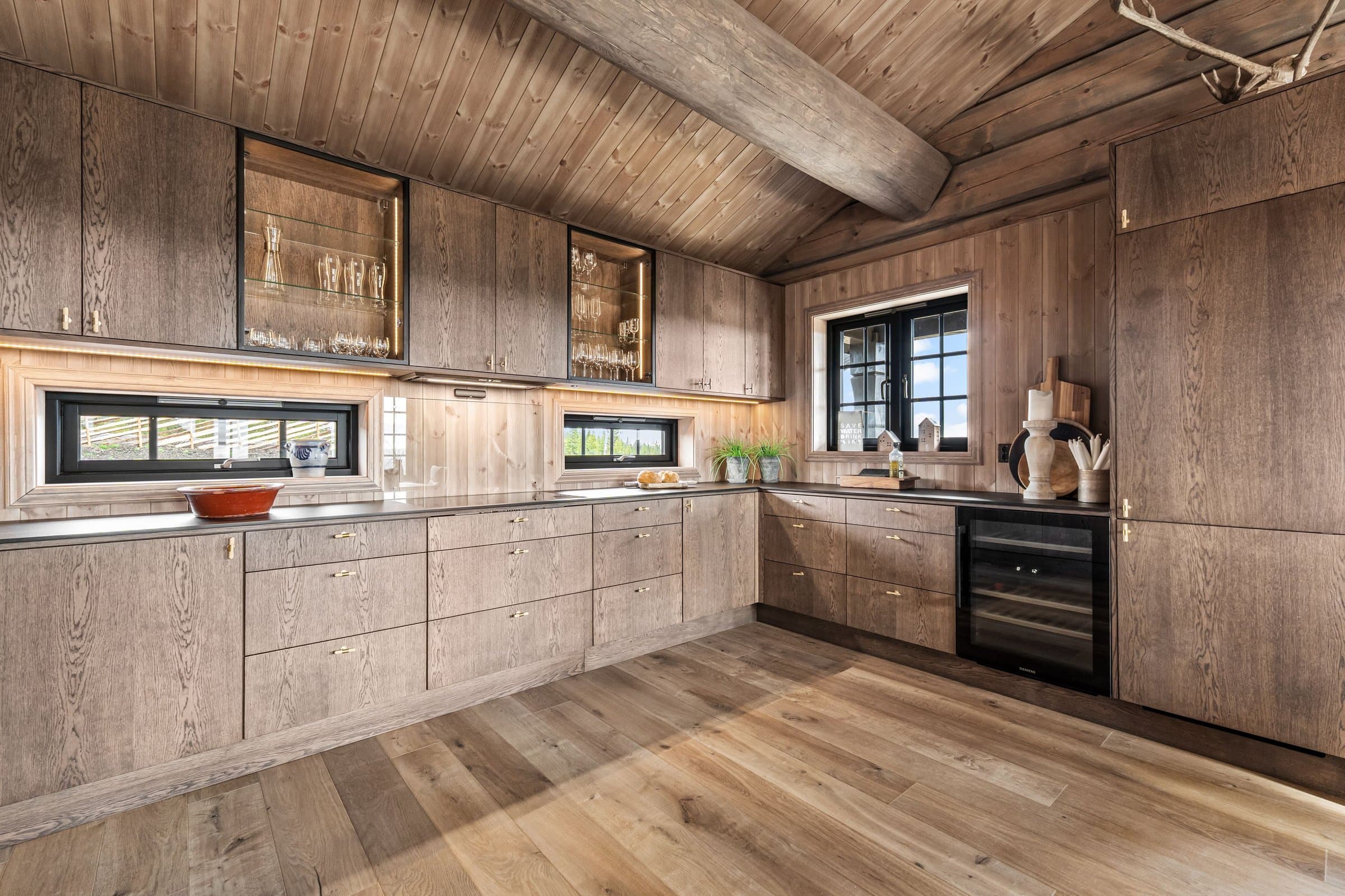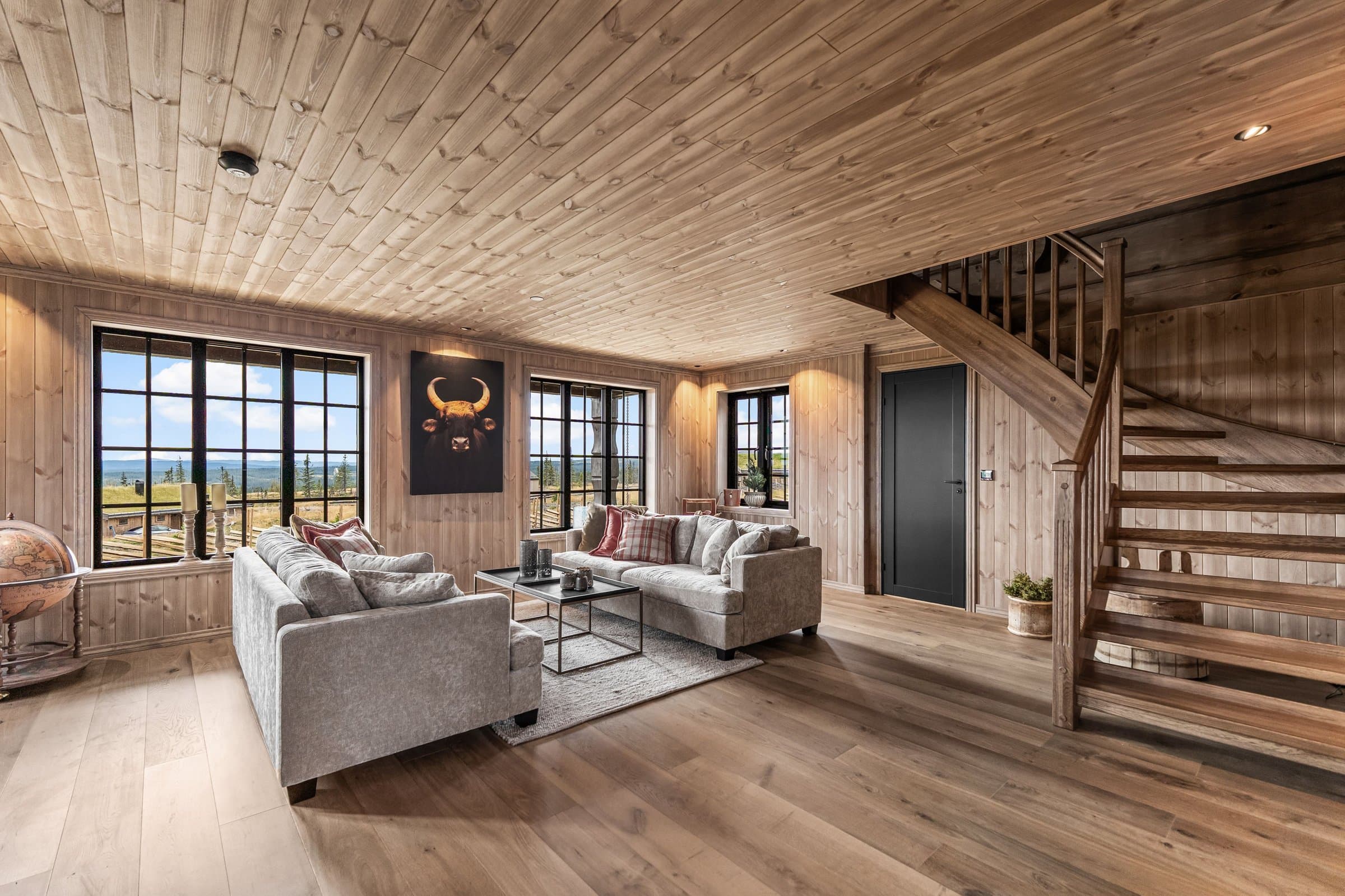 Eksklusiv hytte i håndlaftet stil med 8" tømmer i andre etasje og stavlaft i første etasje, som gir en unik blanding av tradisjon og moderne uttrykk. Hytta har 5 soverom og 3 bad, hvorav to soverom i første etasje har en-suite bad. Det er også et kombinert gjestetoalett og vaskerom. I andre etasje er det tre soverom og ett bad, samt bod og loftsstue med utgang til balkong. Det elegante kjøkkenet har eikefinerte fronter, integrerte hvitevarer og et 2-soners vinskap. Eksklusiv 1-stavs eikeparkett. Massiv eiketrapp til andre etasje. Hytta er utstyrt med energibrønn og vannbåren gulvvarme i hele første etasje, utvendig bod og teknisk rom samt bad i andre etasje, noe som gir god effektivitet og komfort året rundt. Lader for EL. bil, romslig parkeringsareal på egen tomt. Hytta ligger syd/vestvendt, og den store terrassen på 125 m2 inviterer til utendørsliv med solrike dager, grilling og avslapning i naturen. Oppkjørt skiløype 30–40 meter fra baksiden av hytta. Skigard og en stor solid port gir privatliv og trygghet. Hytta selges ferdig møblert, slik at du kan flytte rett inn og nyte en eksklusiv hytte av høy kvalitet og gjennomtenkte detaljer.