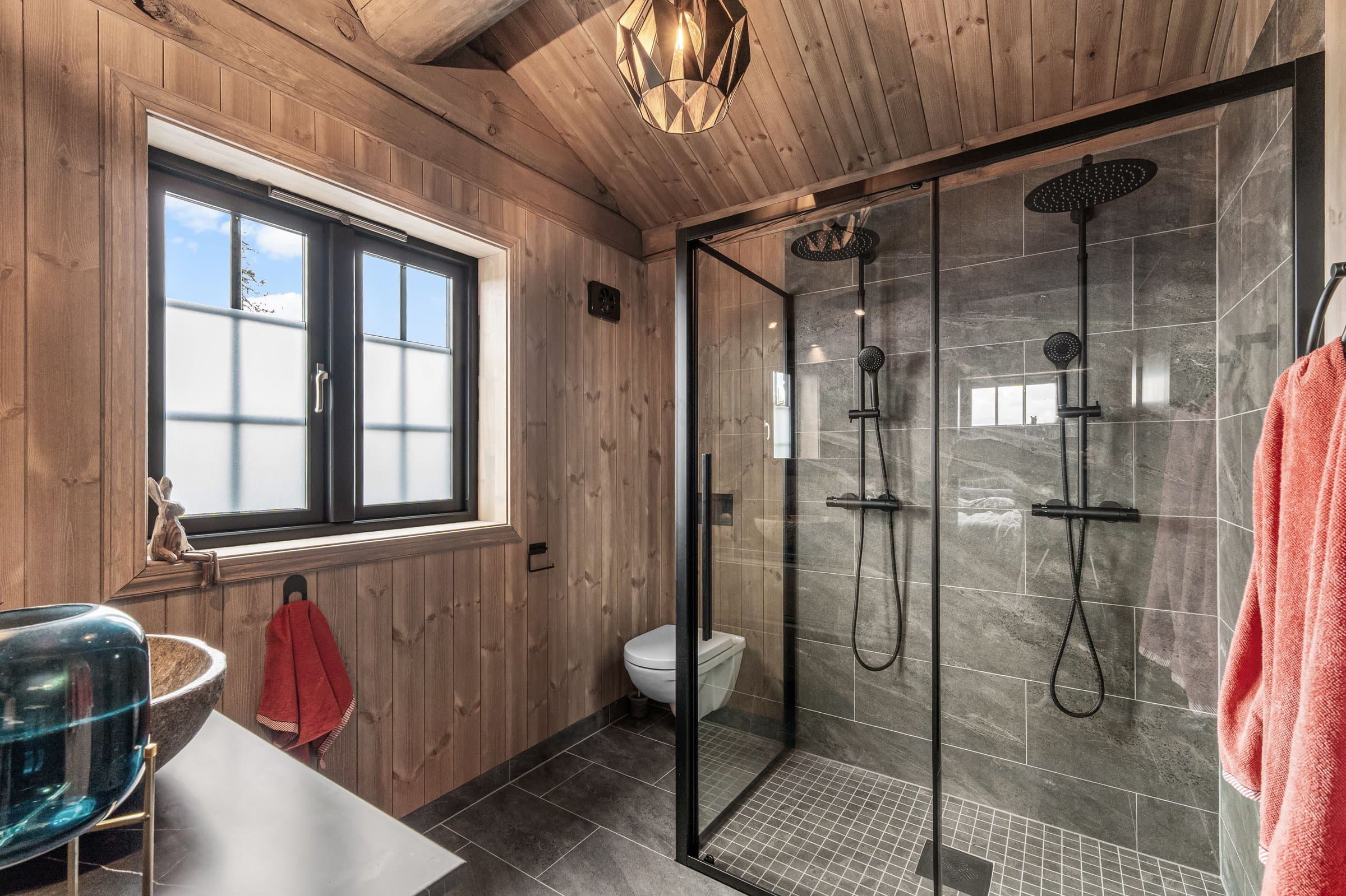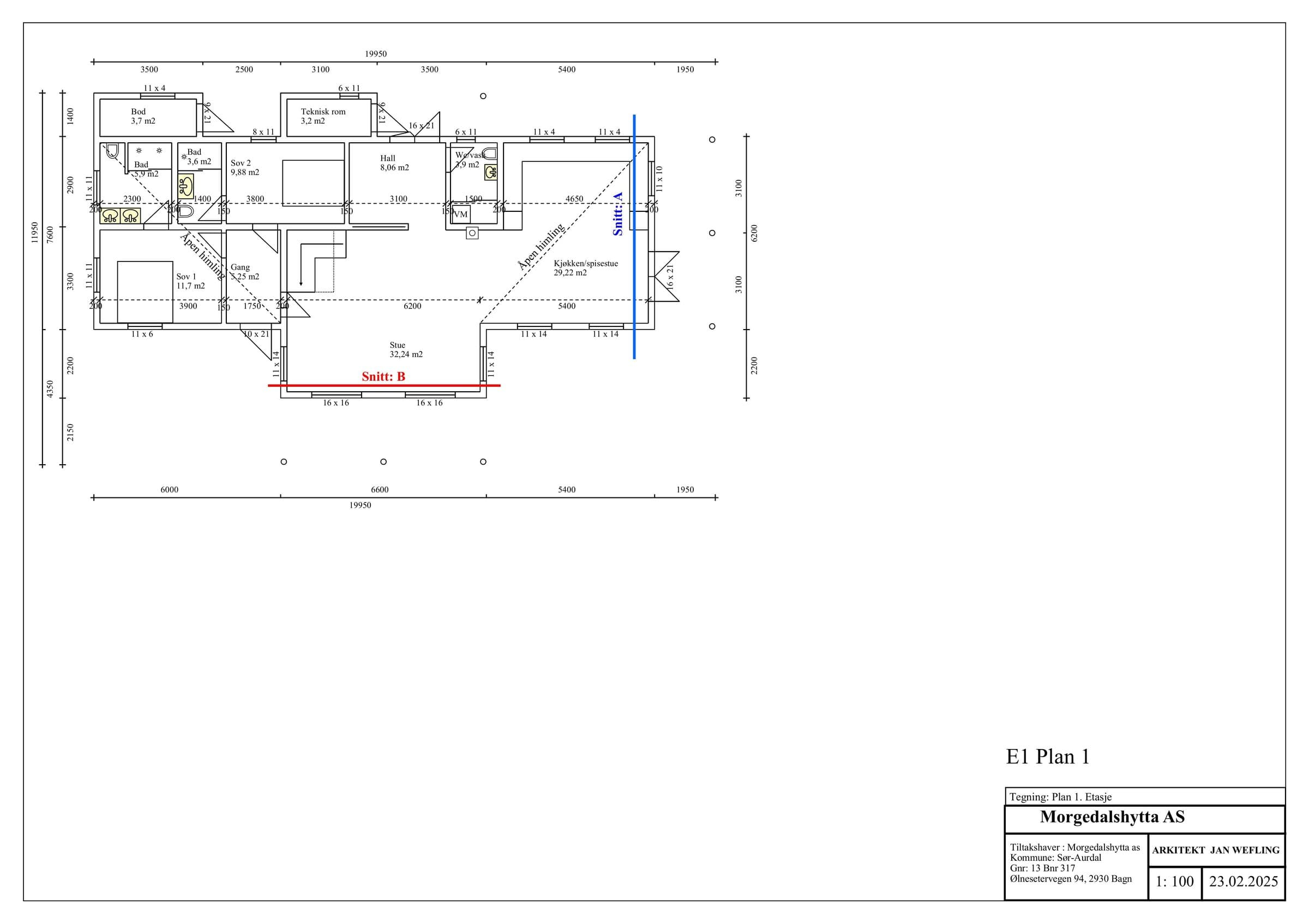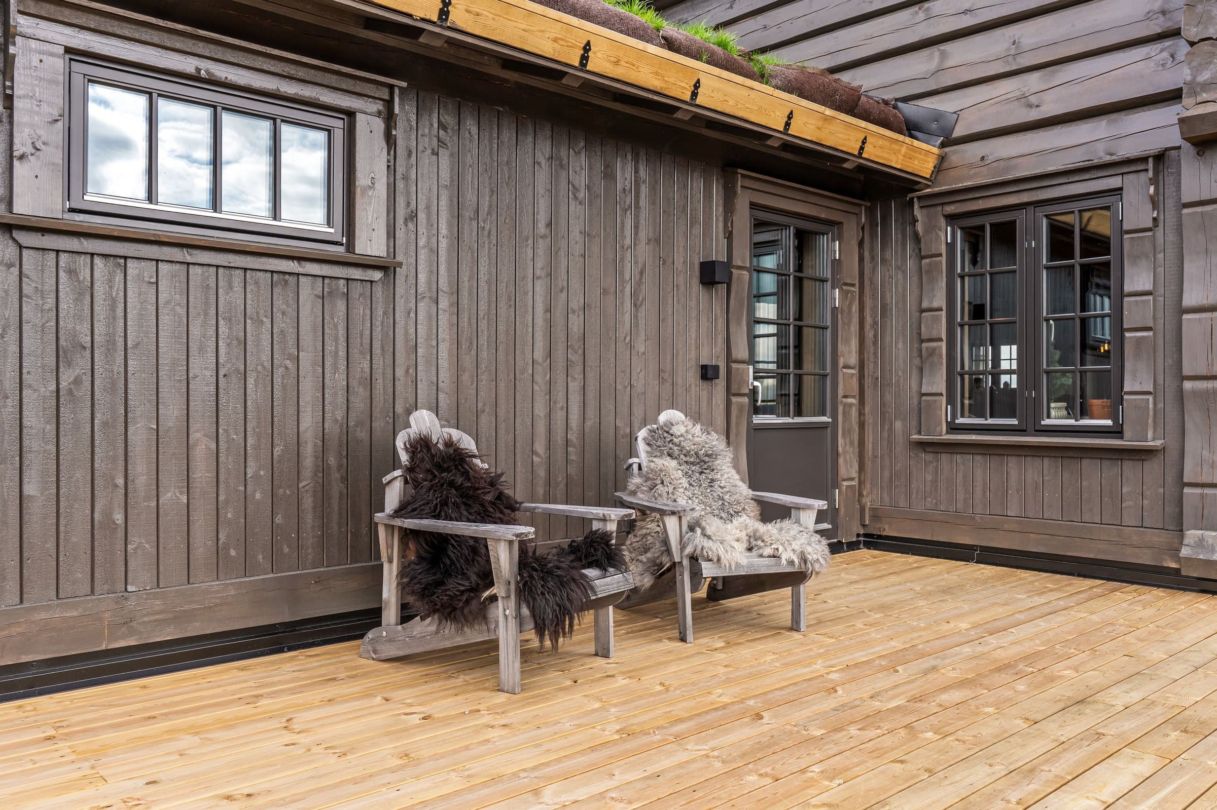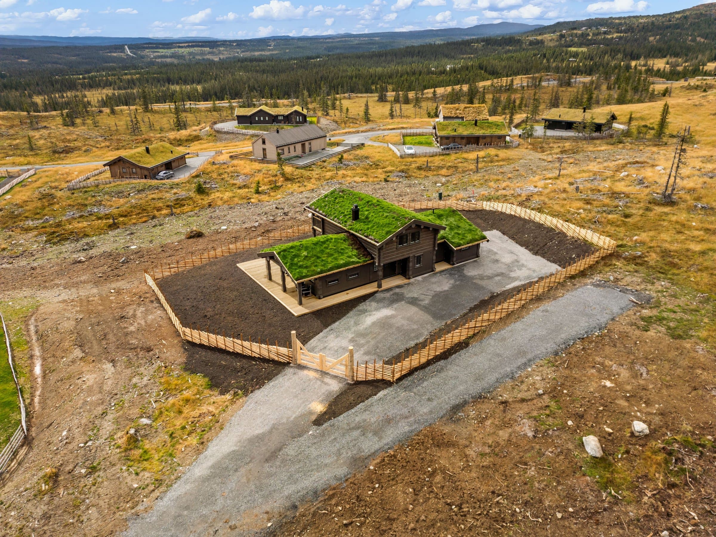 Hytten er en stavlafthytte med 8’’ laftetømmer i 2 etg, 1 etg er i stavlaft med 20 cm isolasjon i yttervegger. Plate på mark med ringmurselementer og 35 cm isolasjon og radonmembran i gulv. Etasjeskiller isolert med 20 cm isolasjon. Det er store glassflater som gir mye lys og kontakt med naturen og nydelig utsikt. Torvtak, Skjulte takrenner med kjetting som nedløp. Ferdig beiset utvendig, 3-lags vinduer, dobbel inngangsdør, dobbel balkongdør fra kjøkkenavdeling, enkel balkongdør fra soveromsgang. Energibrønn med 180 meter borehull, vannbåren varme i alle gulv 1 etasje, inkludert utvendig bod og utvendig teknisk rom, og i bad 2 etasje. Parkering: På egen tomt, det er montert EL-bil lader. Innhold Innholdsrik, lekker og romslig hytte med en gjennomtenkt planløsning. Her kombineres komfort, funksjonalitet og estetikk, og gir et ideelt sted for både avslapning og sosialt samvær. 1. etasje inneholder på stue, kjøkken/spisestue, romslig hall med garderobe, 2 soverom med en suite bad, et kombinert gjestetoalett/vaskerom WC, gang til soverom med utgang til terrasse. 2. etasje inneholder stue, bod, 3 soverom og 1 bad. Store terrasse på 125 m2, hvor deler av den er overbygget. Det er klargjort med rør fra elektriker for å trekke kabel til jaccuzi. Alle innvendige dører: 1-speils massive dører med i farge dempet sort, med dempelister. Alle utvendige dører og vinduer i farge dempet sort, vinduer med 3-lags glass. Våtsoner alle bad er bygget opp med Litex, og smøremembran på gulv. Smøremembran på gulv i wc/vaskerom og utvendig teknisk rom. Sprekkpanel 120 mm er fabrikkbeiset i farge Saltdalsgrå. Utvendig behandlet med Tyrilin i farge 597 Moskus.