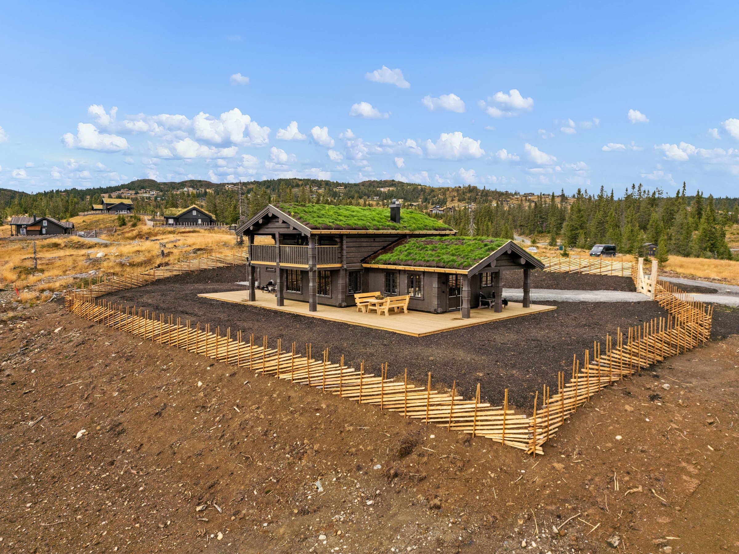 Eksklusiv nyoppført hytte, solrikt, 895 moh. Ca. 30 m fra løypenett. Energibrønn og vannbåren varme. 5 soverom og 3 bad.
