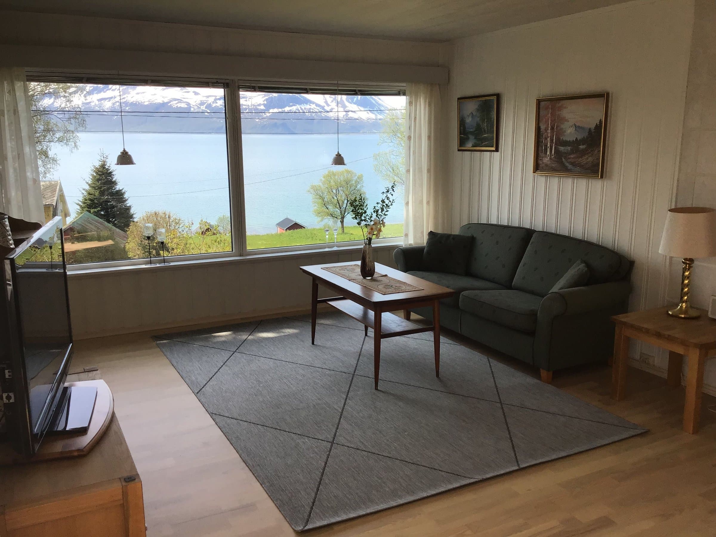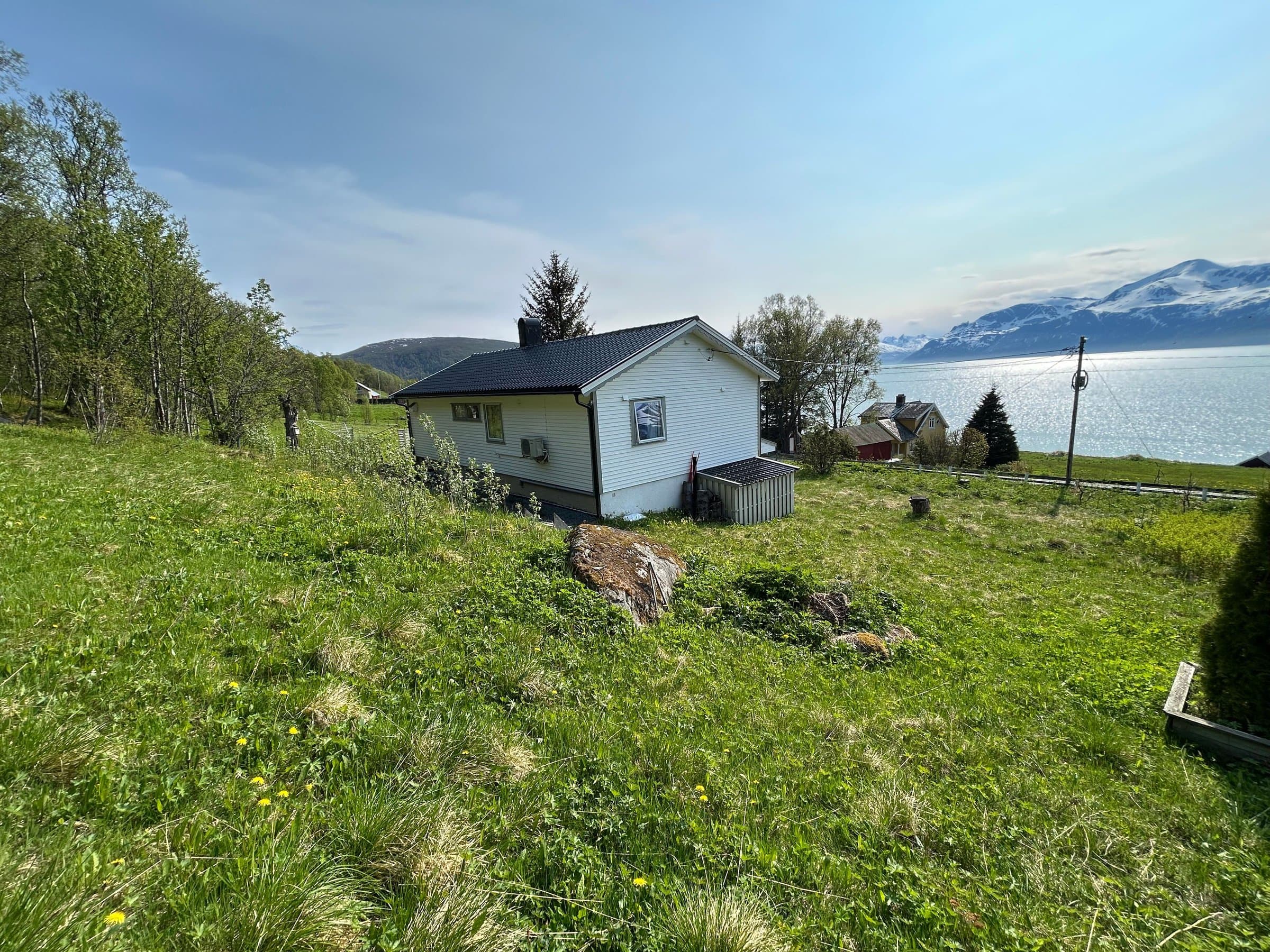 Vakkert beliggende Enebolig/fritidseiendom over 2 etasjer med nærhet til både sjø, vann, fjell og natur. 1,5 km fra Jægervatn, 33 km til Lyngseidet og 66 km til Tromsø med ferge.