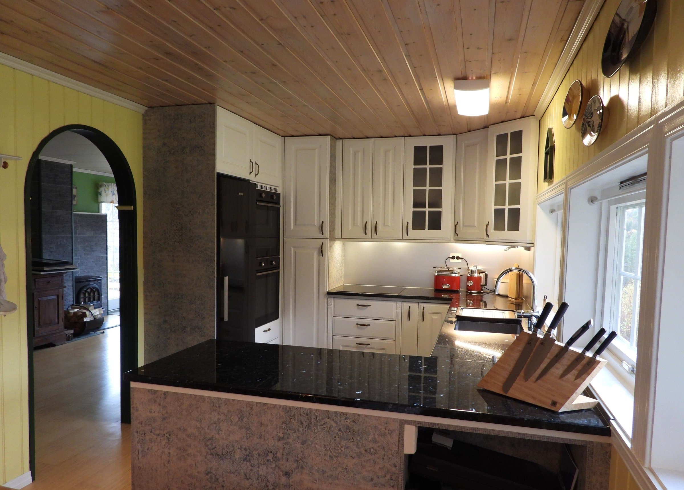 Stor og innholdsrik enebolig med 4 soverom, to bad, vaskerom, to stuer, spiskammer og flere boder. Et av rommene blir i dag brukt som kontor. Terrasse på ca 30 kvadratmeter, med utgang fra stue og hovedsoverom. Boligen er godt vedlikeholdt og betydelig oppgradert de seneste årene. Bad i underetasjen er fra 2018 med dusj-nisje. Badet i hovedetasjen er nytt i 2025 med badekar med regndusj. Varmekabler i gulv på begge bad. Stort kjøkken fra 2022 med integrerte hvitevarer. To ovner (en med damp funksjon), induksjon koketopp, stort kjøleskap, oppvaskmaskin, benkeplater i granitt og mye skapplass med moderne funksjoner. Nye takrenner, gradrennebeslag, pipebeslag og møneband fra 2021. Hovedinngang samt inngang direkte til vaskerom og egen inngang til underetasjen. Vedovn og varmepumpe i begge etasjene. Det er lagt fiber til boligen. Stor tomt med mange muligheter. For eksempel kjøkkenhage, hønsehold eller lignende. Huset er åpent for visning. Ta kontakt på telefon eller epost.