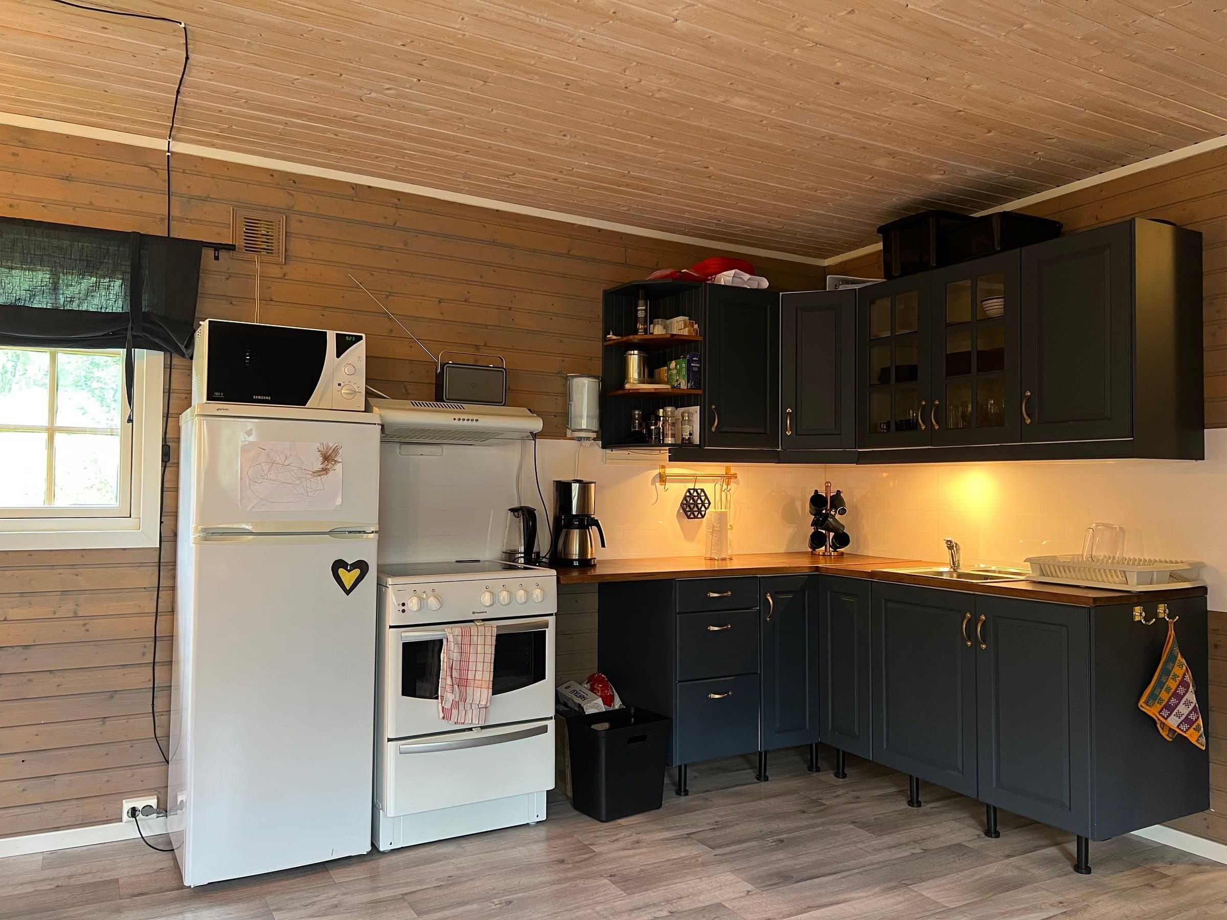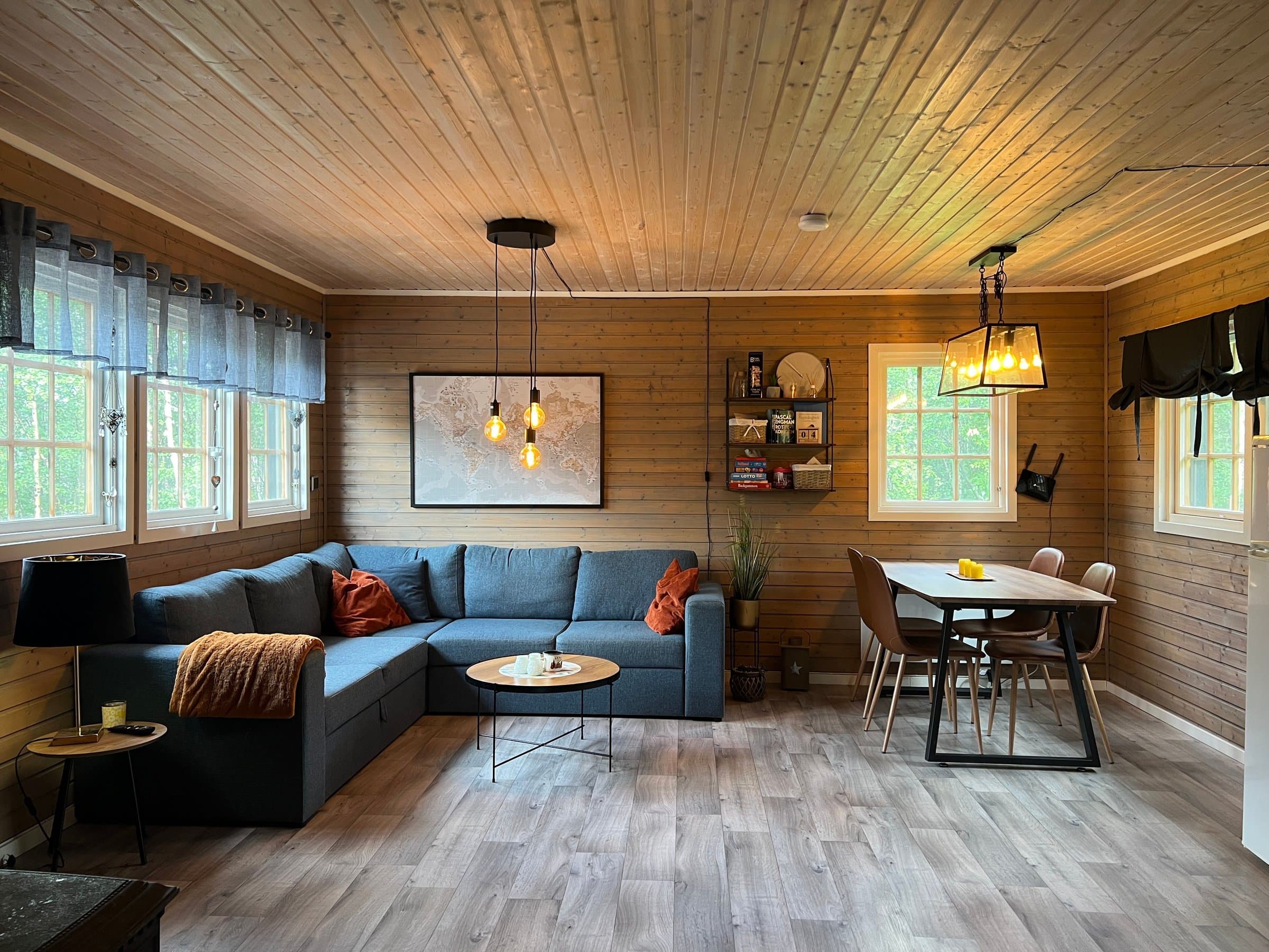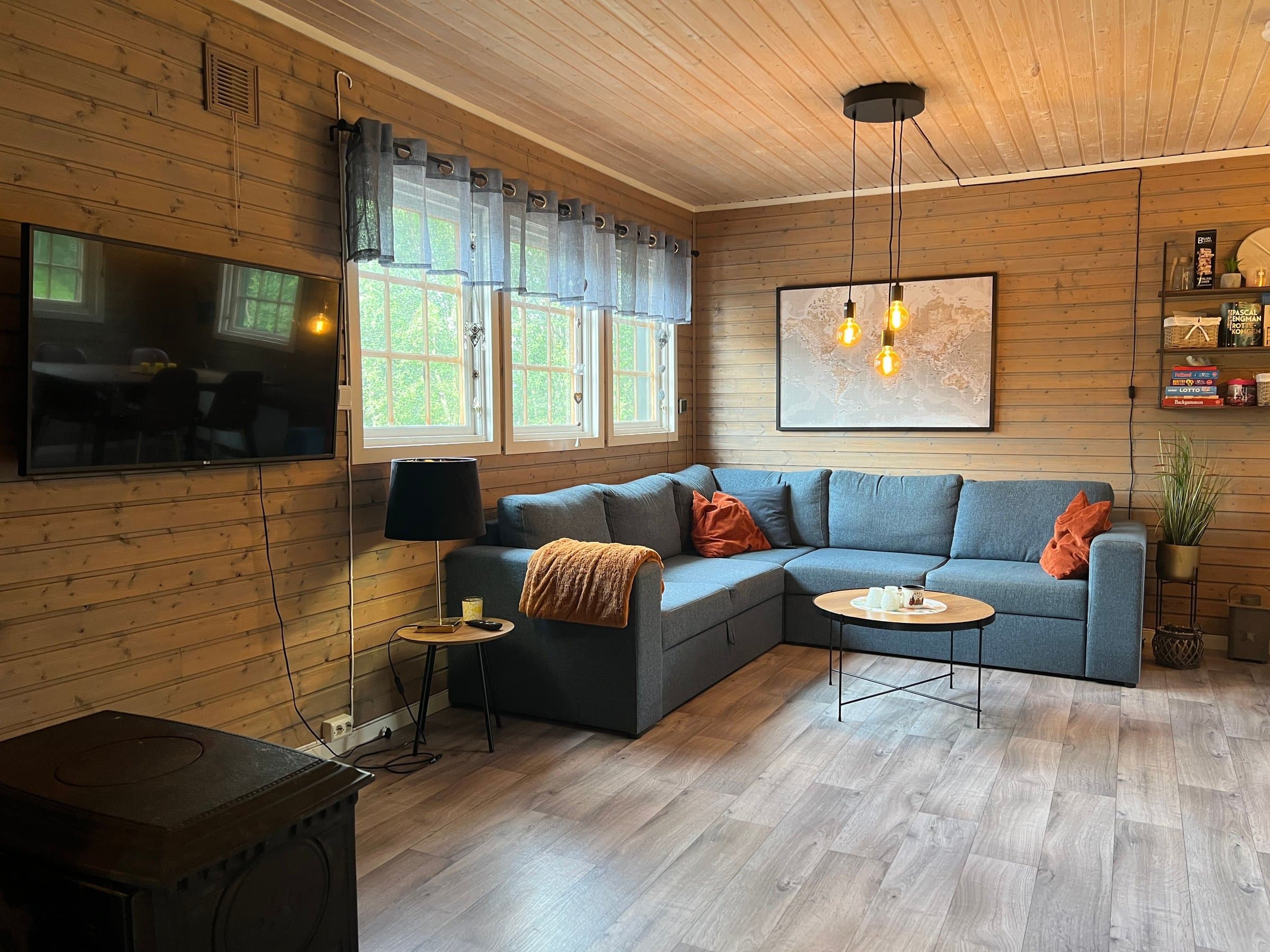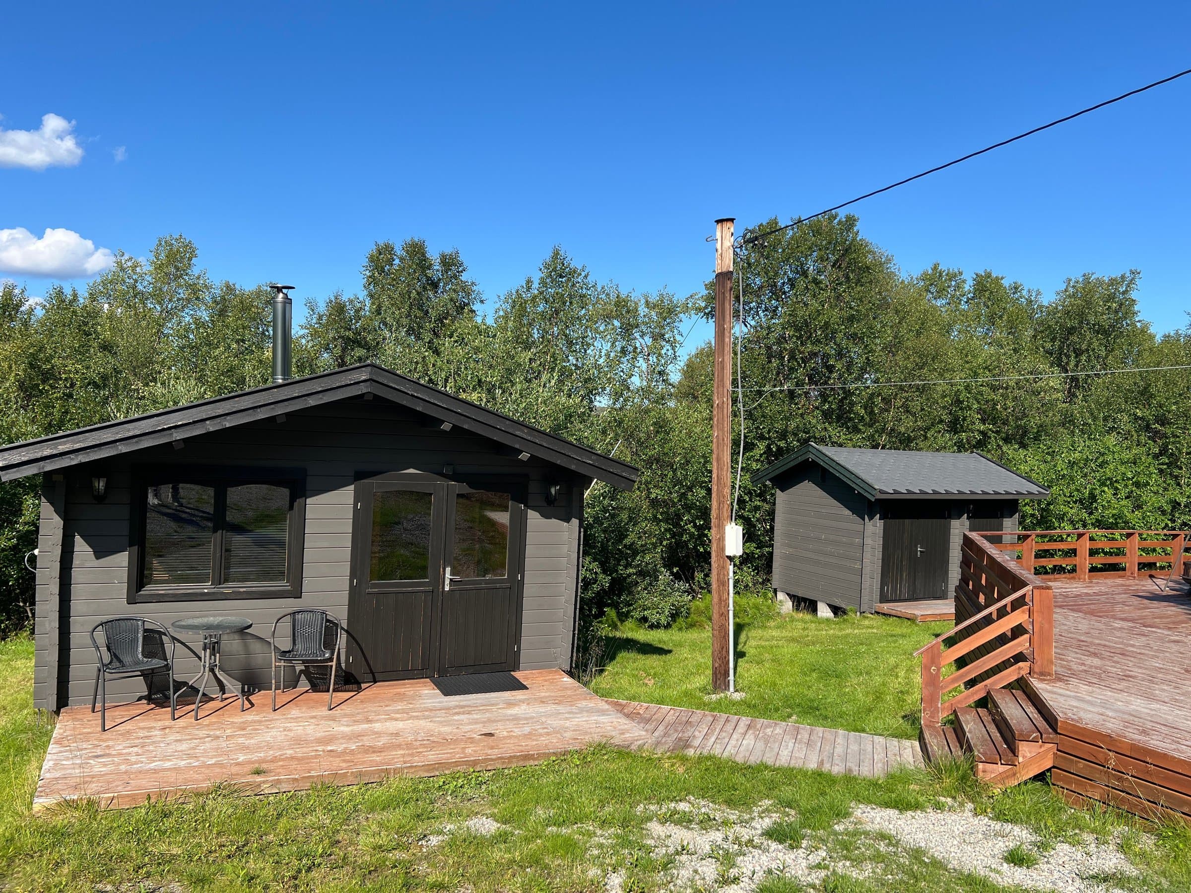 NY PRIS - Koselig fritidsbolig med stor terrasse, grillhus og anneks i solrike omgivelser. Innlagt strøm.