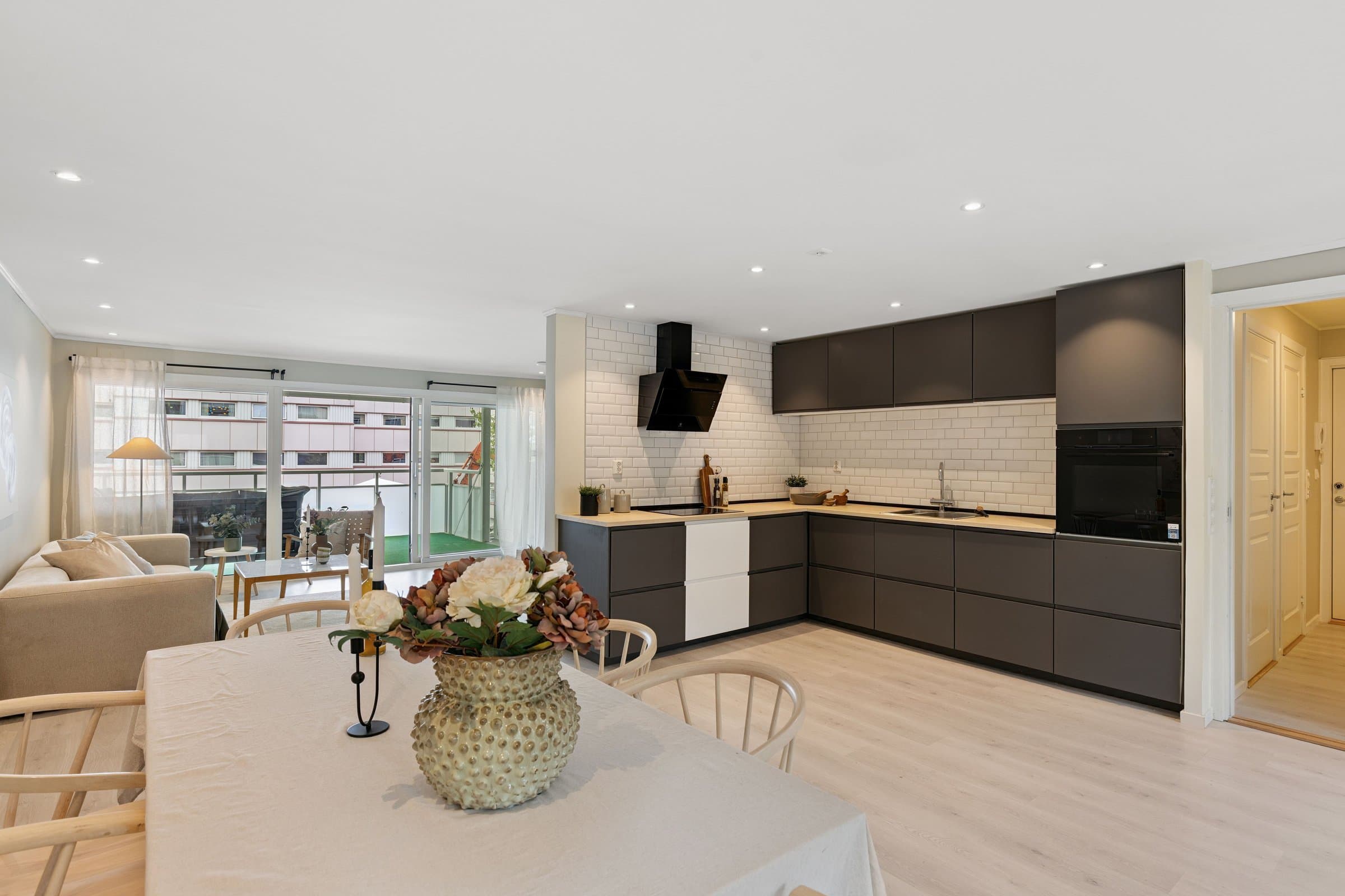 Husk å melde deg på visning. Stor og flott leilighet totalrenovert i 2021. God planløsning med 4 soverom, bad + gjestetoalett, stue og stort kjøkken med rikelig spiseplass. Høy første etg. Med enkel adkomst. Bad, kjøkken og alt elektrisk er nytt i 2021! Flislagt bad, vegghengte toaletter og praktisk skap med skuffer for vaskemaskin og tørketrommel. Garasjeplass med lader for elbil. Stor balkong. Bod i kjeller. Inkludert vegghengt tv på soverom, toppmodell innebygd komfyr med steam-funksjon på kjøkken. Ingen dokumentavgift.