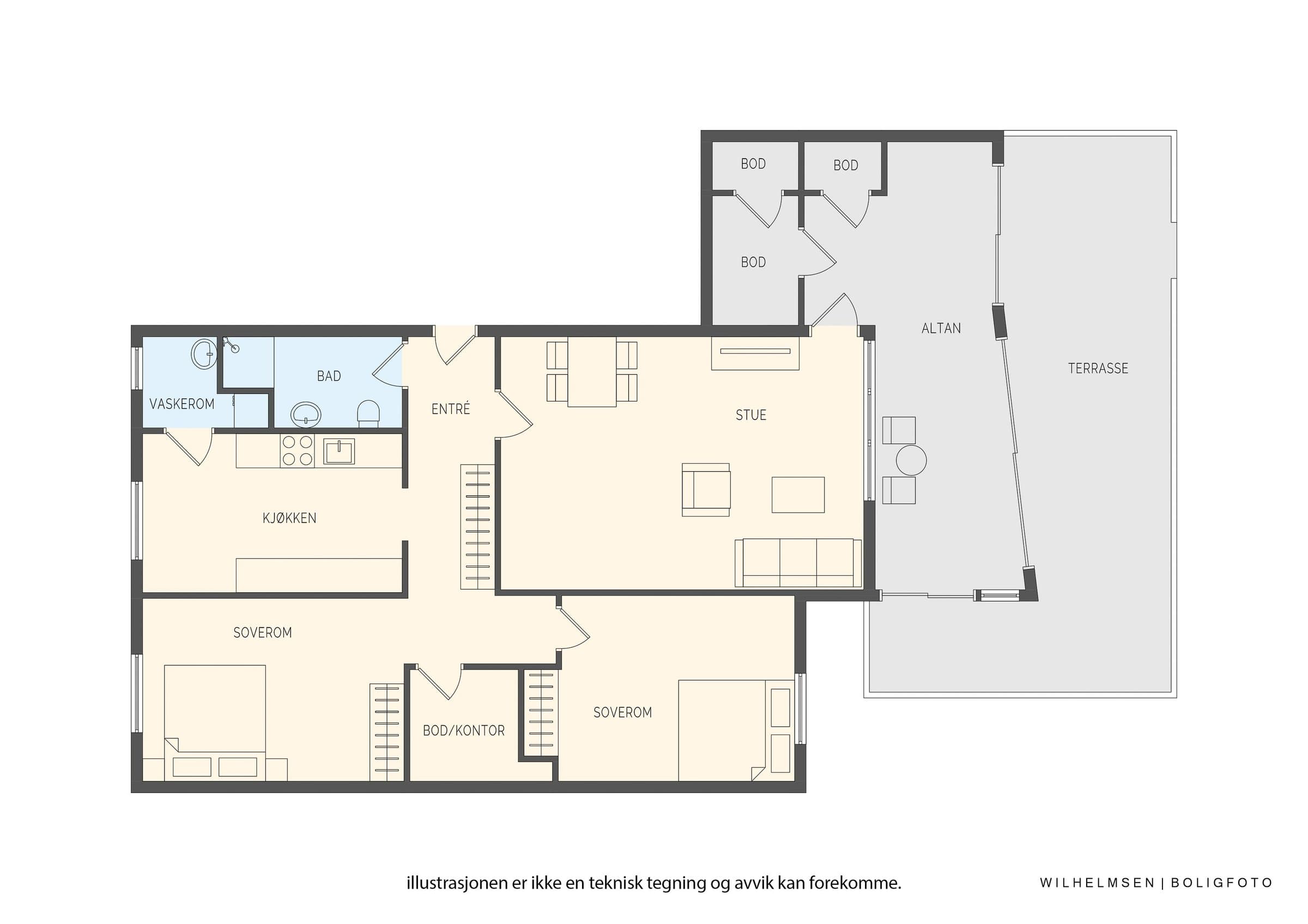 Svært innbydende 3-roms endeleilighet med sentral beliggenhet. Husleien inkluderer sentralvarme, varmtvann og Altibox pakke med tv kanaler og internett. kommunale avgifter er inkludert i husleie.