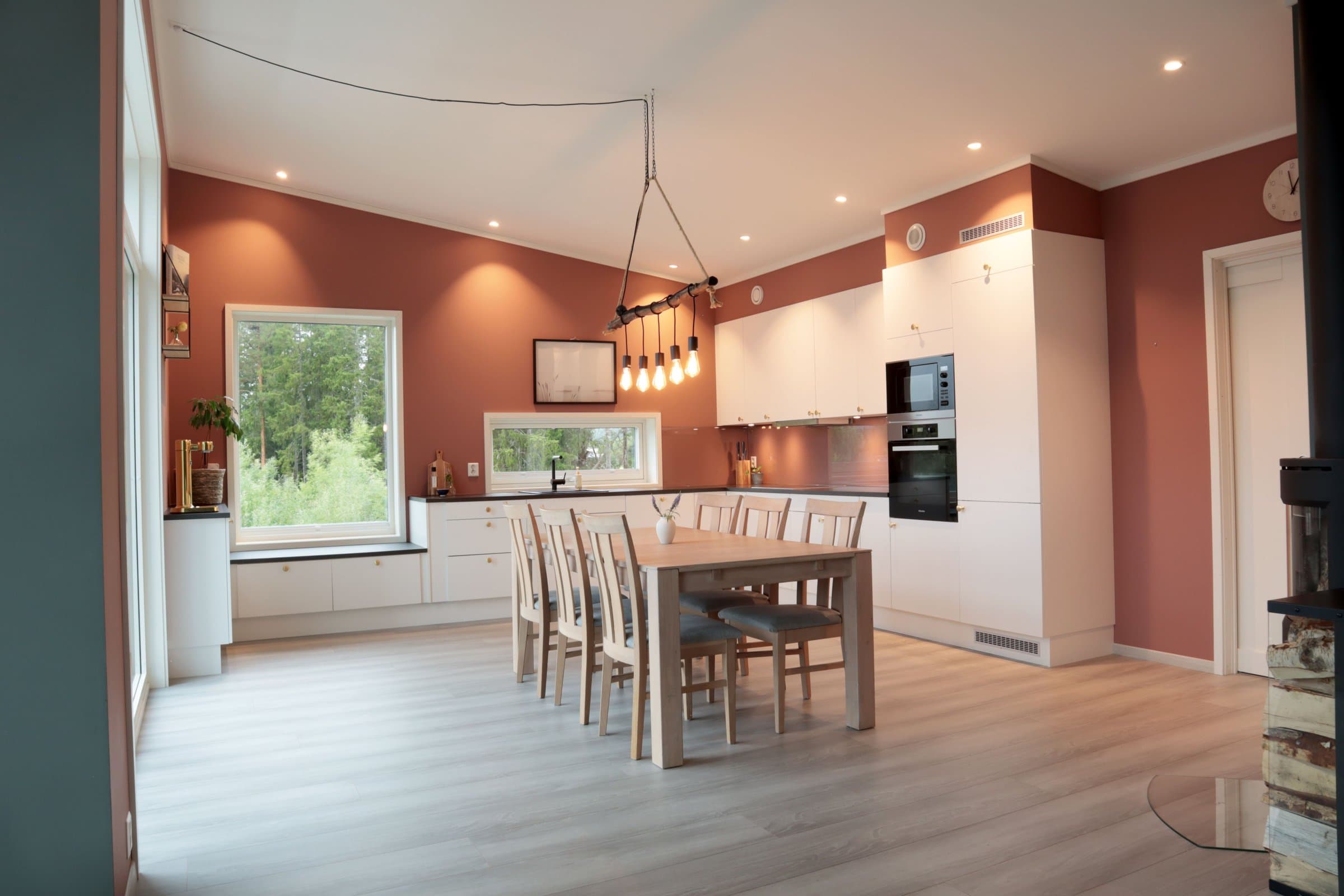 *Store vindusflater, med generøs takhøyde *Solskjerming fra Kjells markiser (ute og inne) - hindrer uønsket varme og innsyn, men bevarer utsyn *Utvidet kjøkken, med gjennomgående Miele hvitevarer (foruten sentralstyrt ventilator fra Røroshetta) *Varmekabler i inngangsparti, gang, bad og vaske-/teknisk rom; for øvrig smarte panelovner (Mill) montert i alle oppholdsrom (minus WC) - for ENØK, komfort og trygghet *Ferdig programmert robotgressklipper *Sandkasse (m/lokk) *Vedlikeholdsvennlige plattinger og veranda utført i MøreRoyal Natur *'BioClean' på vanskelig tilgjengelige vinduer i andre etasje sørger for naturlig vindusvask av seg selv *Carport + rikelig med biloppstillingsplasser, og god mulighet for snuing på egen grunn *Køyeseng fra "Drømmerom" *Engasjert velforening som arrangerer "Svøodagen", julegrantenning, påskeeggleting og familieskirenn