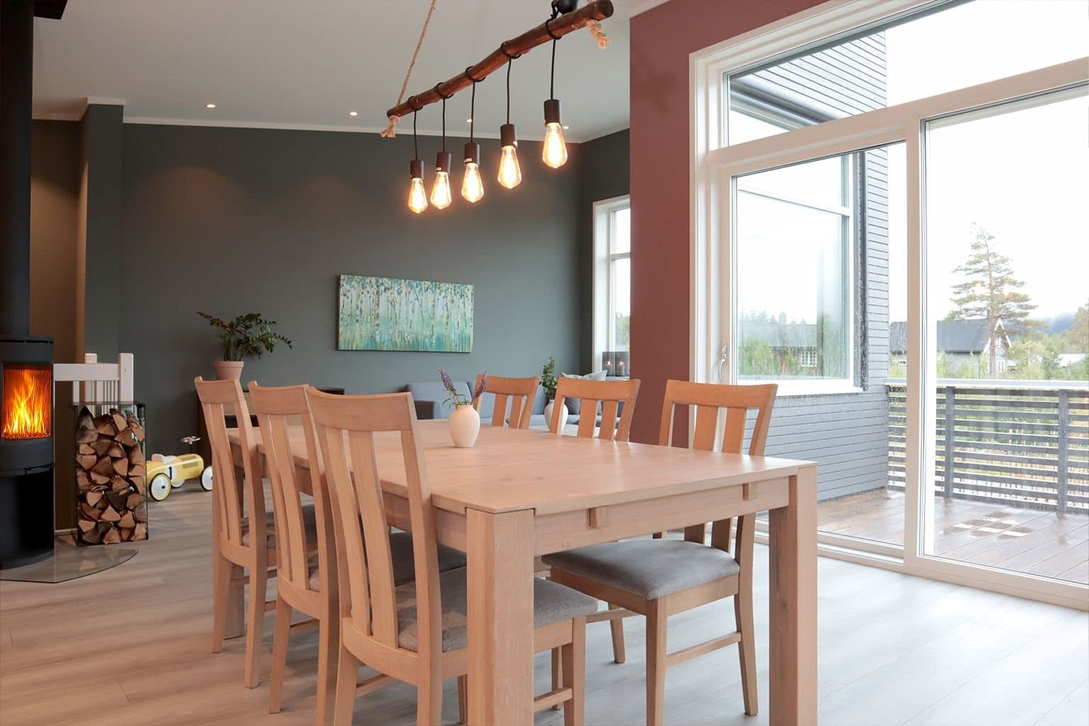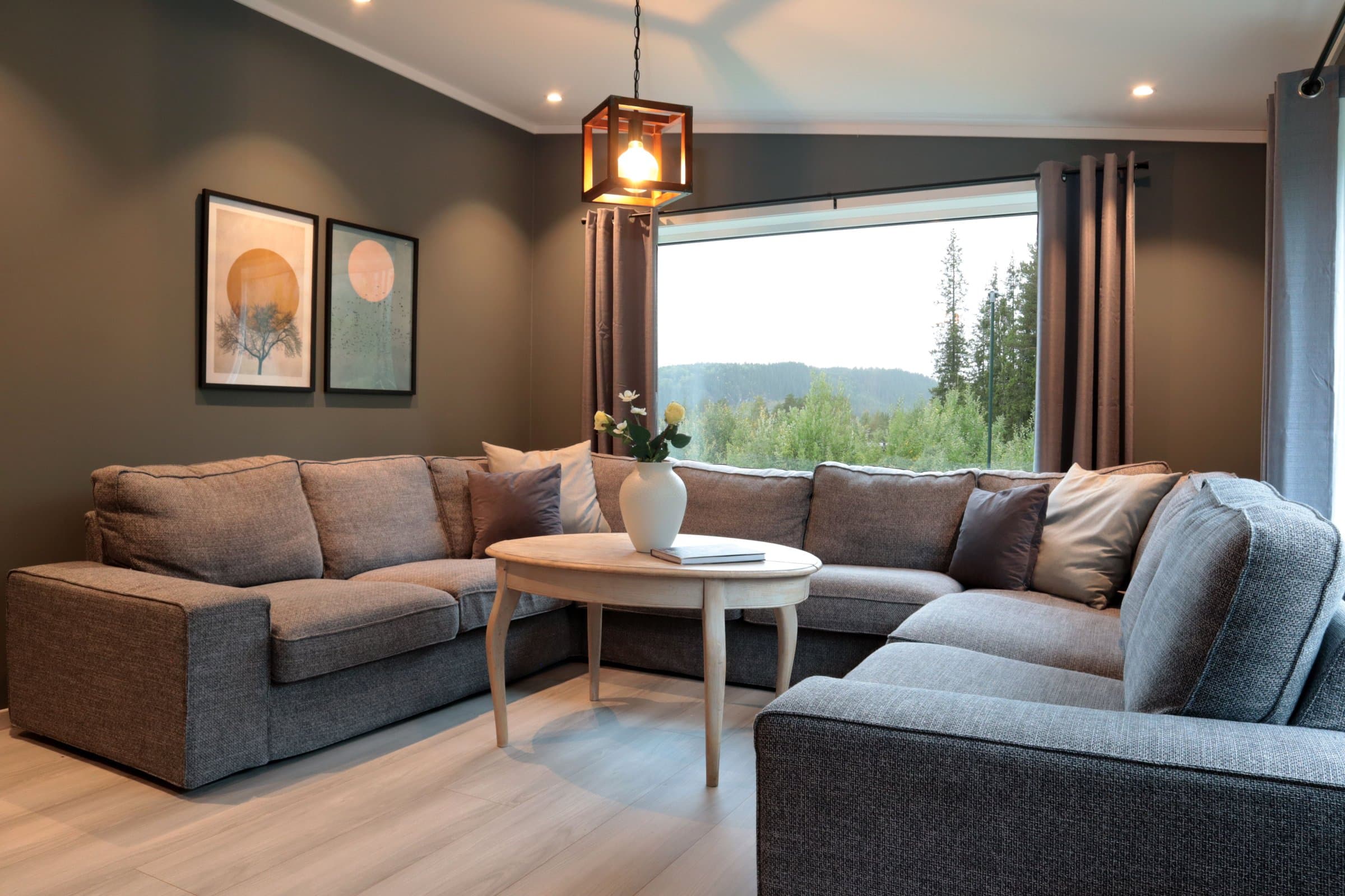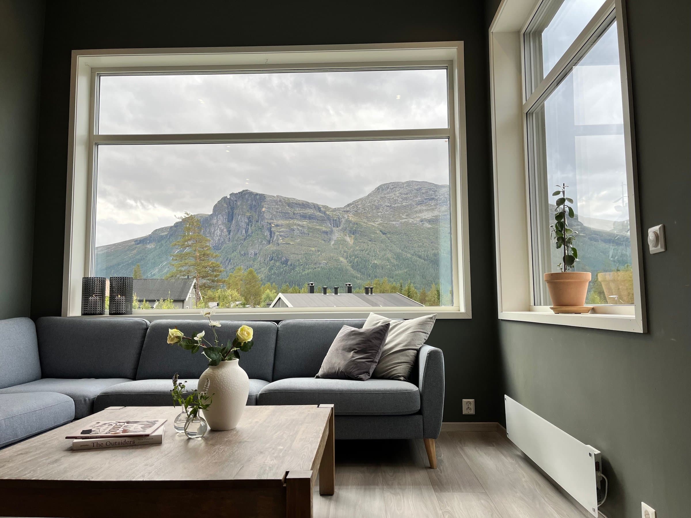 NY PRIS! Påkostet halvpart av tomannsbolig med fantastisk utsikt, gode solforhold, hage mot friareal/skiløype, 4 soverom