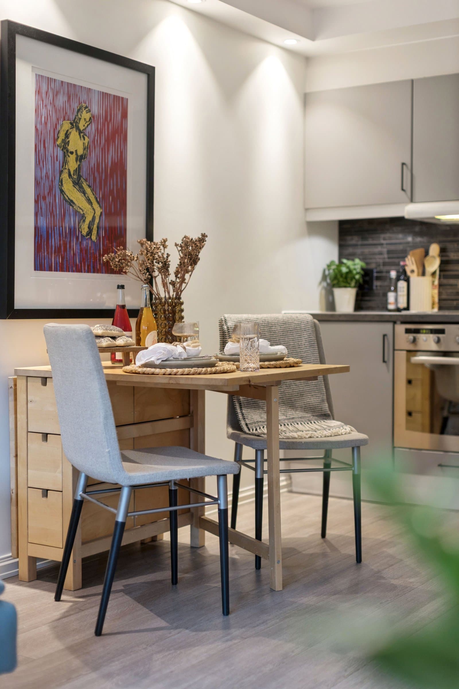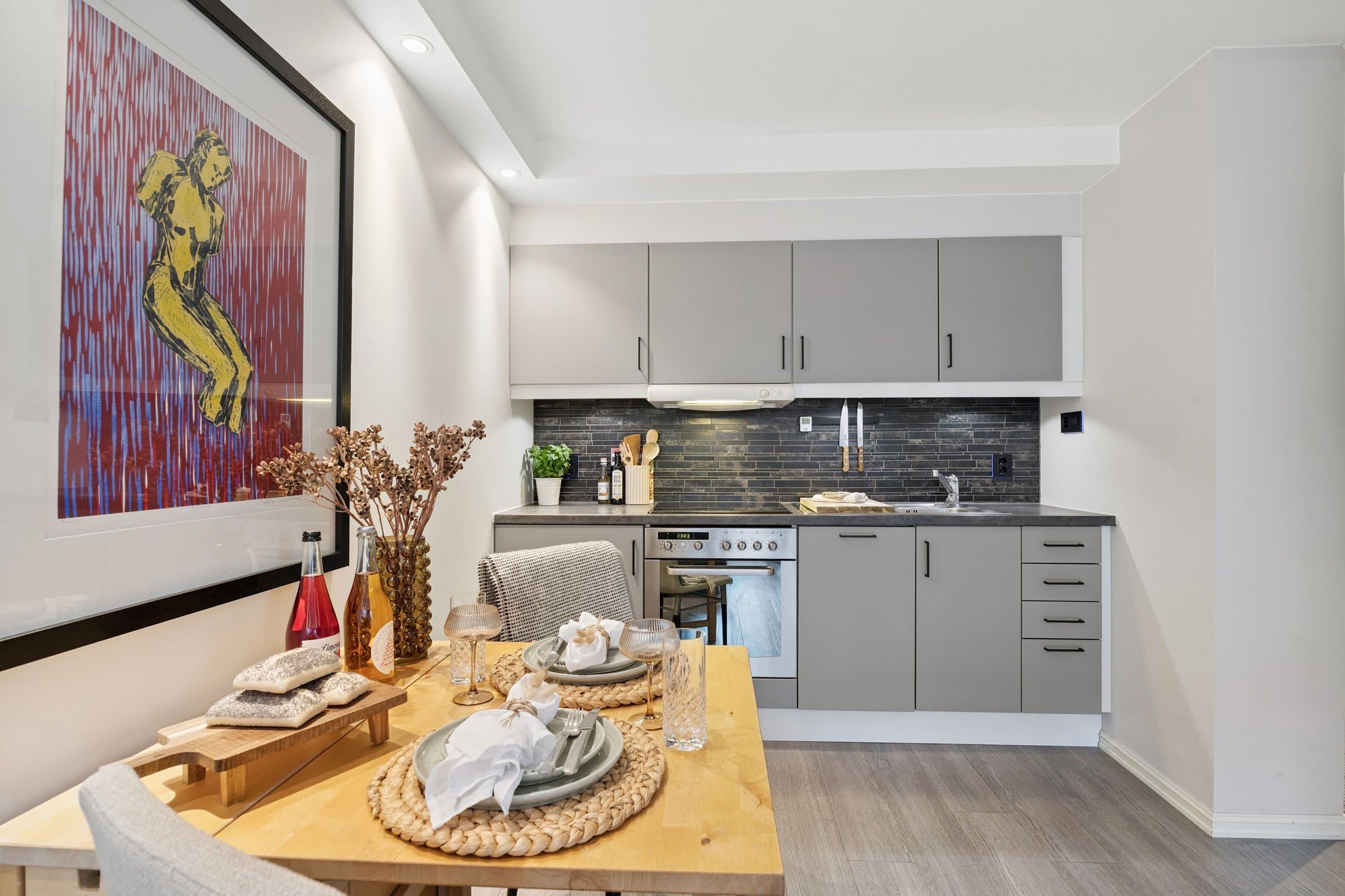 Arealeffektiv 2-roms leilighet med privat balkong og bad fra 2019. Sentral beliggenhet midt i Ås sentrum med umiddelbar nærhet til togstasjonen som tar deg til Oslo på under 20 minutter. Det er 15 minutters gåavstand til NMBU og nærhet til et stort utvalg av butikker, spisesteder, treningssenter og andre fasiliteter. Leiligheten ligger i byggets øverste etasje og har balkong med ettermiddag- og kveldssol. Borettslag med IN-ordning der strøm, vann og internett er inkludert i fellesutgiftene. Det medfølger en romslig kjellerbod på ca. 5 kvm og mulighet for p-plass i parkeringskjeller. Boligen er tilknyttet USBL og det er derfor forkjøpsrett på boligen. Eventuelle kjøpere må tegne medlemskap i USBL.