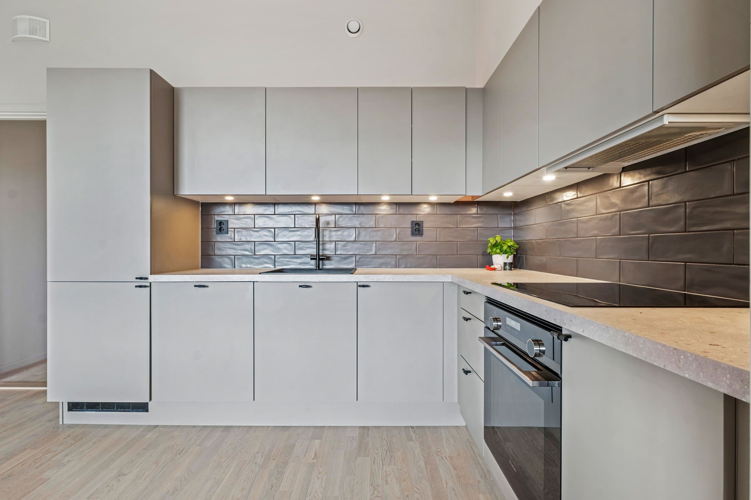 Moderne og romslig 3-roms selveierleilighet fra 2023 med høy kvalitet og moderne preg. Den åpne stue- og kjøkkenløsningen, med inntil fire meter takhøyde og store vinduer, skaper en lys og luftig romfølelse. Kjøkken og bad er påkostede, med tidsriktige farger, elegante sorte detaljer, hvitlakkerte terskler og malte lister. Sørvestvendt balkong med zip-screens byr på fantastiske solforhold. Leiligheten har to internettuttak, perfekt for hjemmekontor. I tillegg får du carport med elbillader og en praktisk bod på ca. 5 m². Med energiklasse B kan du også kvalifisere for grønt boliglån. Som en tilnærmet ny bolig fra 2023, har du fortsatt nesten tre års reklamasjonsrett. Ingen fellesgjeld – her er det bare å flytte rett inn!