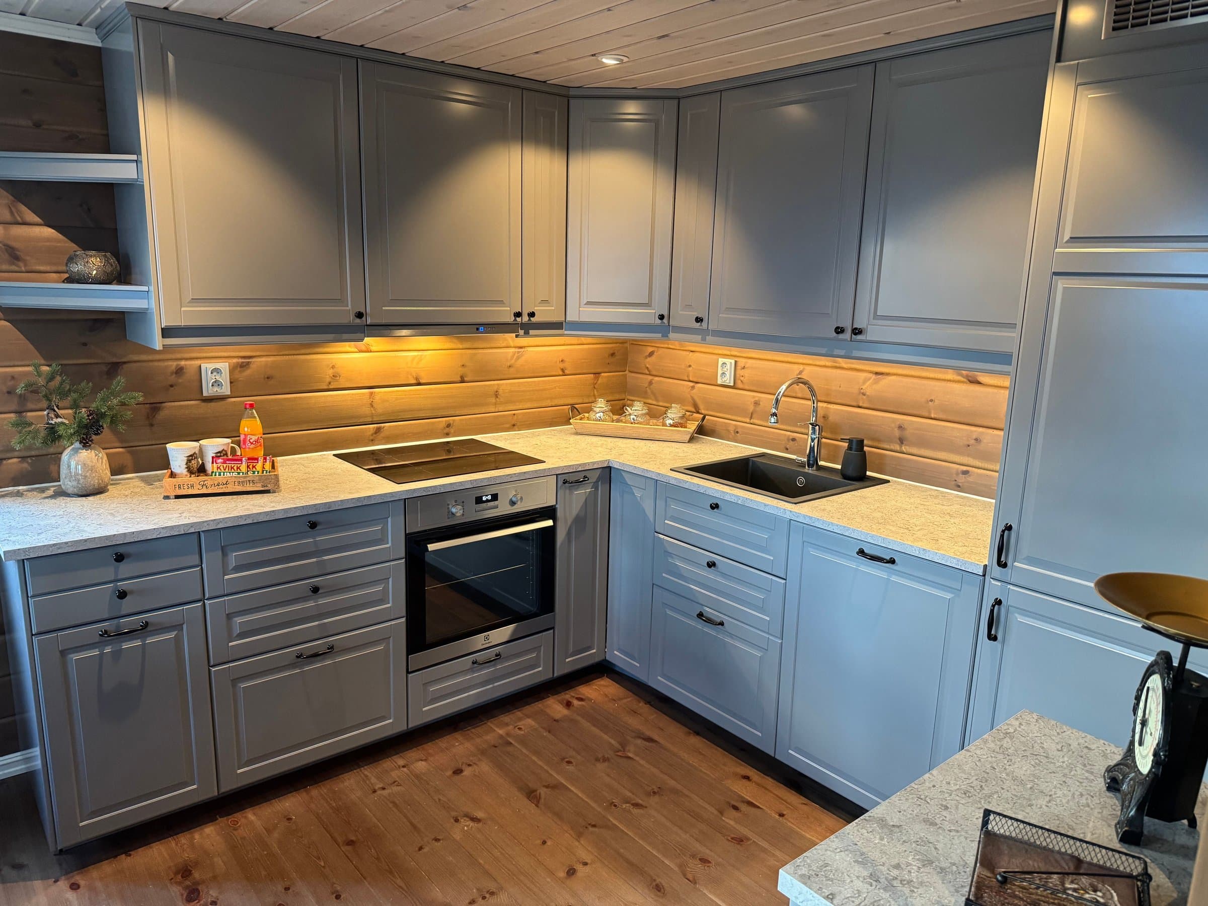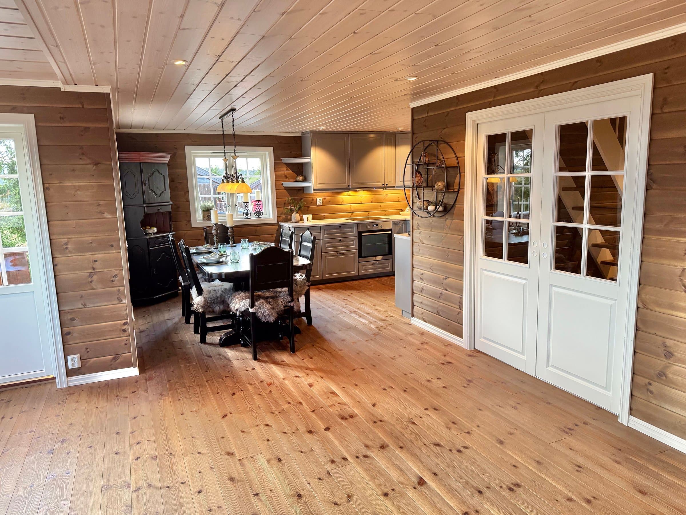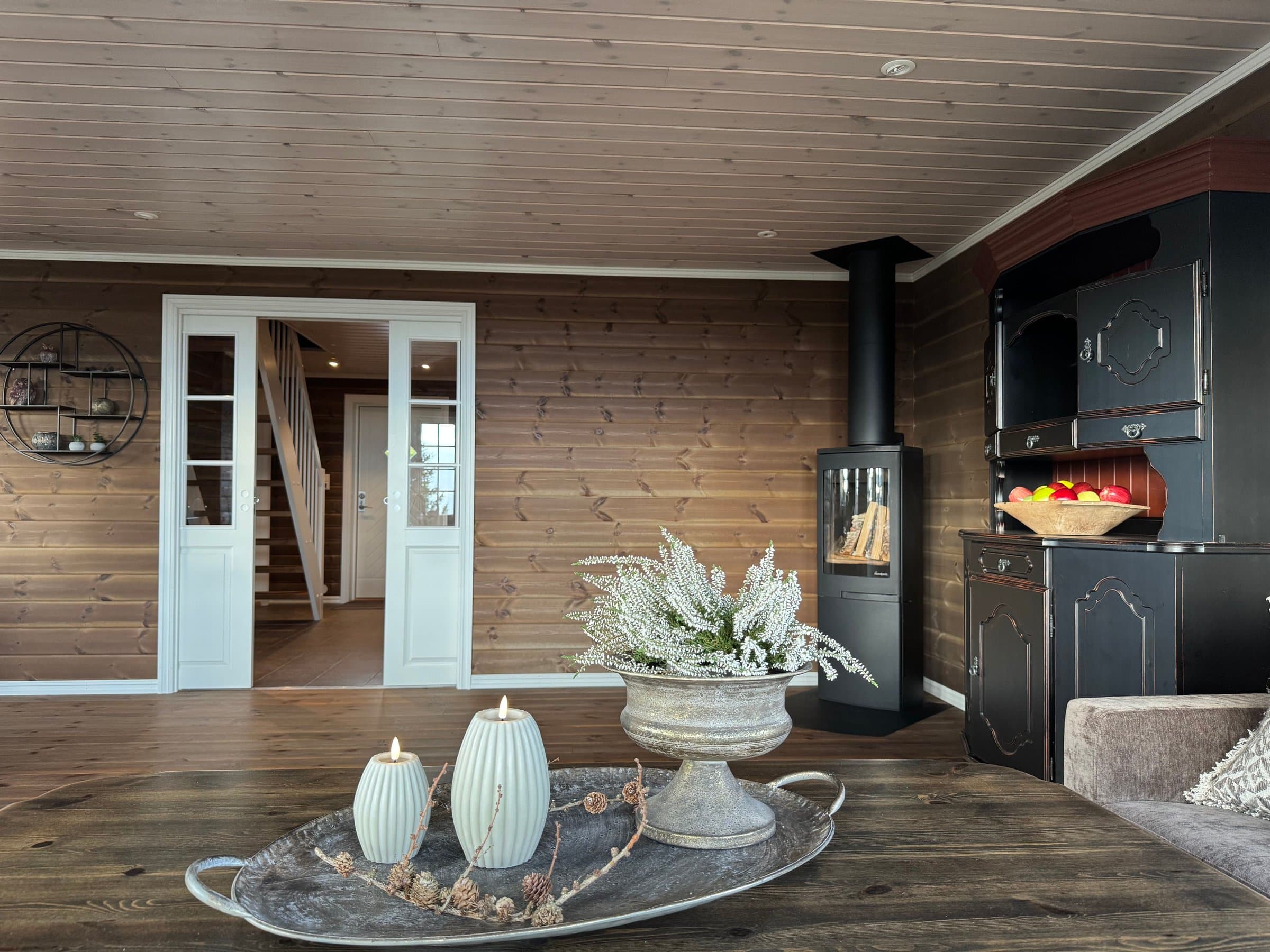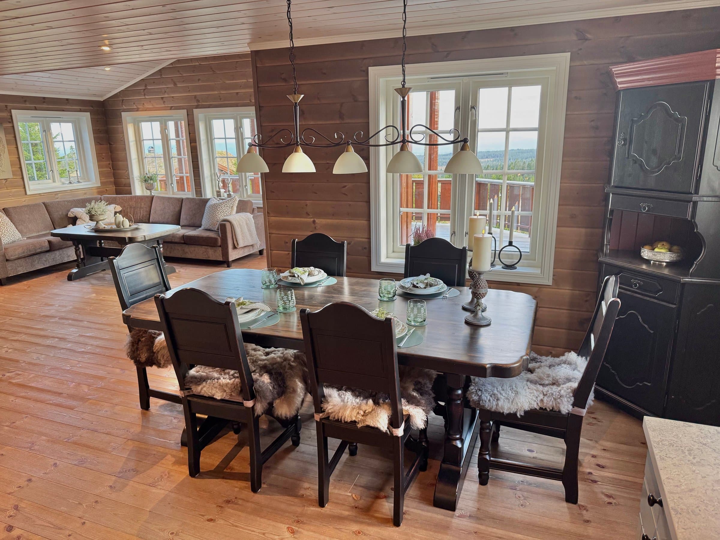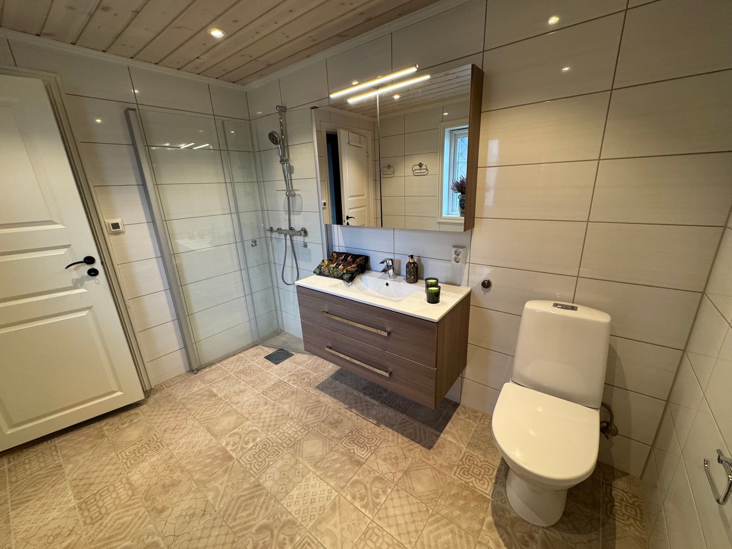 Svært velholdt fritidsbolig med liten bruksslitasje. Gjennomgående god standard på materialer/overflater/innredninger og håndverksmessige utførelser. Terrasse rundt de 3 mest solrike sidene av hytta. Her kan du nyte rolige morgener med kaffe og fuglesang på varme sommerdager. Første etasje har 2 soverom, kjøkken, bad og gjestetoalett. Andre etasje på 36,5m2, inneholder 2 store rom med plass til senger og en praktisk loftstue. Ikke målbart p-rom da takhøyden er 1,89m. Det er ett pent overbygd inngangsparti med gruslagt adkomst, og platting. Hytta ønsker deg velkommen med stor og innbydende gang som gir ett solid førsteinntrykk. Her er det flislagt gulv med varmekabler som sørger for behagelig varme og enkel rengjøring. Perfekt etter en aktiv dag ute. Den romslige gangen har rikelig plass til skistøvler, yttertøy og annet turutstyr. Praktisk plassert med direkte adkomst til ett stort bad. I tilknytning til gangen finner du også en generøs garderobe løsning med gode oppbevaringsmuligheter. Hytta har en romslig og lys stue med store vindusflater som slipper inn godt med dagslys og gir en fantastisk utsikt mot naturen utenfor. Her kan du nyte rolige kvelder foran peisen, som gir både varme og hyggelig stemning. Stuen er i åpen løsning mot spisestue og det store kjøkkenet – perfekt for sosiale måltider og samvær med familie og venner. Kjøkkenet har god benkeplass og rikelig med skap, ideelt for deg som liker å lage mat selv på hytta. Det er integrerte hvitevarer, stekeovn med pyrolyse, induksjonstopp, oppvaskmaskin med lysmarkering i gulv, kjøl/frys. Fra stuen er det direkte utgang til en stor terrasse, hvor du kan nyte morgensolen med en kaffekopp eller avslutte dagen med panoramautsikt.