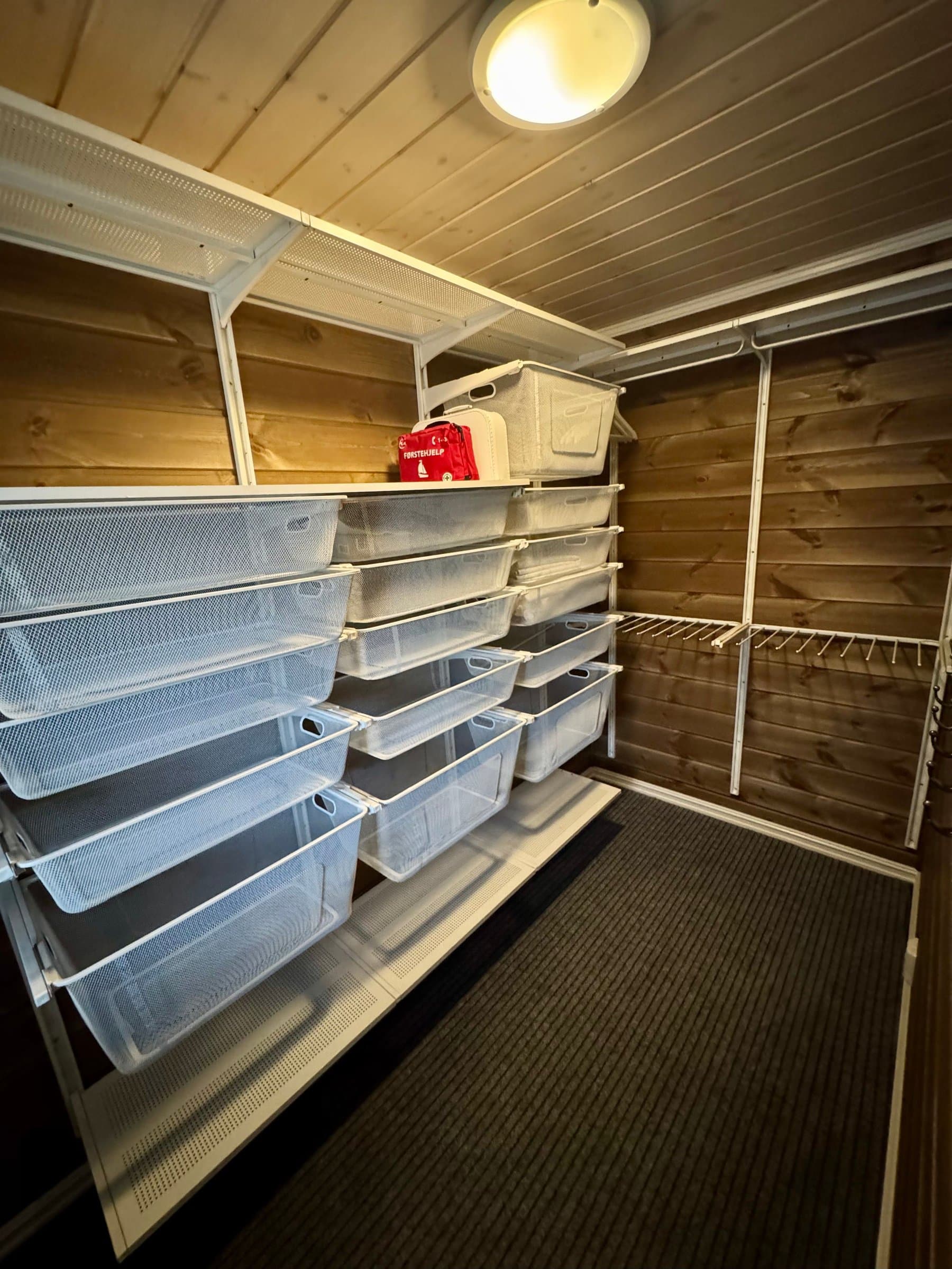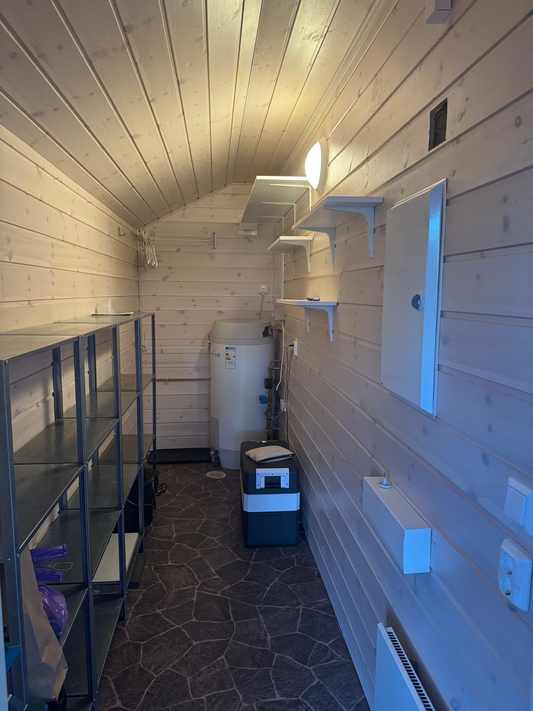Stor og innbydende hems - perfekt for barn og ungdom Hytta har en romslig hems med god takhøyde på 1,89m og mange sengeplasser - ideell for både barn og ungdom. Her finner du en koselig loftsstue med mulighet for sittegruppe, spill og aktiviteter som inviterer til hyggelige kvelder og sosialt samvær. Hemsen er et populært samlingssted for de yngre, med plass til både lek, filmkvelder og avslapning etter en dag ute i naturen. Teknisk bod ved inngangspartiet, inneholder varmtvannsbereder, sikringskap, vannfordelingsskap, hovedstoppekran og hyller til oppbevaring. Frittstående utvendig isolert bod på 10m2 m/strøm