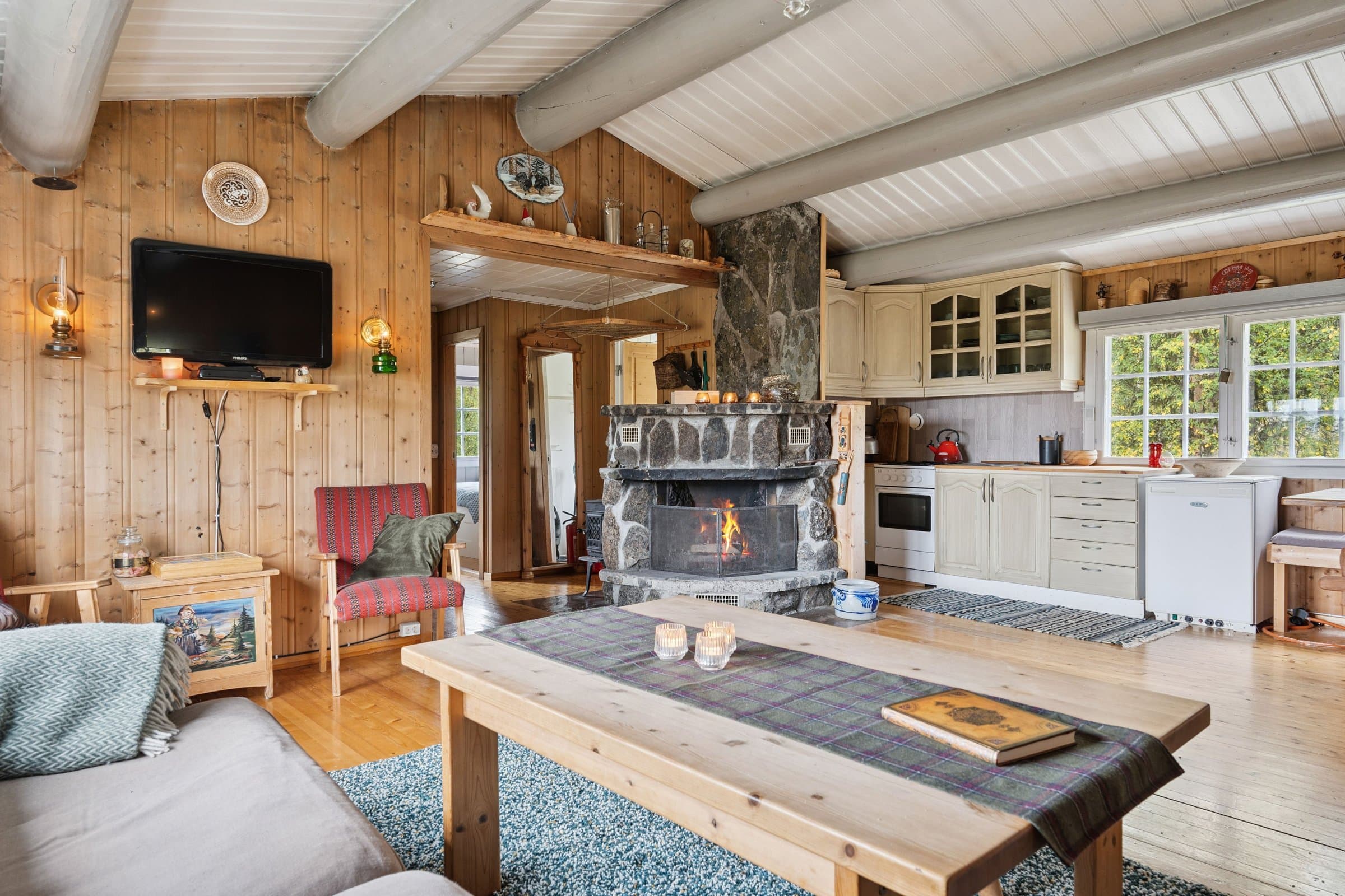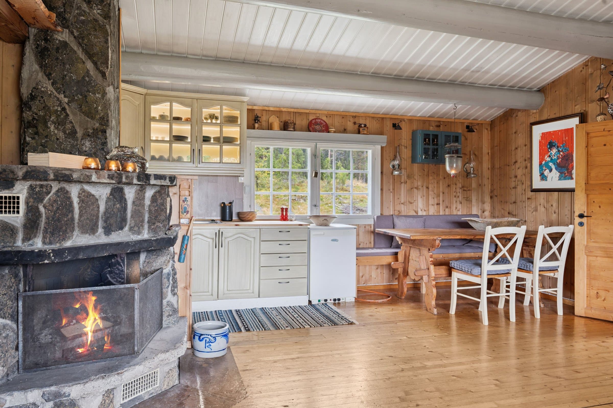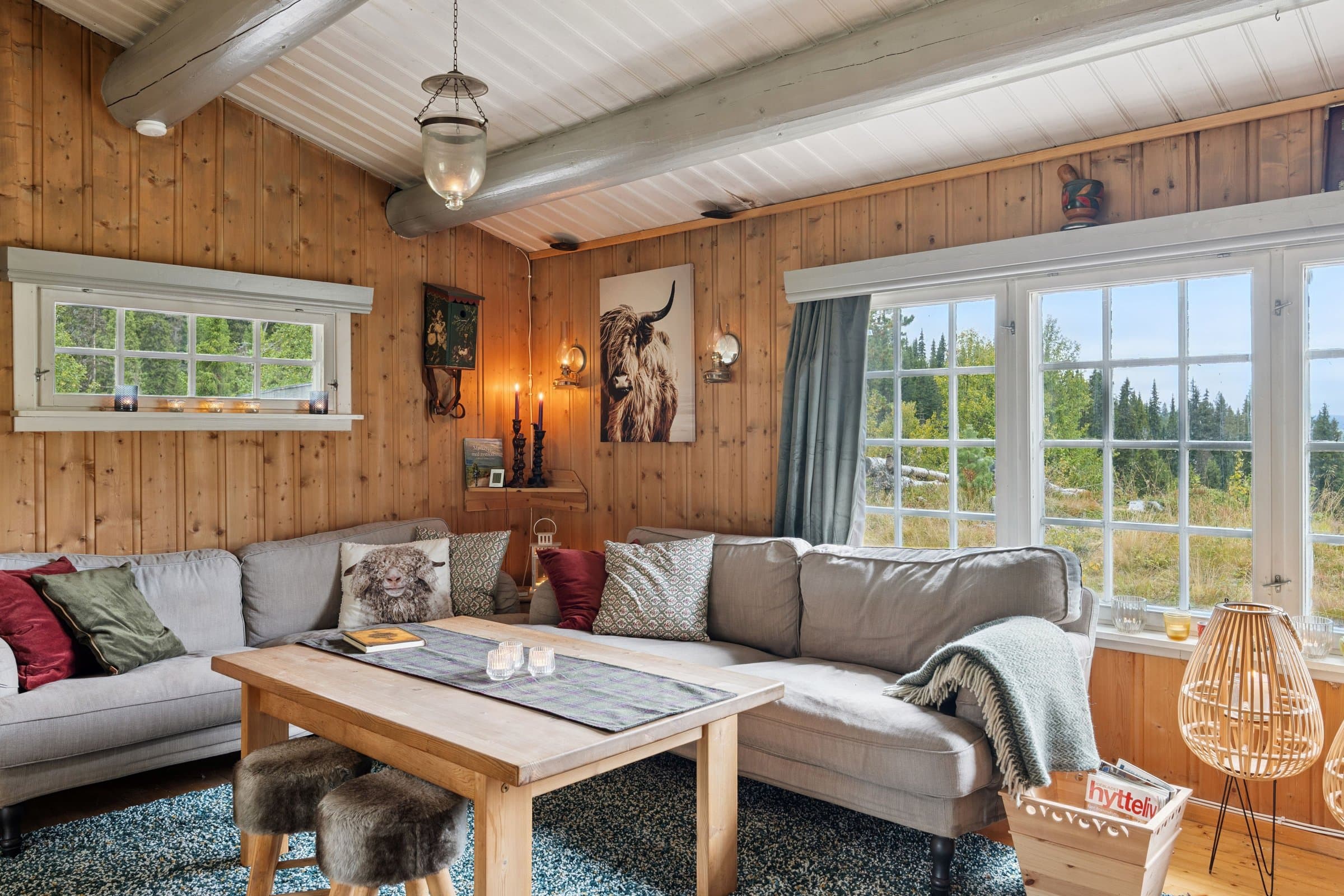 Velholdt og koselig 4-roms hytte i fredelige og usjenerte omgivelser. Bilvei frem. Flott beliggenhet!