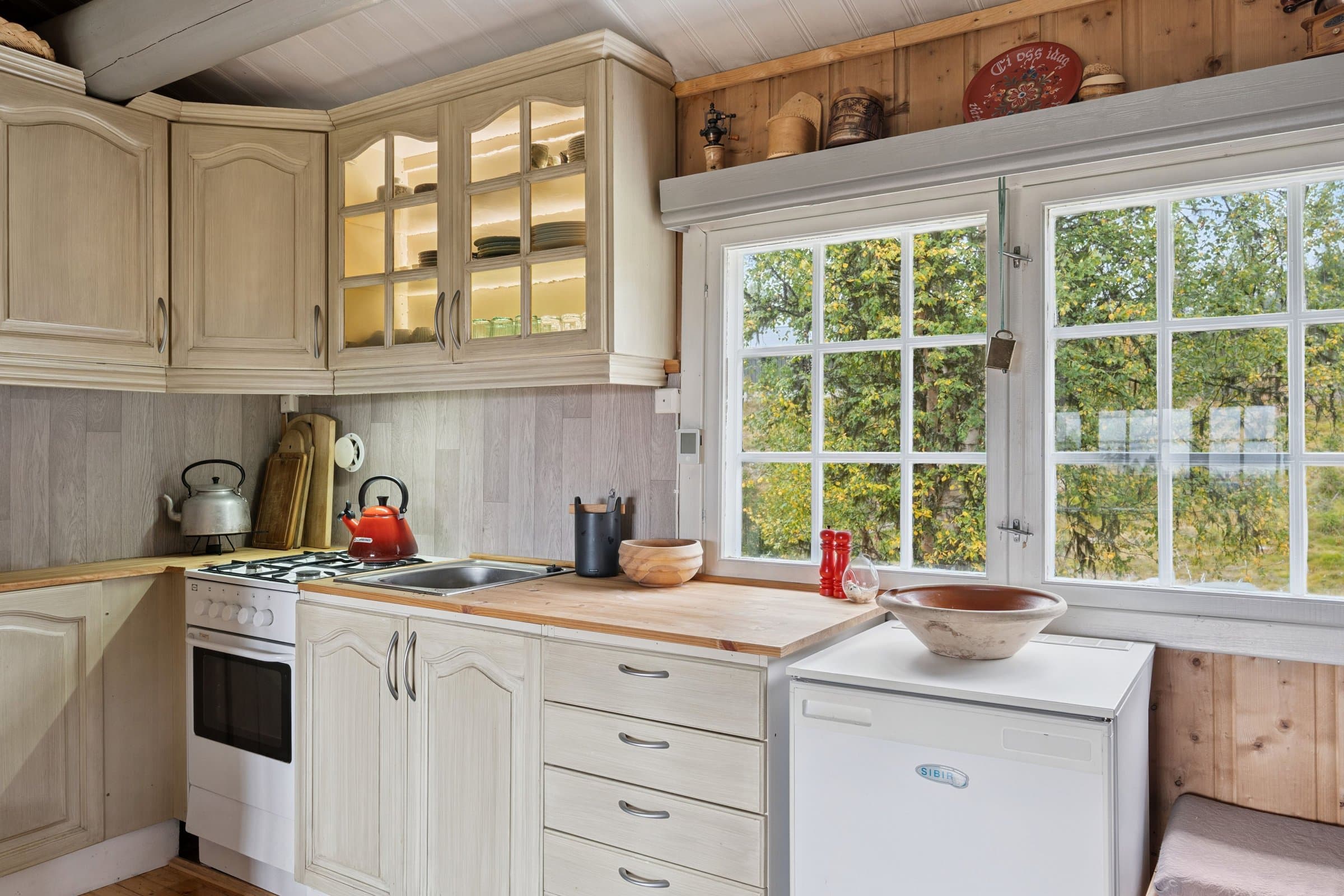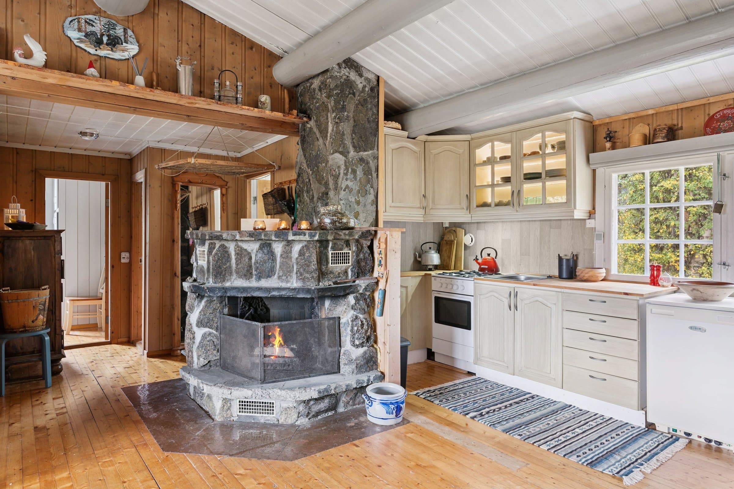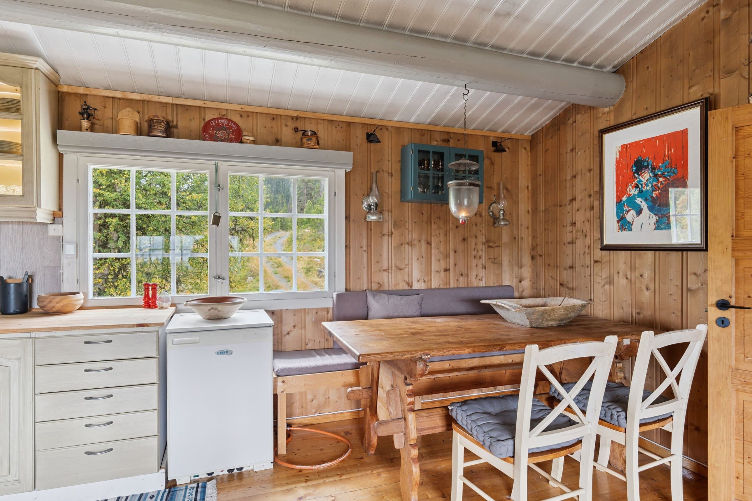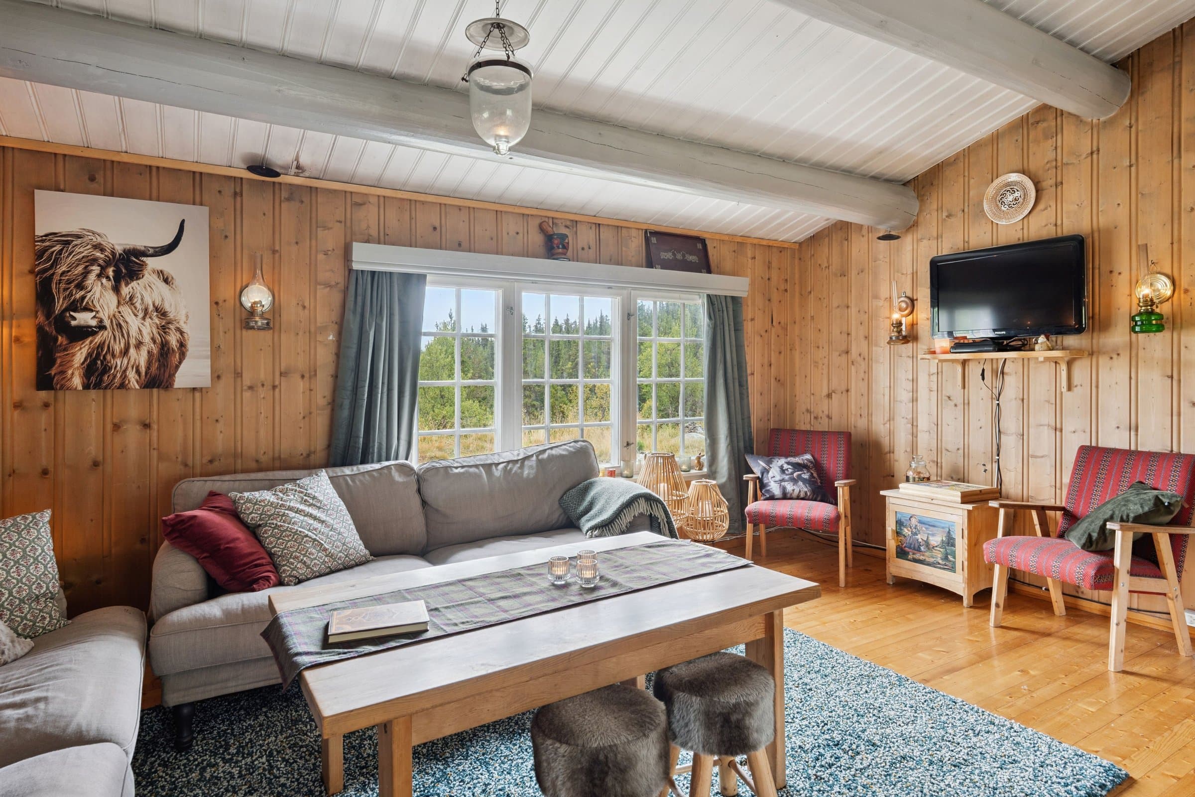 Velholdt og koselig 4-roms hytte i fredelige og usjenerte omgivelser. Bilvei frem. Flott beliggenhet!