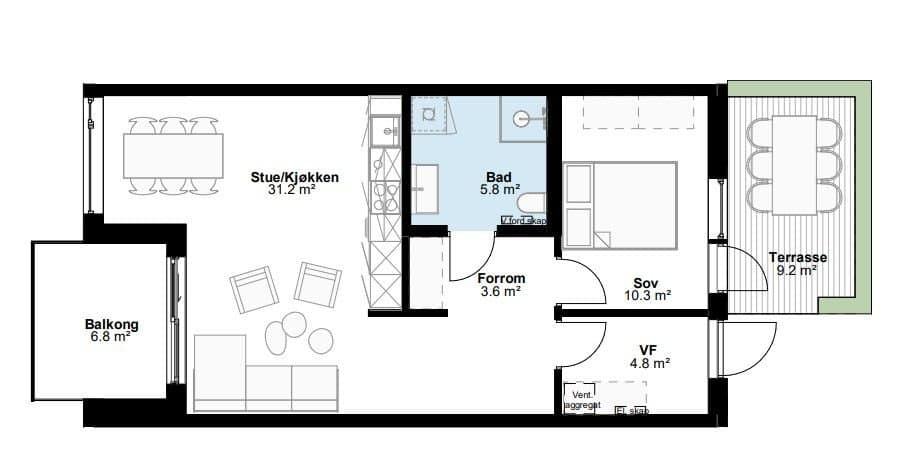 Hamresanden Atrium – moderne og innbydende leilighet fra 2023 Lys og stilren 2-roms leilighet på 58 kvm i attraktive Hamresanden Atrium – praktisk plassert rett over Kiwi. Leiligheten byr på en romslig stue med åpen kjøkkenløsning, ett soverom, et delikat bad og et funksjonelt vindfang med skyvedørsgarderobe. Store vindusflater slipper inn rikelig med naturlig lys og gir flott utsikt mot Hamresanden og Topdalsfjorden. Fra stuen har du utgang til en privat terrasse med sol fra ettermiddag til kveld – perfekt for rolige kvelder eller sosiale sammenkomster. Ved inngangspartiet finner du i tillegg en hyggelig terrasse med morgensol. Boligen holder en høy standard med moderne fasiliteter som heis, balansert ventilasjon, alarm og bredbånd. Det medfølger parkeringsplass i parkeringskjeller med egen elbillader samt en romslig bod (5 kvm).