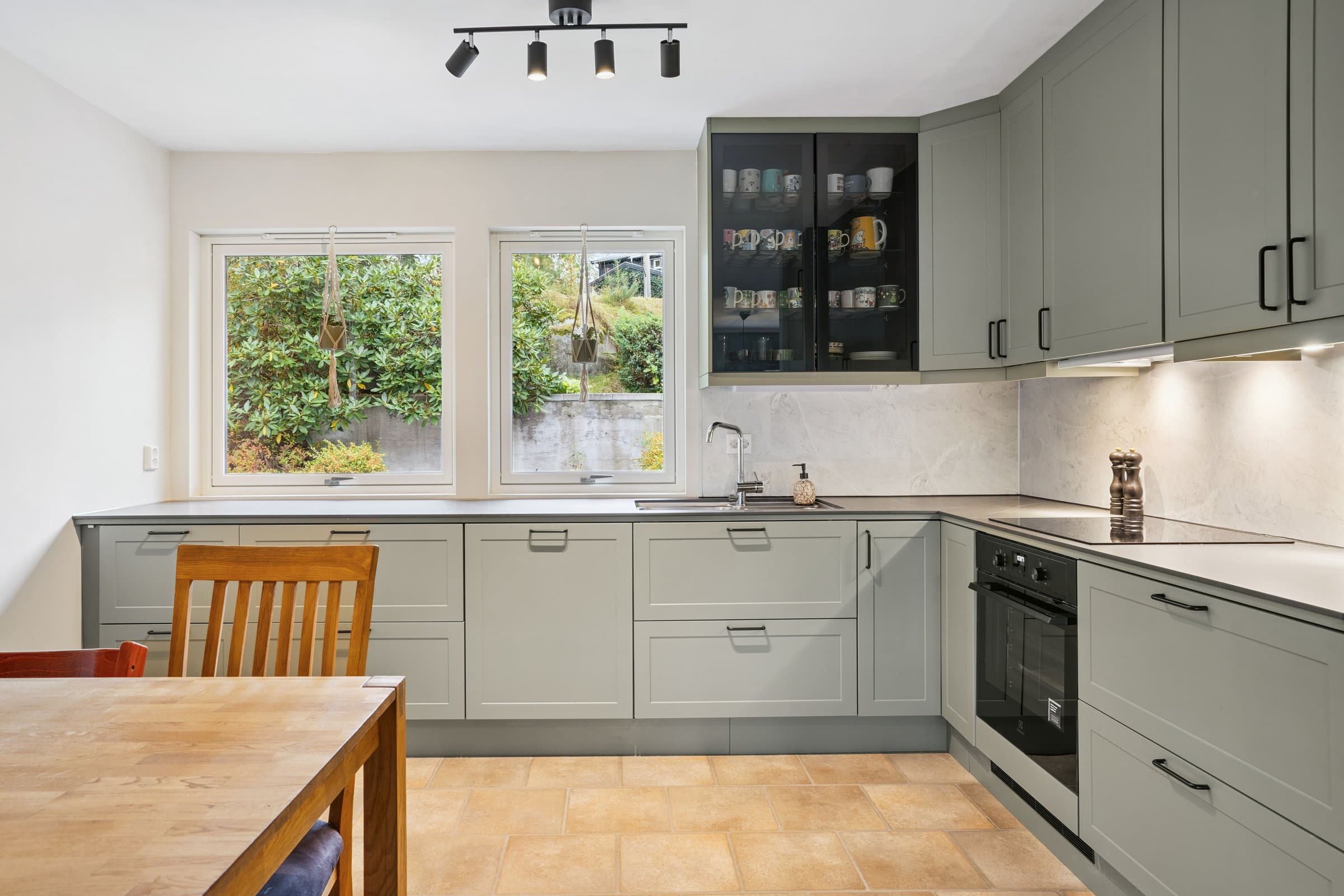 Koselig og påkostet enderekkehus i barnevennlig område med vinterhage, ildsted og god planløsning