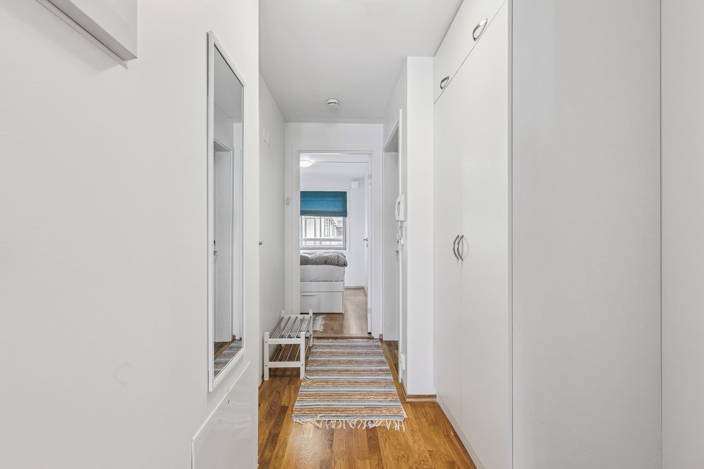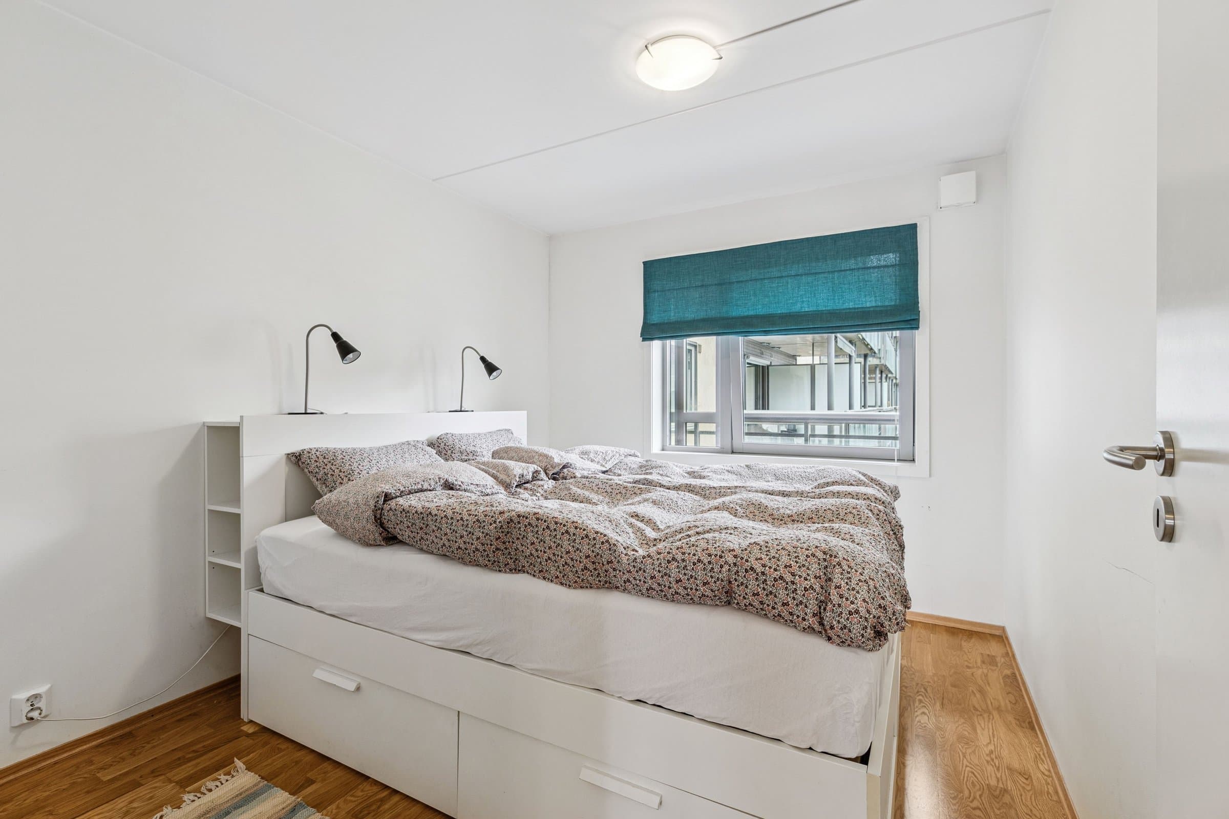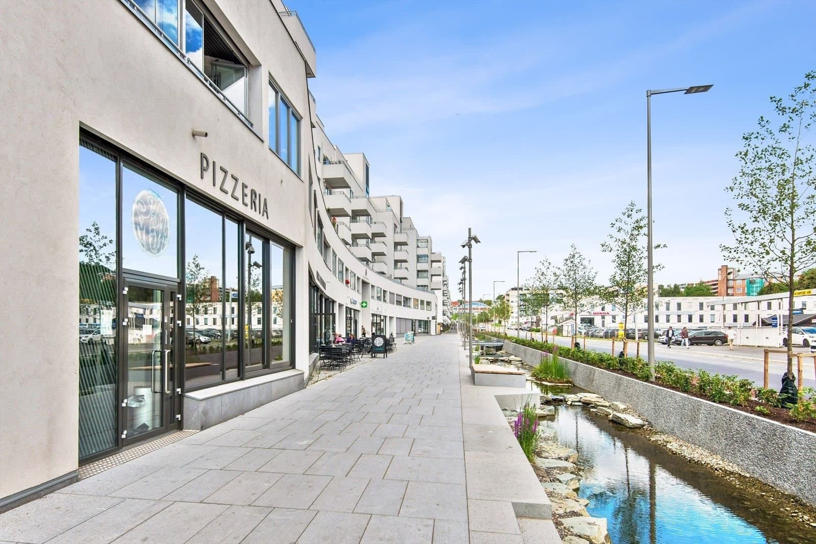 Moderne nybygg fra 2012 som ble pusset opp i 2024. Leiligheten ligger i 4 etg. Balkong med ettermiddagssol. Egen garasjeplass med elbil-lader. Heis fra garasje direkte opp til 4 etg. Stor felles takterrasse med gode solforhold. Gjennomgående planløsning og store vindusflater som gir godt med naturlig lys. Lave felleskostnader inkl. tv og bredbånd. Åpen stue-/kjøkkenløsning med integrerte hvitevarer og fastmontert kjøkkenøy. Soverom med plass til dobbeltseng og det er garderobe på hele den ene veggen. Bad med gulvvarme med plass til vaskemaskin og tørketrommel. To boder i 1. u. etg. med gode oppbevaringsmuligheter. Sentralt, med kort vei til service, kollektivtilbud og flotte grøntområder.