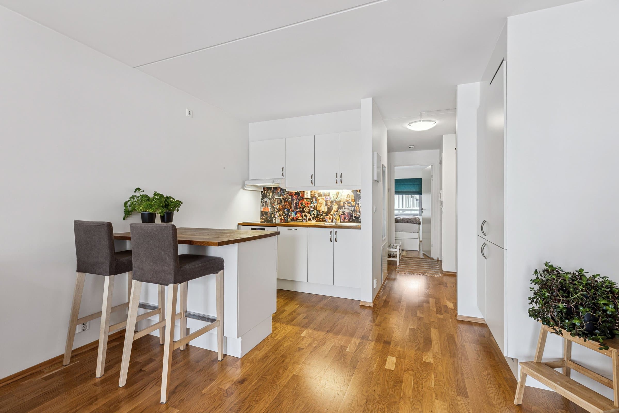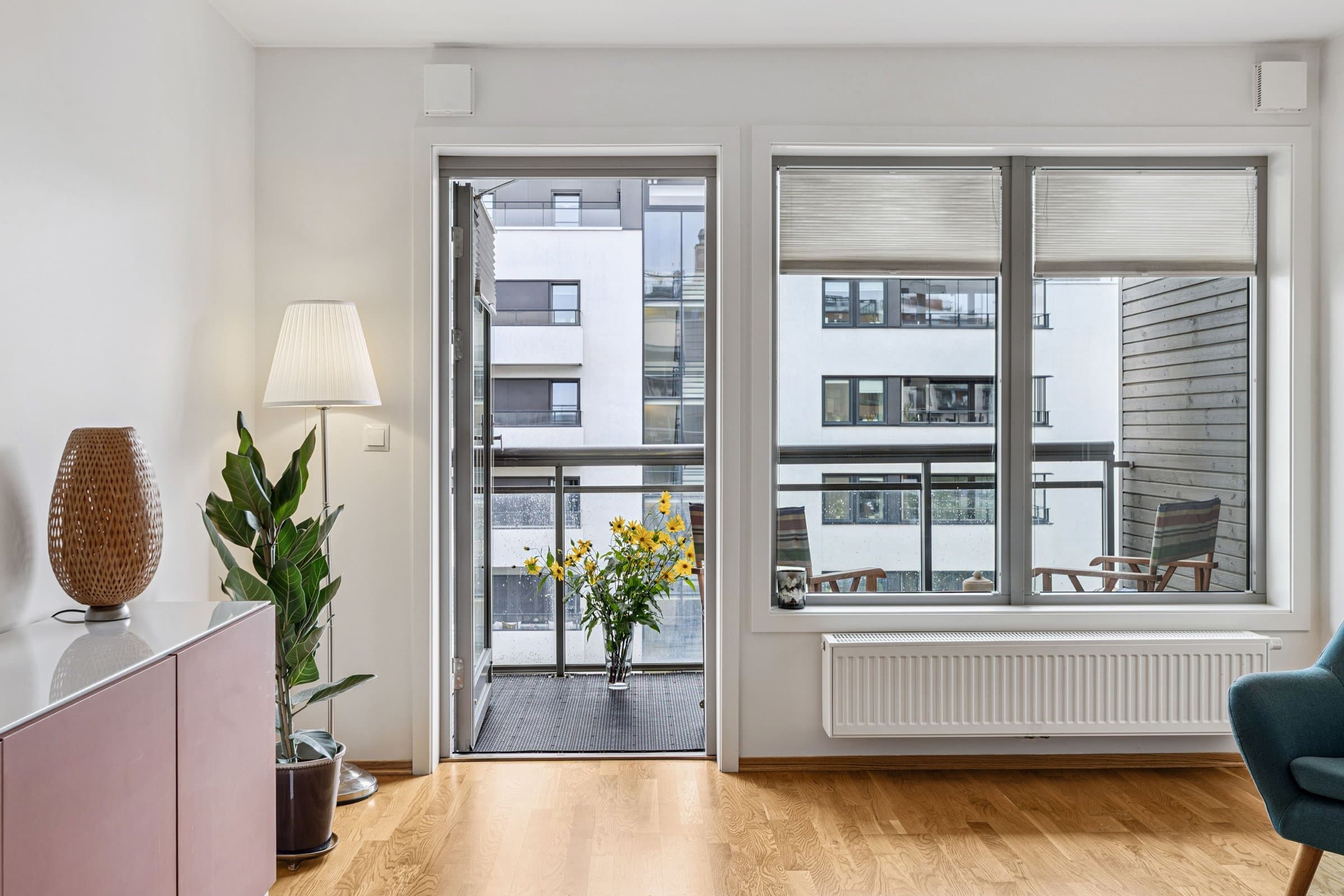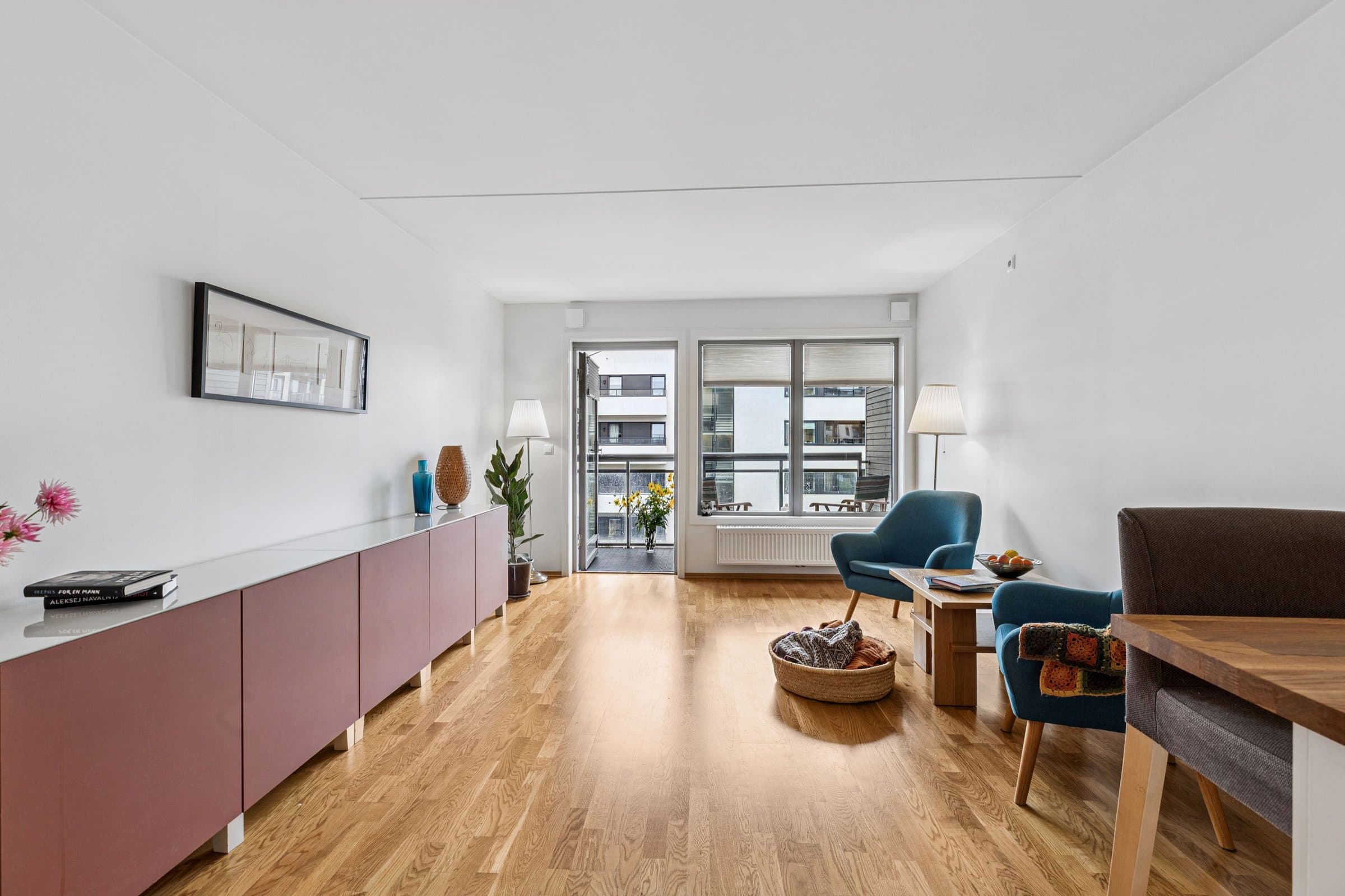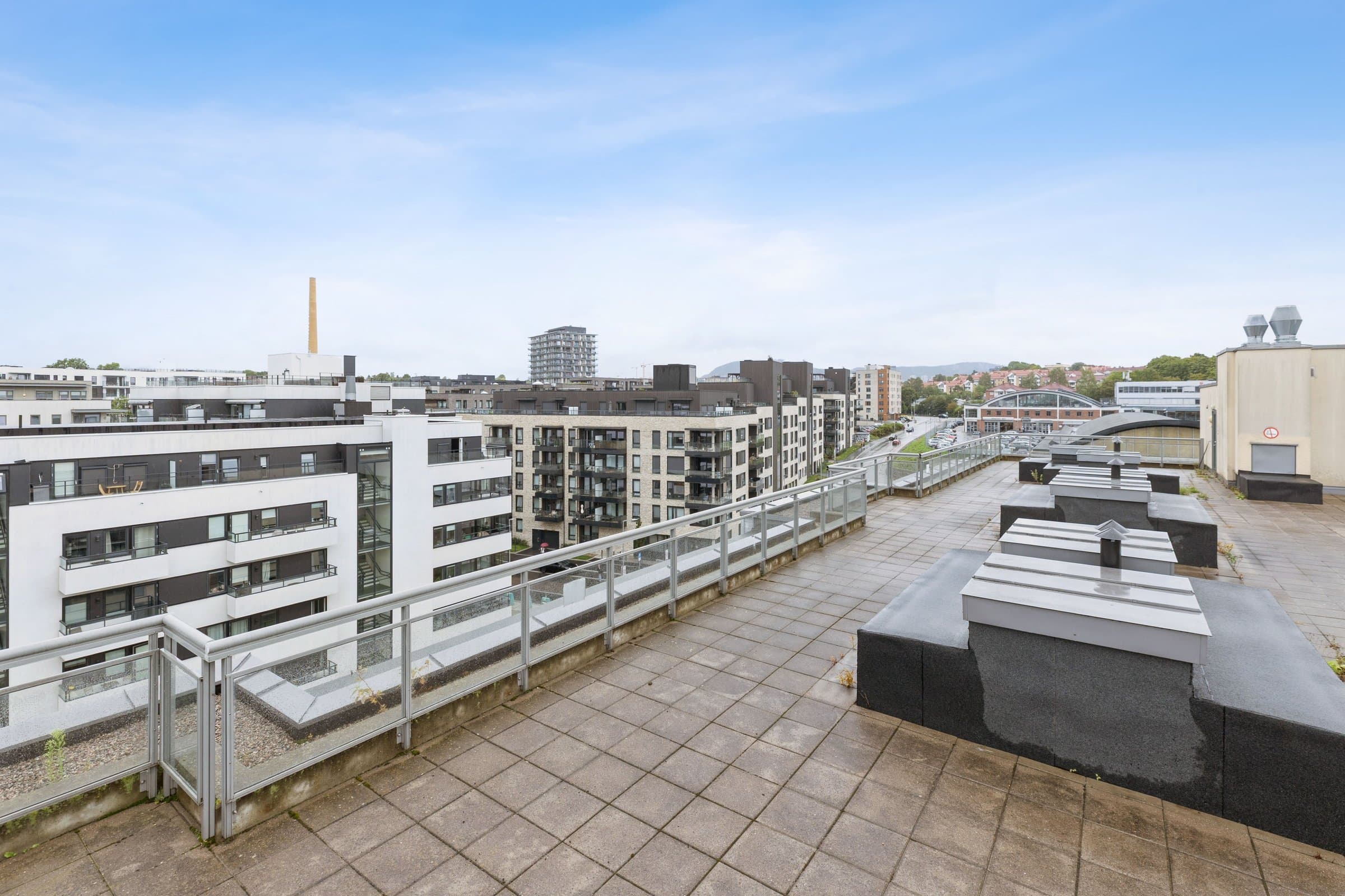 Moderne nybygg fra 2012 som ble pusset opp i 2024. Leiligheten ligger i 4 etg. Balkong med ettermiddagssol. Egen garasjeplass med elbil-lader. Heis fra garasje direkte opp til 4 etg. Stor felles takterrasse med gode solforhold. Gjennomgående planløsning og store vindusflater som gir godt med naturlig lys. Lave felleskostnader inkl. tv og bredbånd. Åpen stue-/kjøkkenløsning med integrerte hvitevarer og fastmontert kjøkkenøy. Soverom med plass til dobbeltseng og det er garderobe på hele den ene veggen. Bad med gulvvarme med plass til vaskemaskin og tørketrommel. To boder i 1. u. etg. med gode oppbevaringsmuligheter. Sentralt, med kort vei til service, kollektivtilbud og flotte grøntområder.