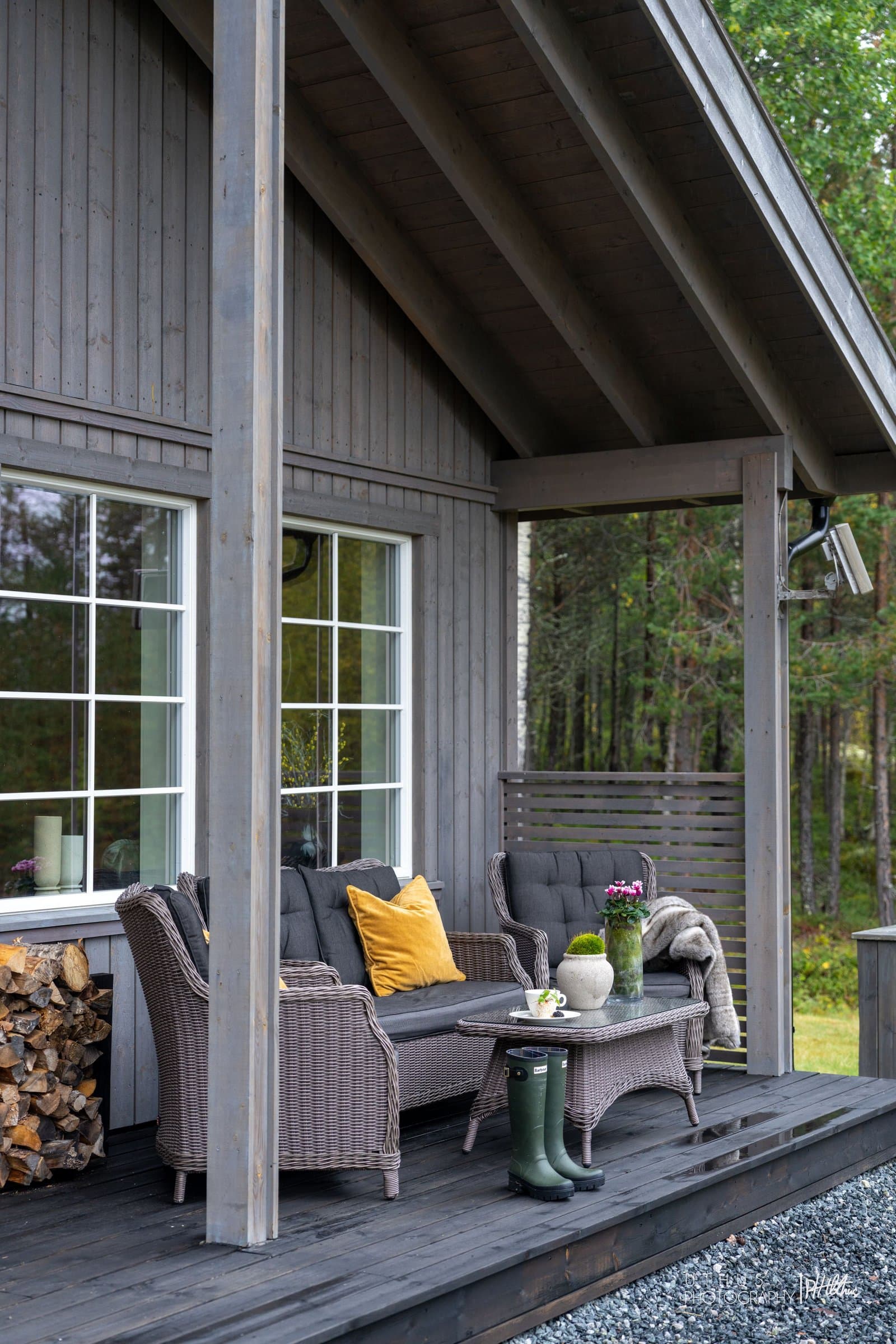 TOMTEFORHOLD: Frittliggende fritidsbolig oppført i trekonstruksjon på støpt betong plate og ringmur. Byggegrop skal være oppbygget med selvdrenerende masser. Bygget er fundamentert med betongplate med ringmur. Det er ikke registrert avvik ved boligens synlige fundament. Tomten er flat rundt bygningsmassen. Det er privat borebrønn. Det er montert septiktank til jettoalett og slamavskiller med spredegrøft for gråvann. Det er gruset innkjøring med gode parkeringsmuligheter for flere biler. UTVENDIG BYGG: Taket er tekket med pappshingel. Undertaket består av rupanel. Boligens takrenner og nedløp består av plastbelagt stål. Yttervegger er oppført i bindingsverk, isolert i henhold til byggemåte, og utvendig kledd med trepanel, beiset med miljøvennlig Auson tjærevitrol. Det er registrert luftespalte bak kledningen, og det er montert musebånd. Taktypen er saltak, og takkonstruksjonen består av takstoler. Loftet er isolert med mineralull, og konstruksjonen er innvendig luftet, synlig ved gesims/takfot. Det er montert inn vinduer med 2-lags isolerglass og treramme. Standard inngangsdør er utført i tre. Terrassedør er av tre med glassfelt. Terrasse ut fra inngang og stue består av trekonstruksjon med bjelker og gulvbord av impregnert/behandlet treverk. Terrassen er på 37m². GARASJE: Garasjen er fundamentert med punkt fundament av leca til grunn. Naturlig gulv- grus. Vegger av tre/ bindingsverk, uisolert og utvendig kledd med panel. Saltak, tekket med papp. Renner og nedløp av plastisert stål. Det er montert leddport med automat åpner. Tredør på siden for enkel adkomst. Garasjen er på 21m². .