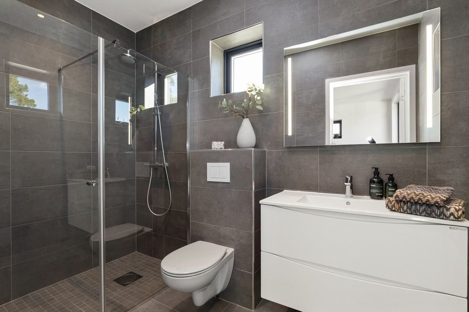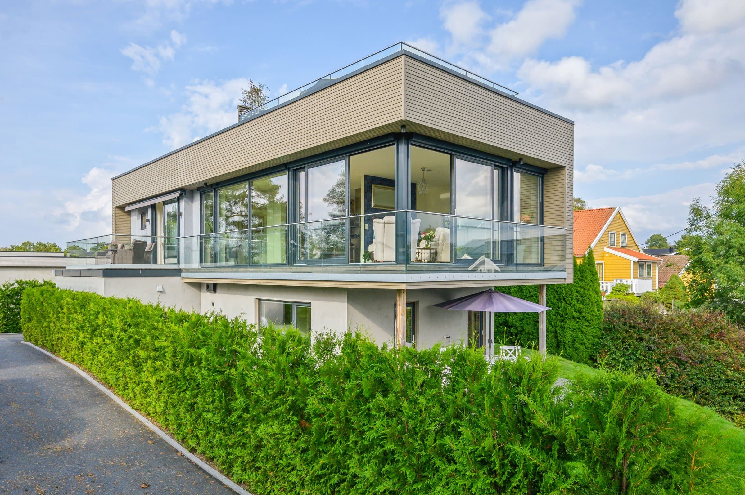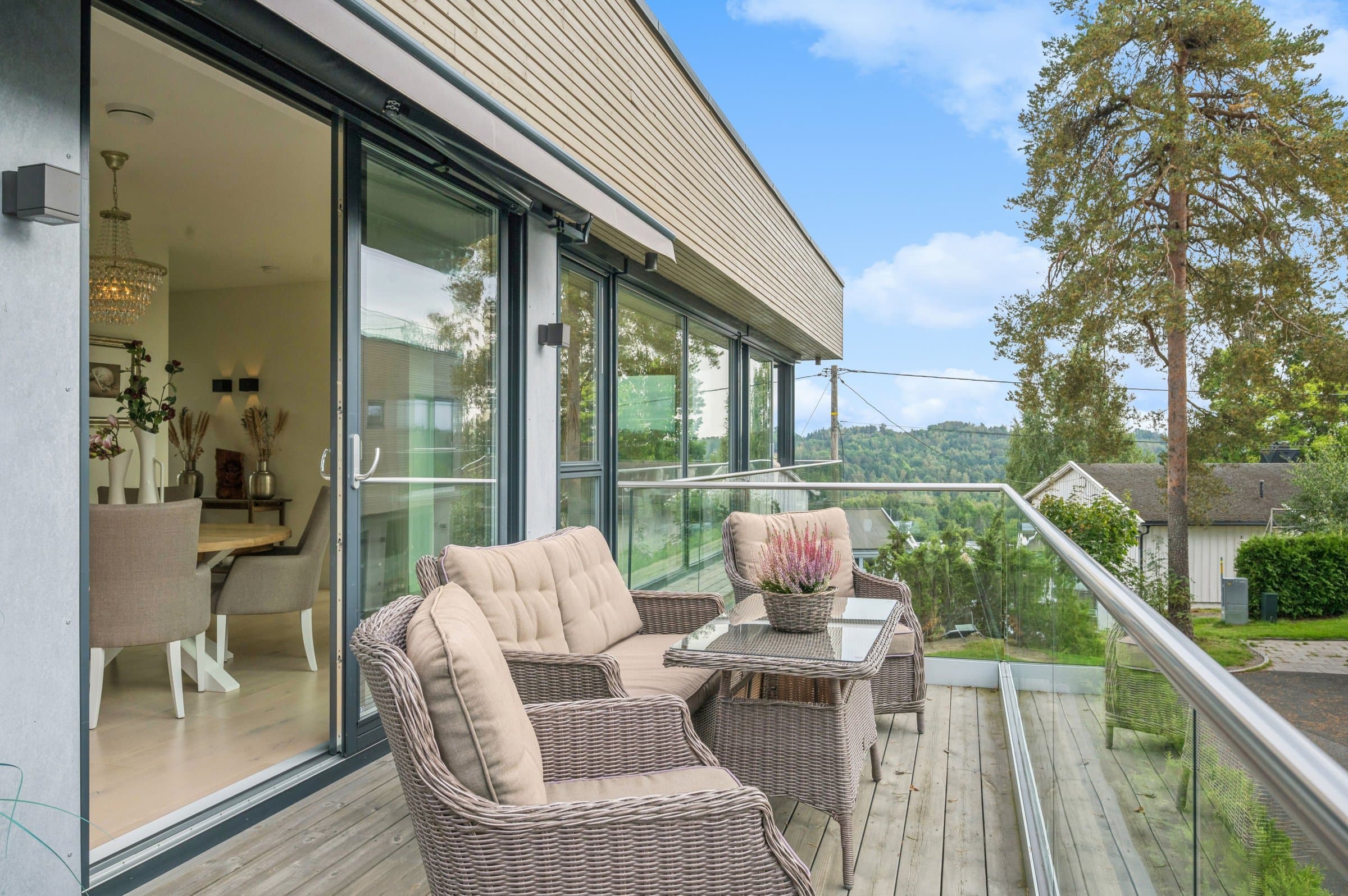 Denne skatten av en funkisbolig fra 2020 (TEK17 standard) ligger høyt og fritt på Sogsti med flott utsyn og fjordutsikt fra takterrassen. Det ideelle hjemmet som kombinerer luksus, funksjonalitet og en familievennlig beliggenhet innerst i blindvei. Denne boligen byr på en herlig kombinasjon av stil, design, komfort og praktiske løsninger. Her får du eksklusiv standard med vannbåren varme i alle gulv (bergvarme), gjennomgående 1-stavs eikeparkett, store vindusflater, god takhøyde (2,6m), lekre flislagte bad, kjøkken -og spesialtilpassede garderobeløsninger fra Drømmekjøkkenet, balansert ventilasjon, samt moderne og praktisk planløsning. Kort fortalt: - Åpent og moderne kjøkken med integrerte hvitevarer. - Stue og bad i 1 -og 2 etasje, samt terrasser på alle 3 plan - sol hele dagen. - Master en-suite med eget bad, walk-in garderobe og fransk balkong. - Store vindusflater/glass skyvedører fra gulv til tak. - Skreddersydde løsninger for sol -og innsynsskjerming (zipscreens/markise/plissé) på alle relevante vinduer/dører. Styres via fjernkontroll/app. Løsningene sørger for behagelig inneklima, selv på de varmeste dagene, samt ivaretar privatlivet. - Integrert dobbeltgarasje med innvendig tilgang + elbil-lader. - Flott skjermet og lettstelt hage med gressplen og hekker - robotgressklipper medfølger. - Barnevennlig, stille og rolig. - Umiddelbar nærhet til turområder, skole, barnehage m.m. og kun 10minutters gange til nærmeste strand samt 15minutters gange til sjarmerende Drøbak sentrum med koselige serveringssteder, spesialforretninger, bibliotek, kino, vinmonopol - alt av servicetilbud. Boligen ble beiset 2 strøk i 2022, så her er det bare å nyte et velfungerende hus.