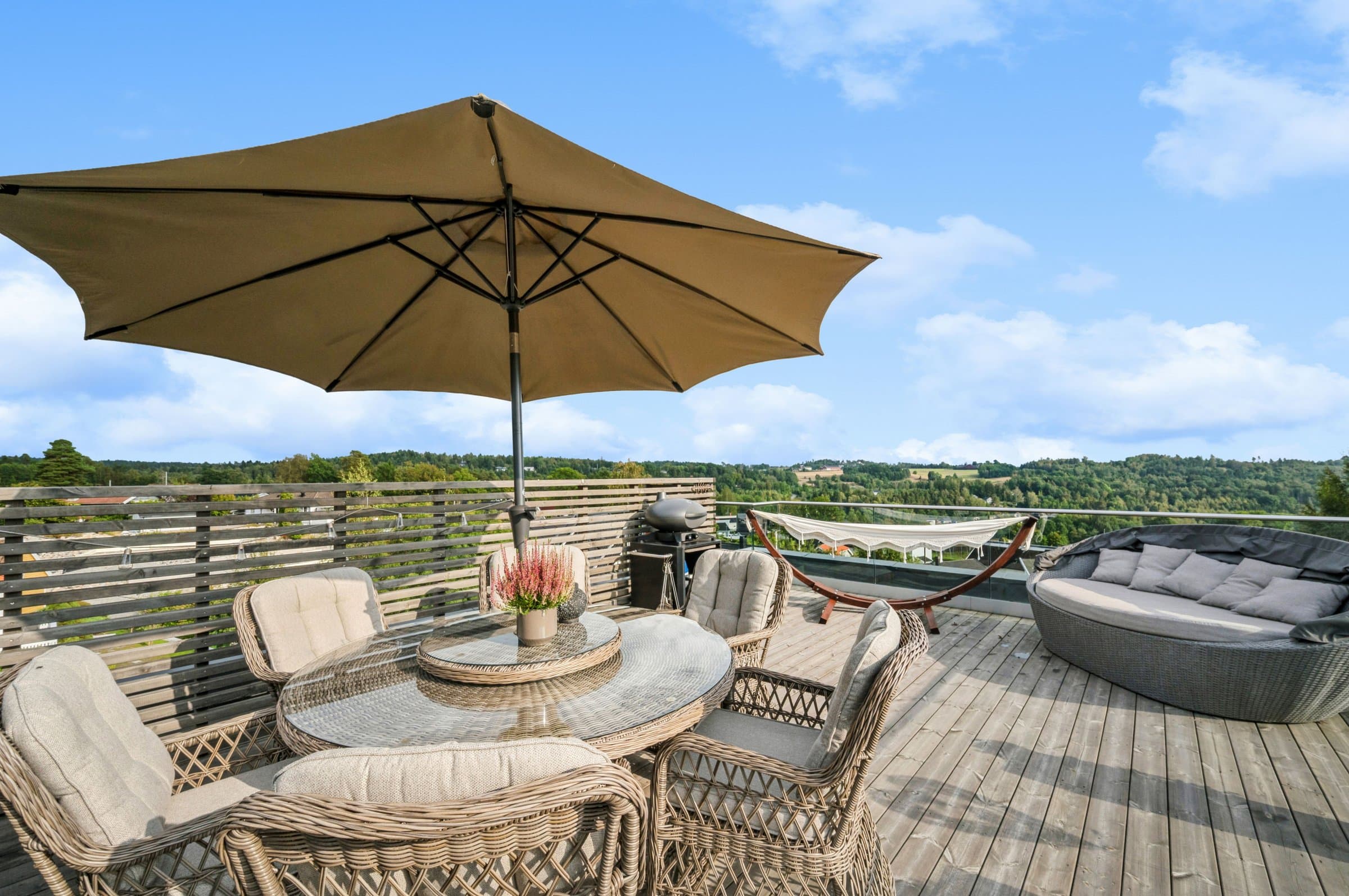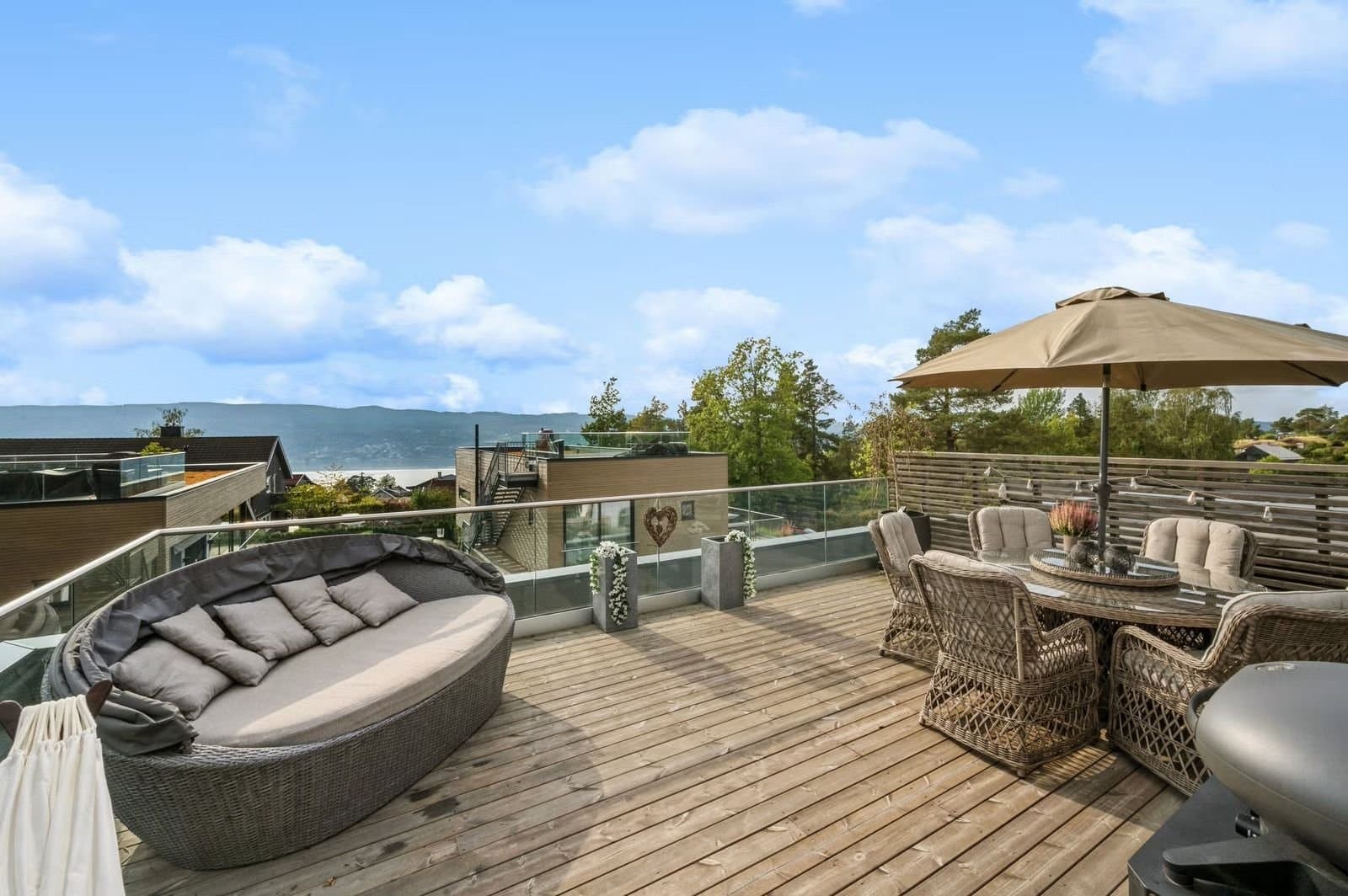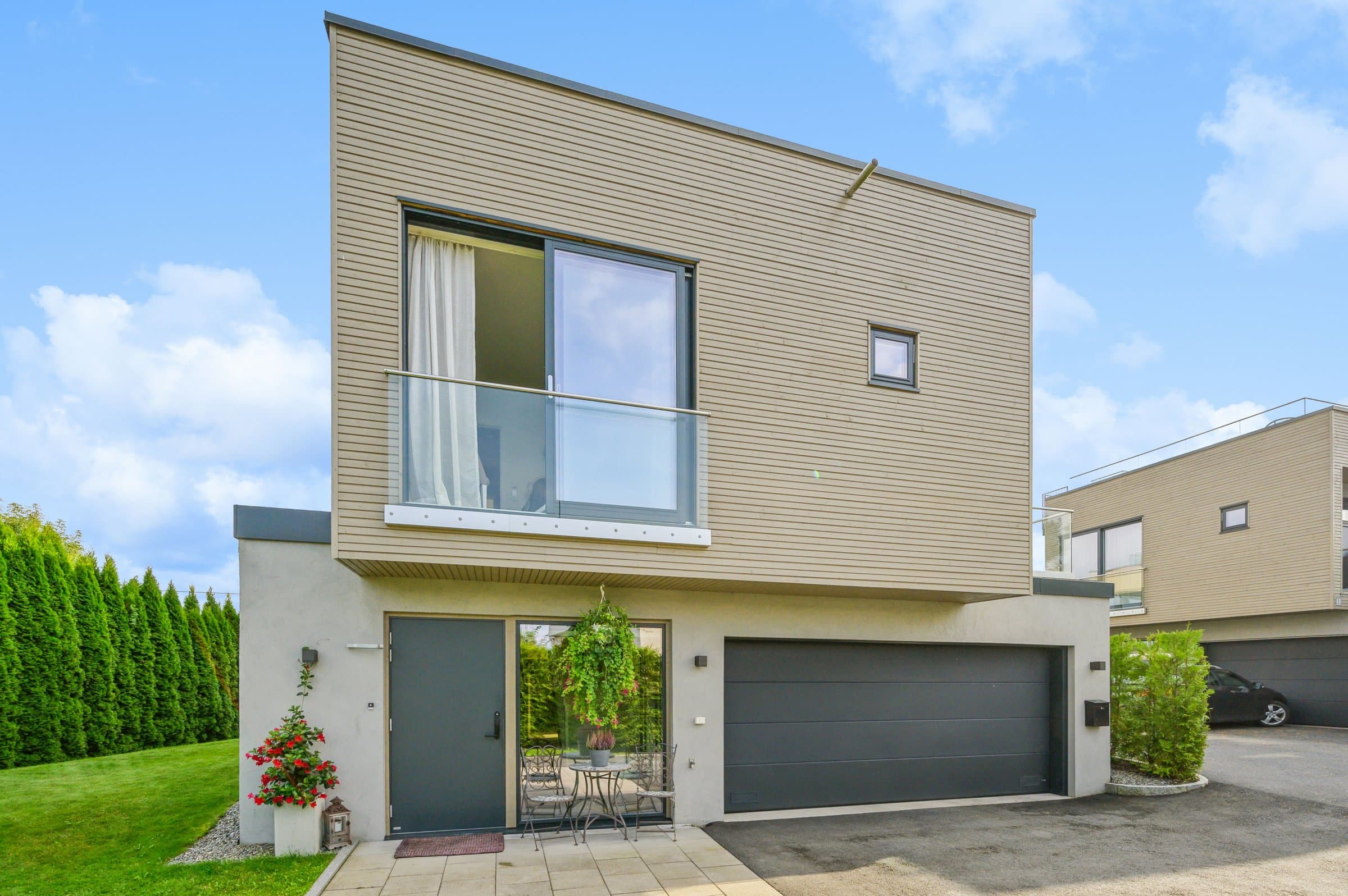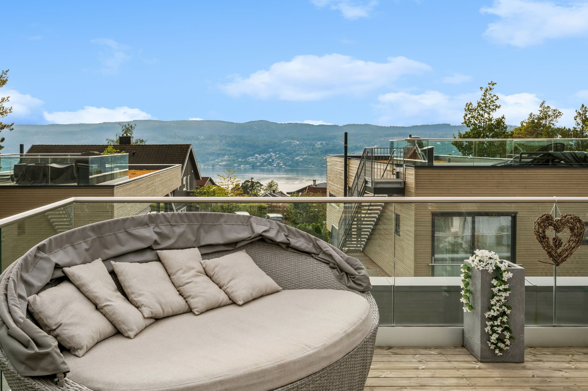Denne skatten av en funkisbolig fra 2020 (TEK17 standard) ligger høyt og fritt på Sogsti med flott utsyn og fjordutsikt fra takterrassen. Det ideelle hjemmet som kombinerer luksus, funksjonalitet og en familievennlig beliggenhet innerst i blindvei. Denne boligen byr på en herlig kombinasjon av stil, design, komfort og praktiske løsninger. Her får du eksklusiv standard med vannbåren varme i alle gulv (bergvarme), gjennomgående 1-stavs eikeparkett, store vindusflater, god takhøyde (2,6m), lekre flislagte bad, kjøkken -og spesialtilpassede garderobeløsninger fra Drømmekjøkkenet, balansert ventilasjon, samt moderne og praktisk planløsning. Kort fortalt: - Åpent og moderne kjøkken med integrerte hvitevarer. - Stue og bad i 1 -og 2 etasje, samt terrasser på alle 3 plan - sol hele dagen. - Master en-suite med eget bad, walk-in garderobe og fransk balkong. - Store vindusflater/glass skyvedører fra gulv til tak. - Skreddersydde løsninger for sol -og innsynsskjerming (zipscreens/markise/plissé) på alle relevante vinduer/dører. Styres via fjernkontroll/app. Løsningene sørger for behagelig inneklima, selv på de varmeste dagene, samt ivaretar privatlivet. - Integrert dobbeltgarasje med innvendig tilgang + elbil-lader. - Flott skjermet og lettstelt hage med gressplen og hekker - robotgressklipper medfølger. - Barnevennlig, stille og rolig. - Umiddelbar nærhet til turområder, skole, barnehage m.m. og kun 10minutters gange til nærmeste strand samt 15minutters gange til sjarmerende Drøbak sentrum med koselige serveringssteder, spesialforretninger, bibliotek, kino, vinmonopol - alt av servicetilbud. Boligen ble beiset 2 strøk i 2022, så her er det bare å nyte et velfungerende hus.