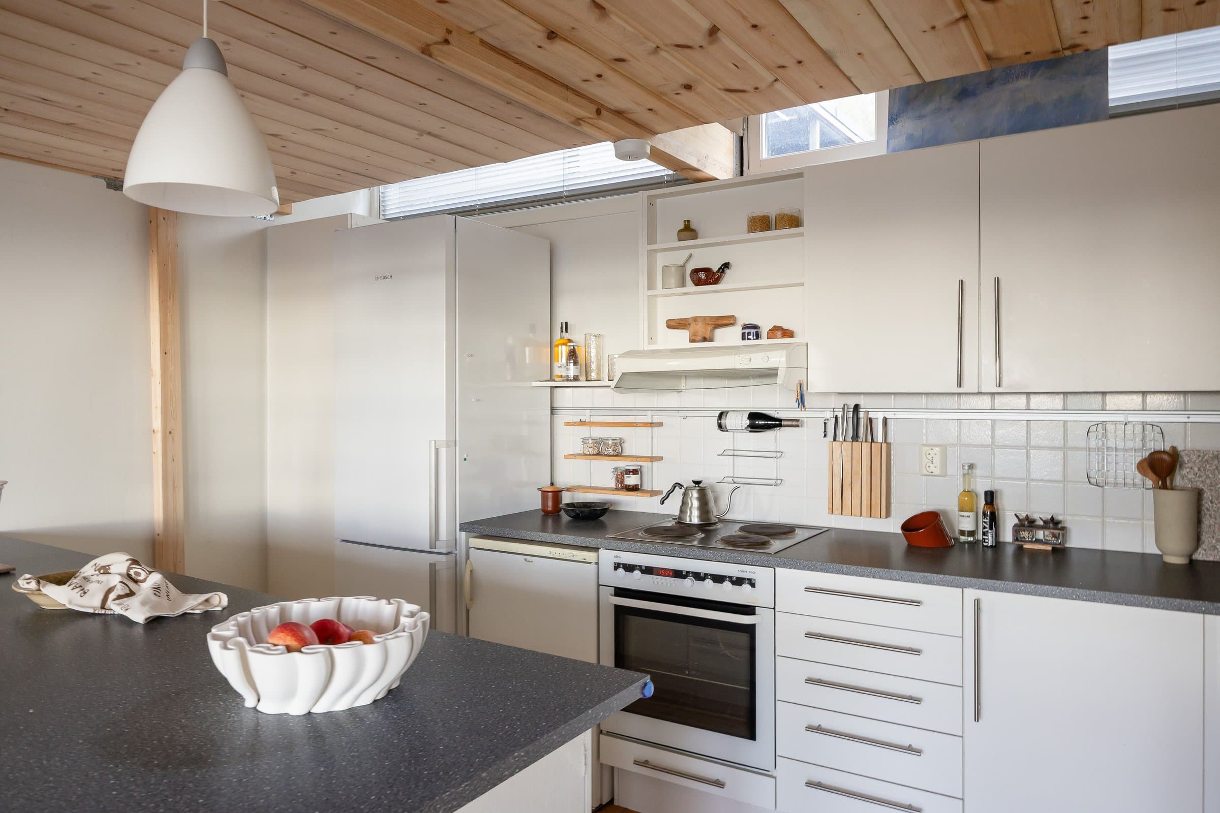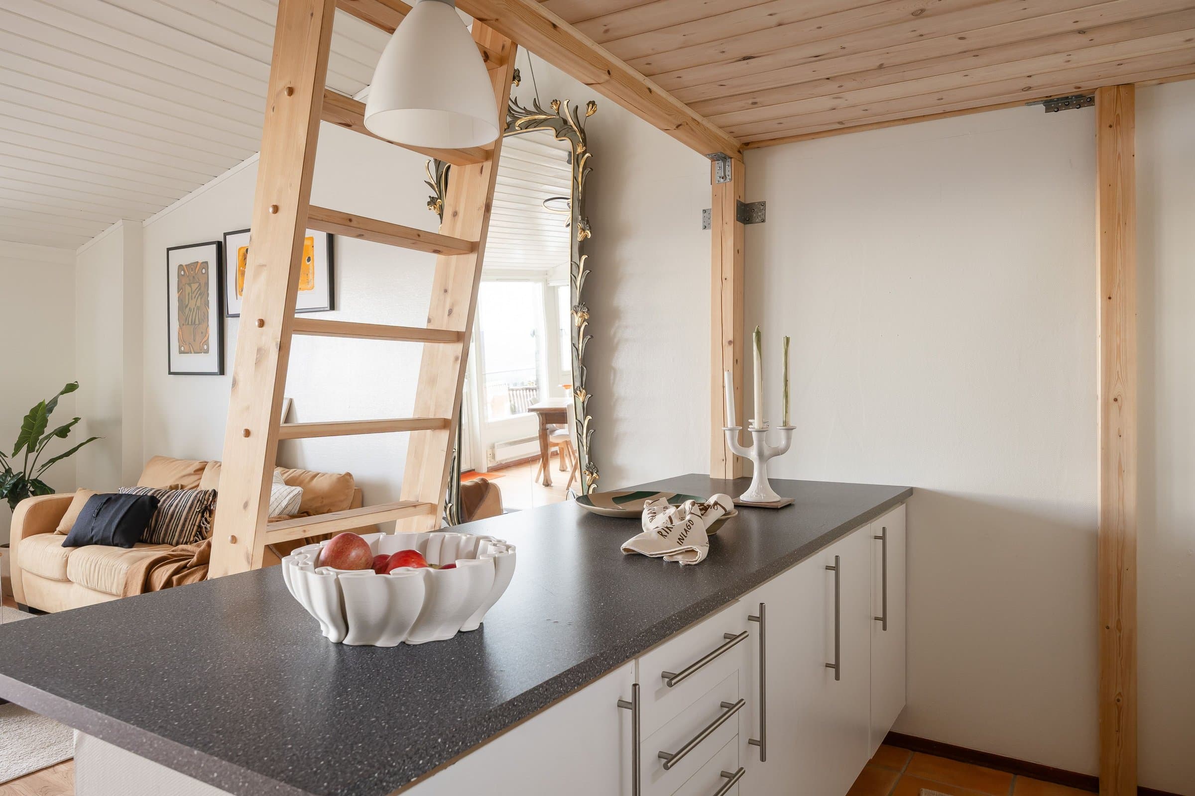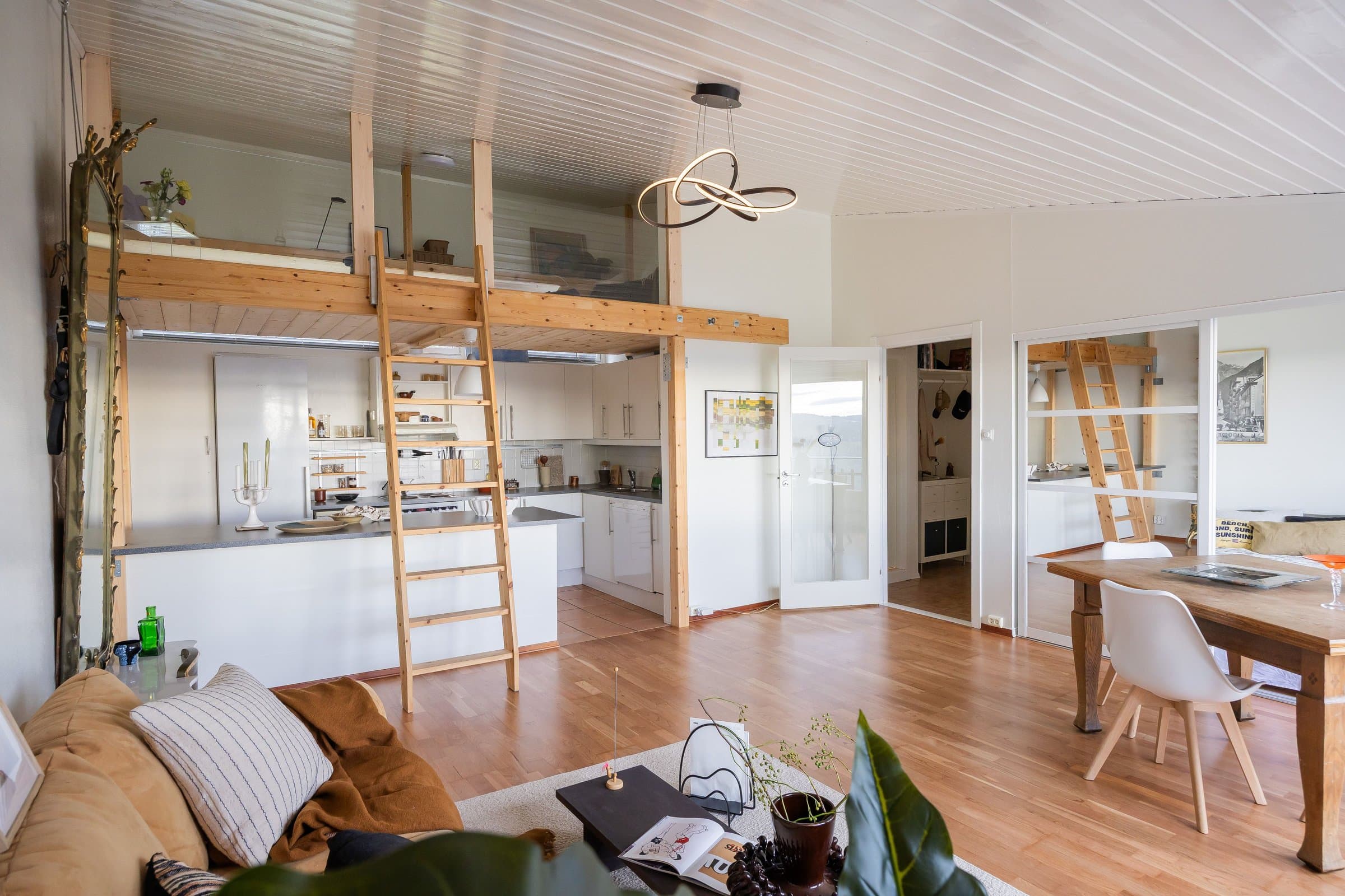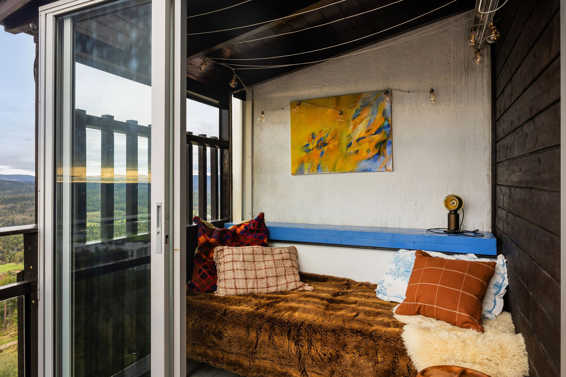 Av alle de 202 leilighetene på Skogen boligsameie, er kanskje dette den som har "alt" - den er på toppen av sameiet og har høyden som gir den eventyrlige utsikten - og ikke noe heishus som forstyrrer utsikten, heishuset gir derimot veldig god ly mot vær fra sør og nord, vestvendt usjenert balkong med god utsikt sydover, vestover og nordover, god takhøyde (3.76m) med hems, vinterhage, mye bodplass (5 boder), endeleilighet, rolige naboer, veldrevet sameie, trivelige fellesområder, nyoppusset inngangsparti, heishus (pågående) og heiser (nye i desember 2024), oppvarmet heisrom på enden (dvs. ikke kald yttervegg). Denne leiligheten har det meste du kan ønske deg.